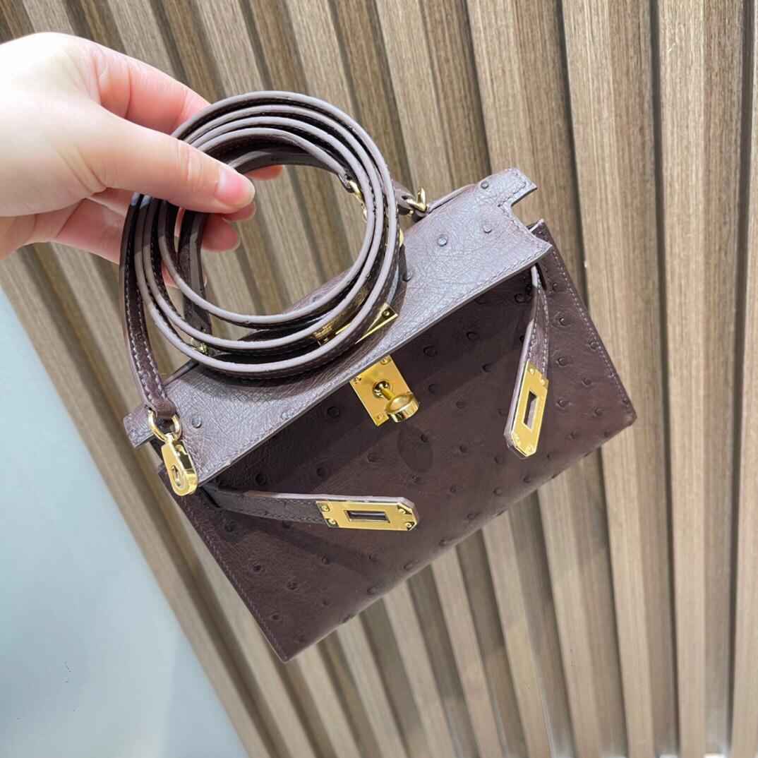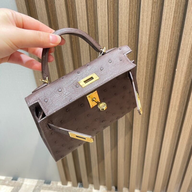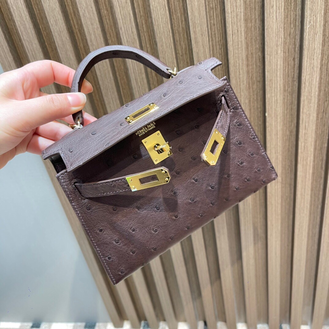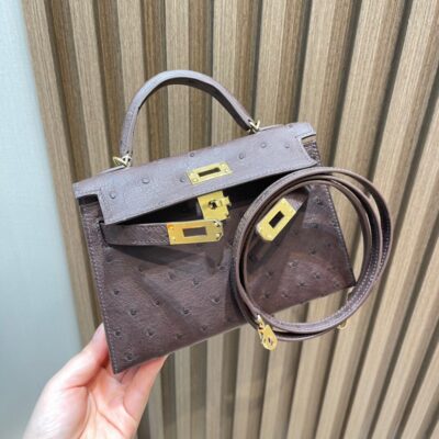Mini Kelly 2nd Generation Ostrich Leather 47 Chocolat Chocolate