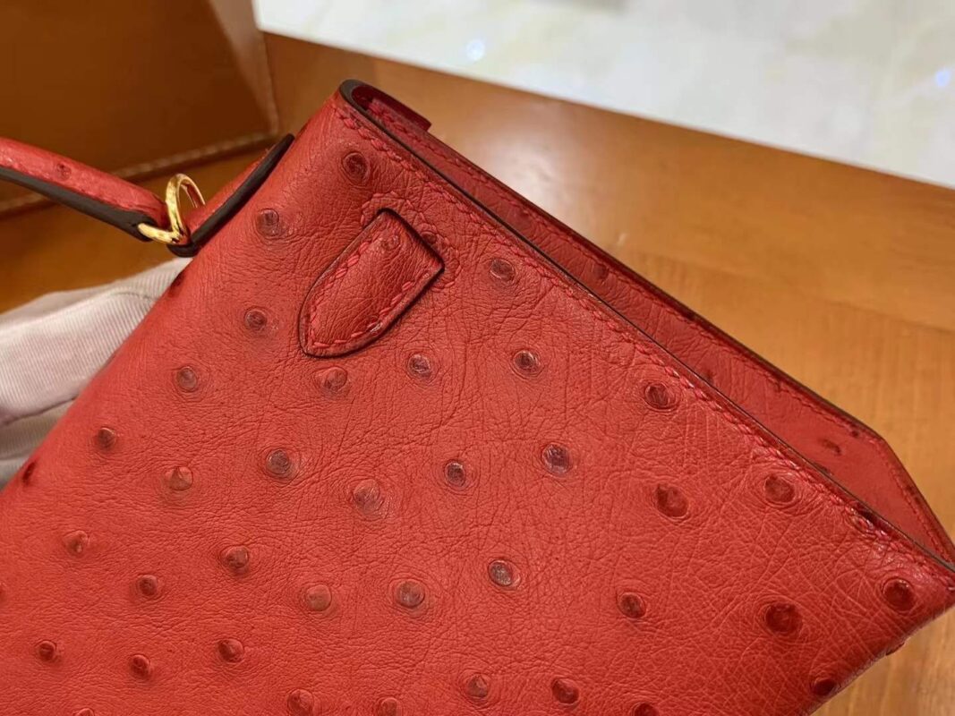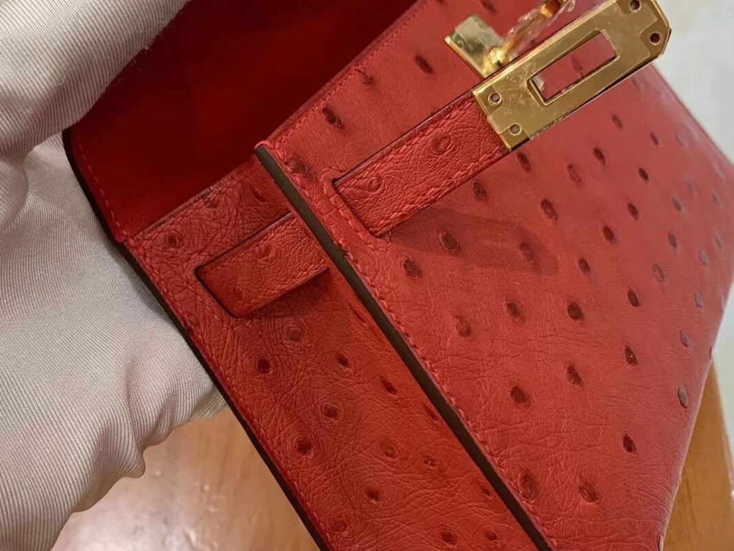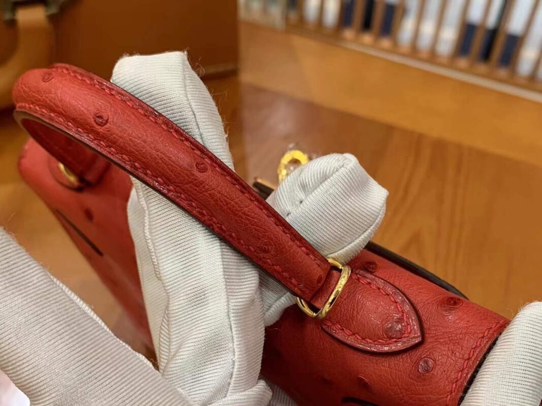 Mini Kelly II 19cm Garnet RedImported South African KK grade ostrich leather. All hand-sewn