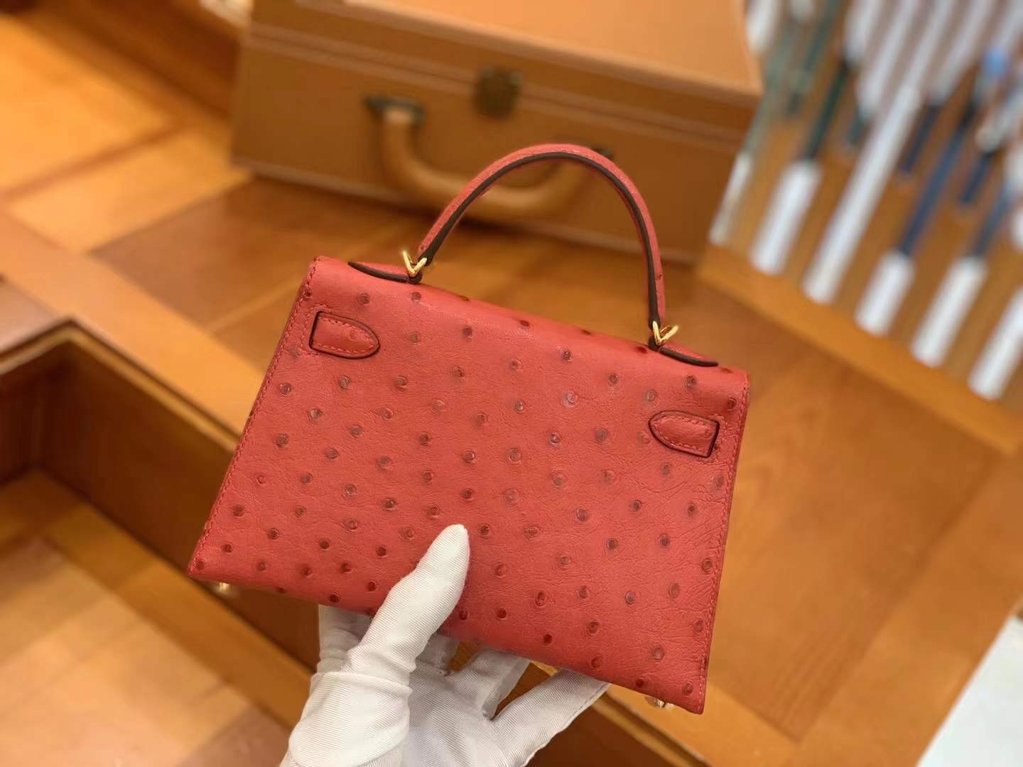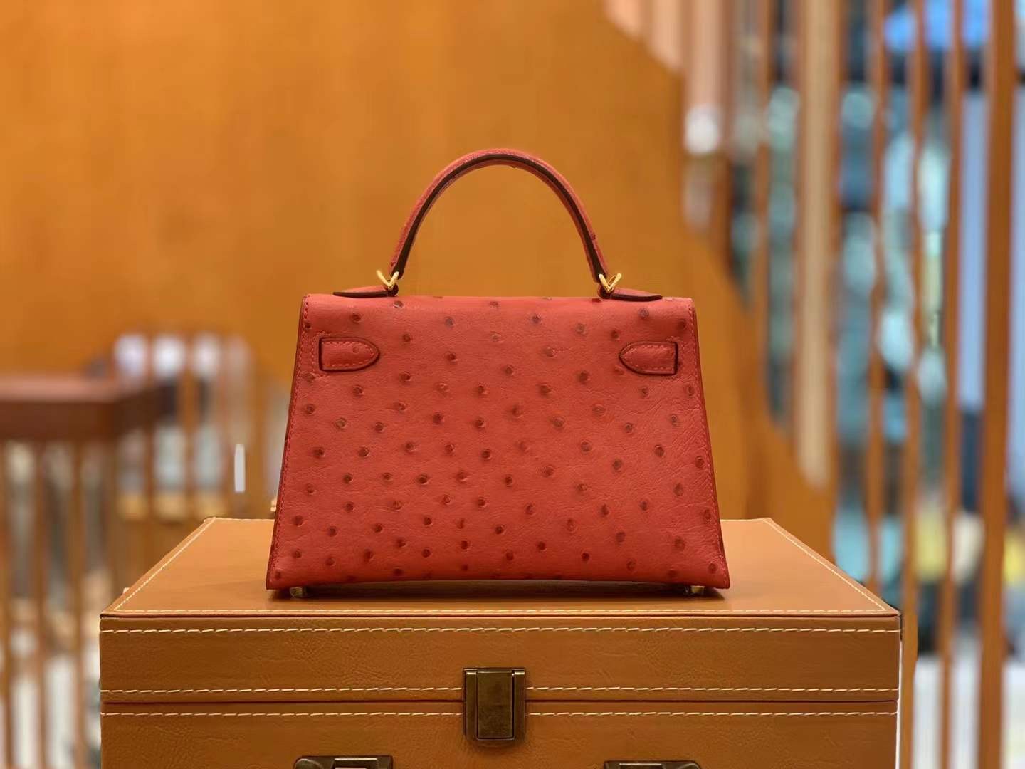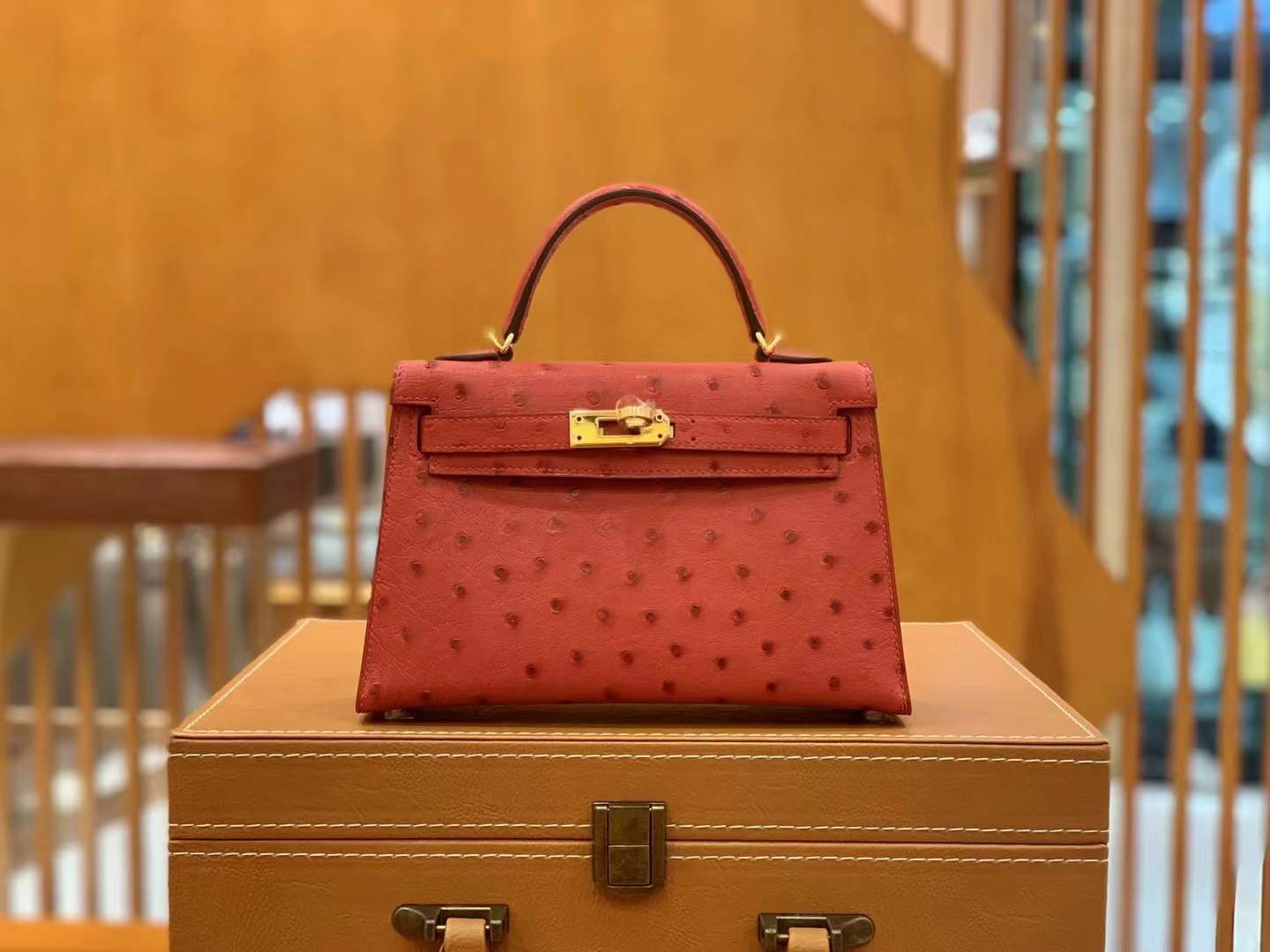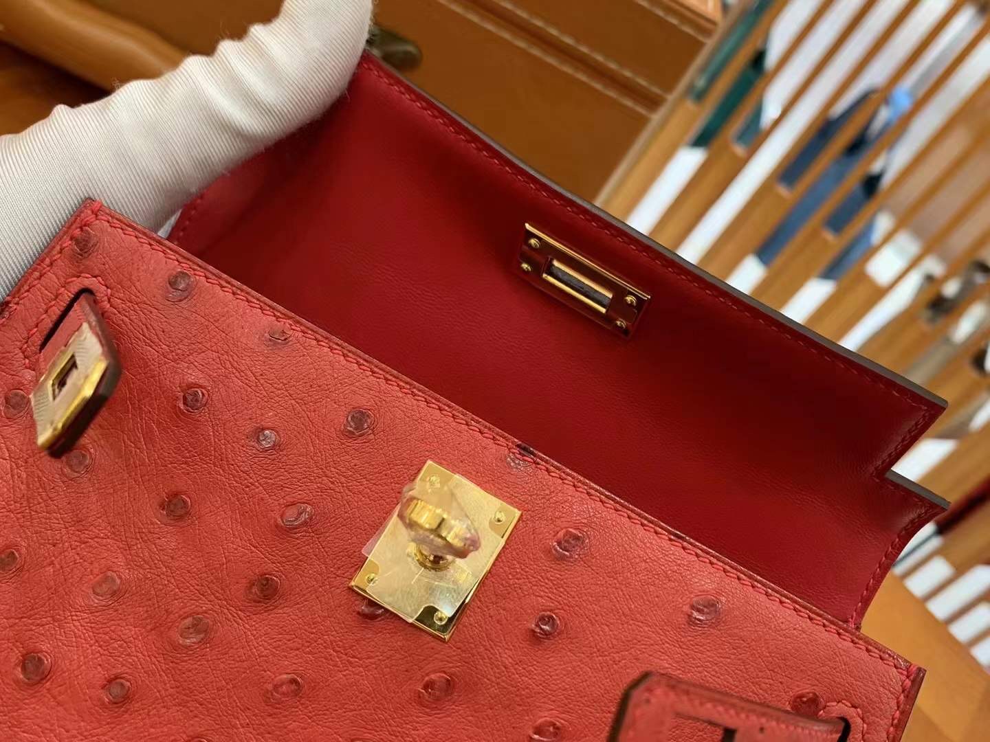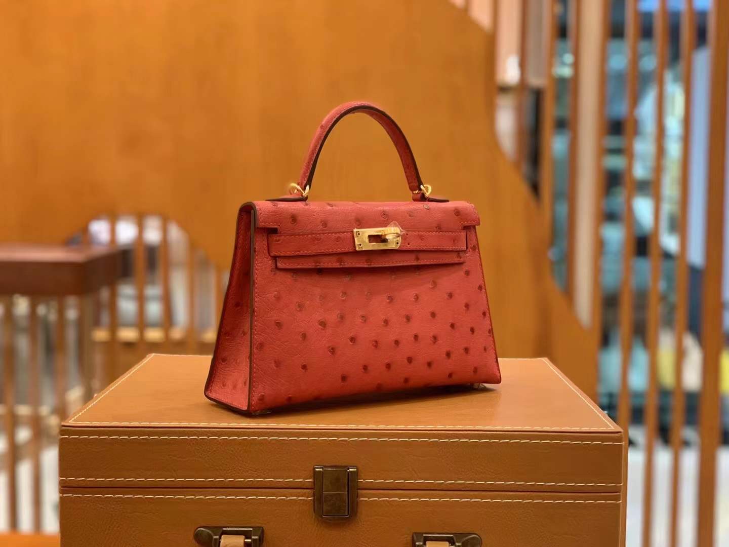 Mini Kelly II 19cm Garnet RedImported South African KK grade ostrich leather. All hand-sewn