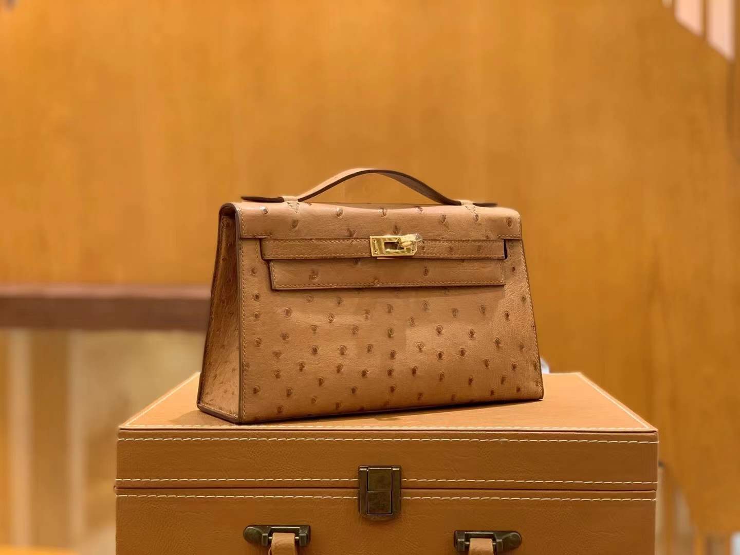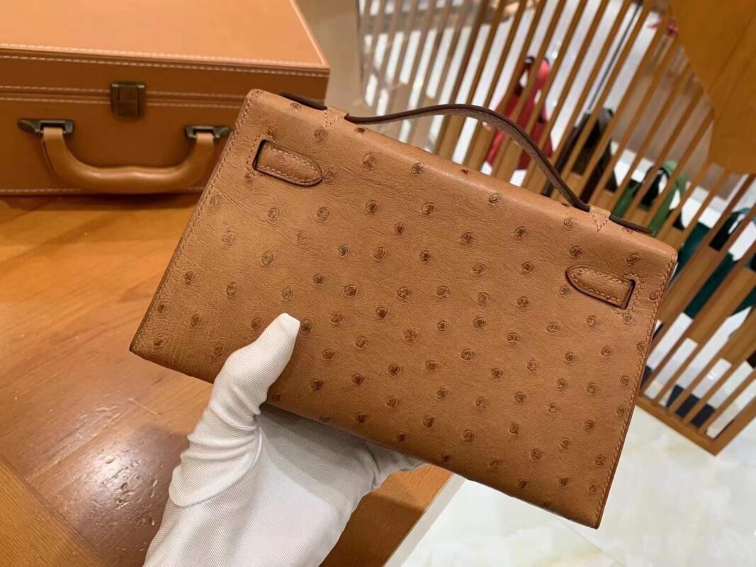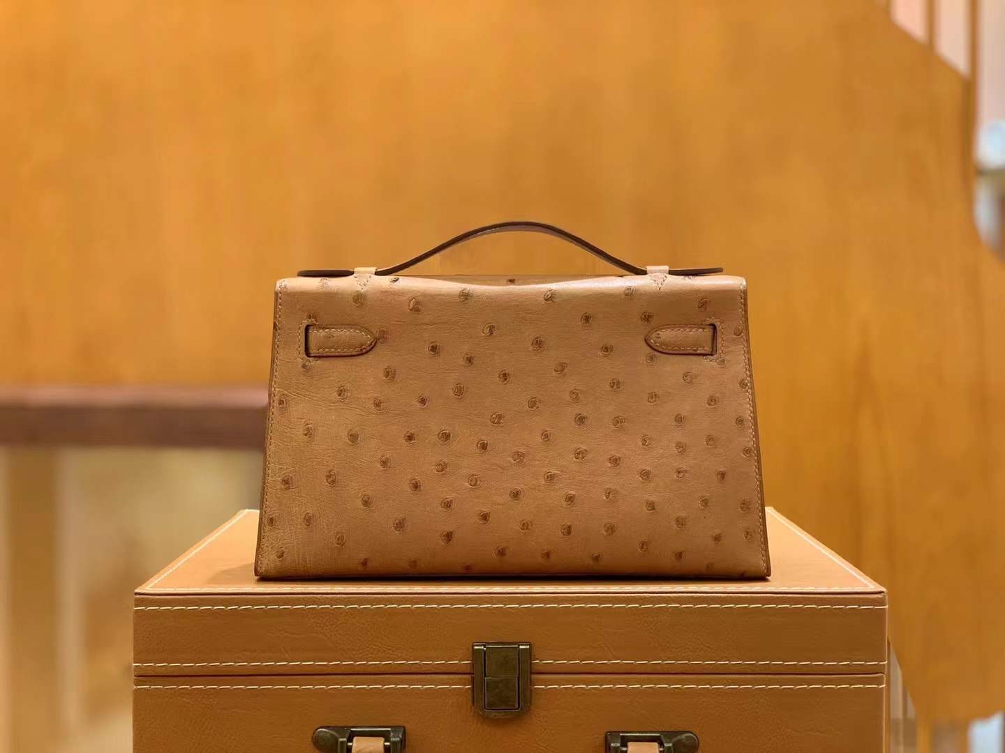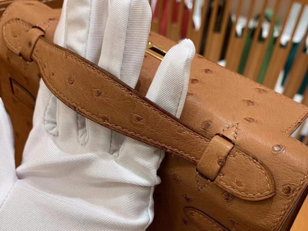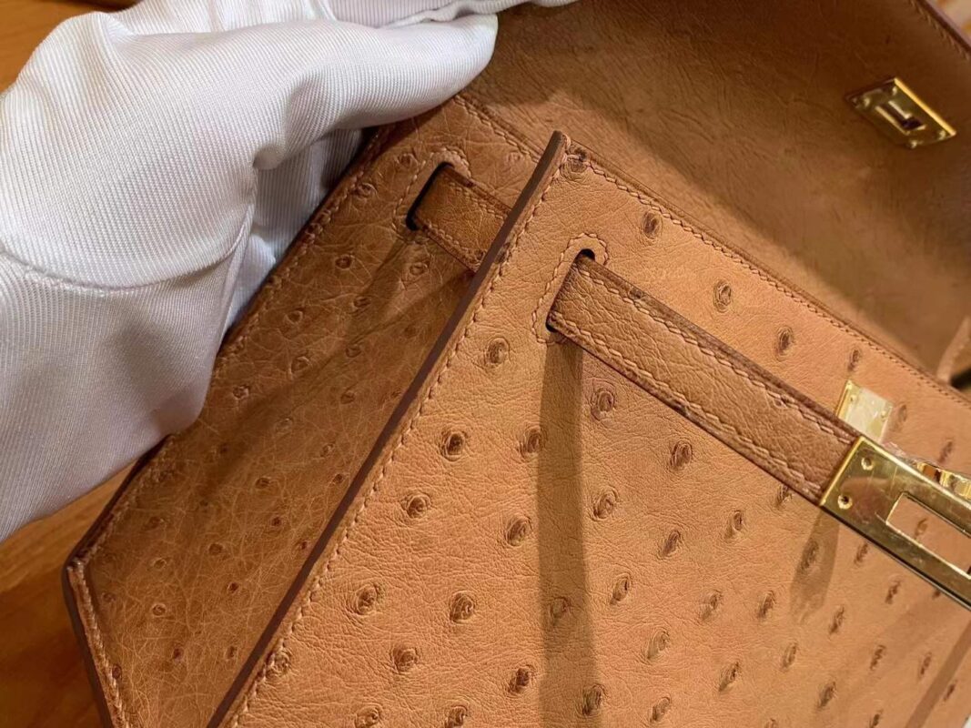 Mini Kelly Generation 22cm Golden Brown Imported South African KK grade ostrich leather. Hand-sewn