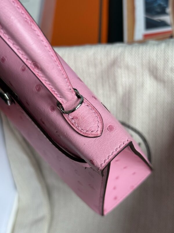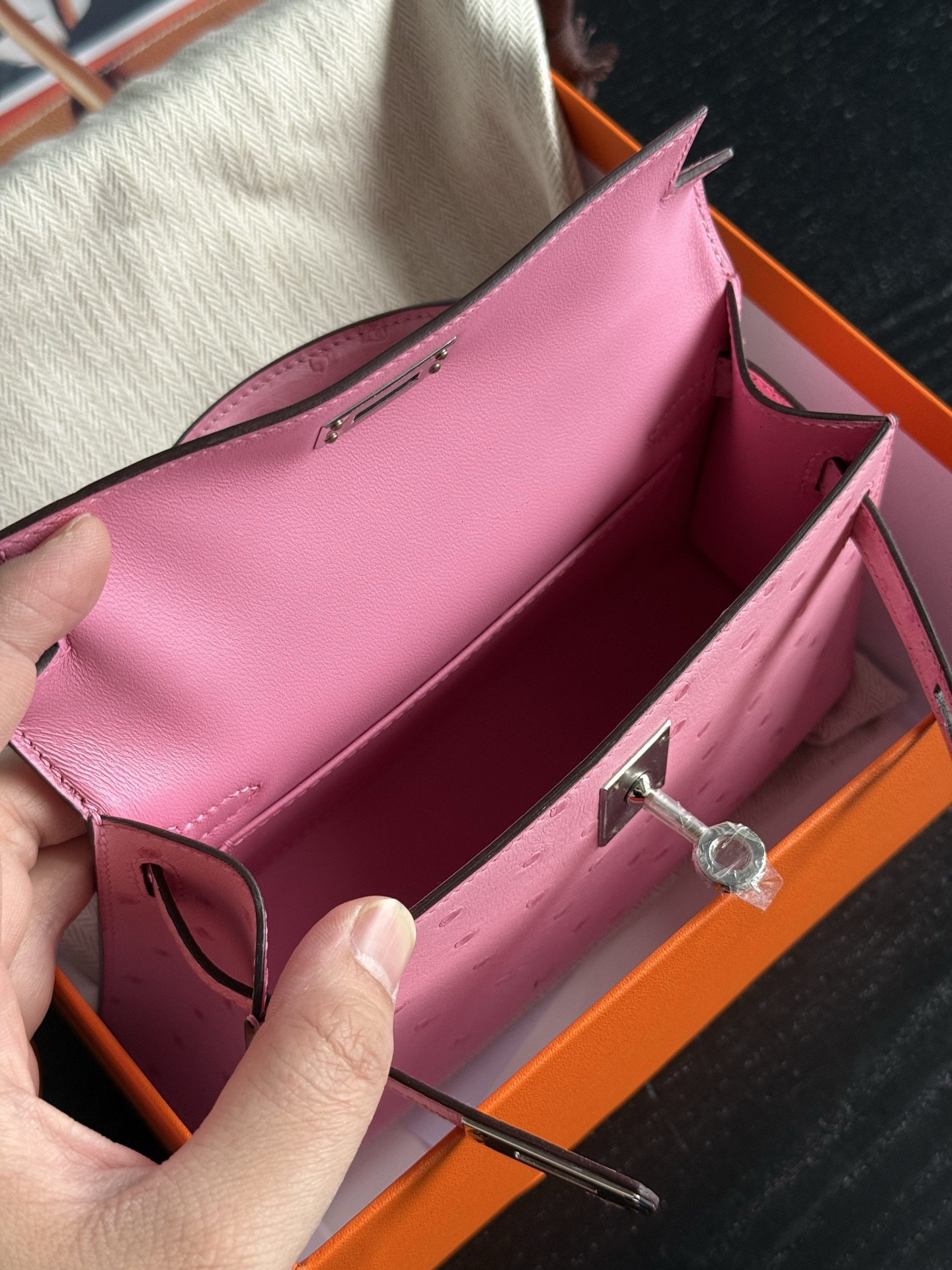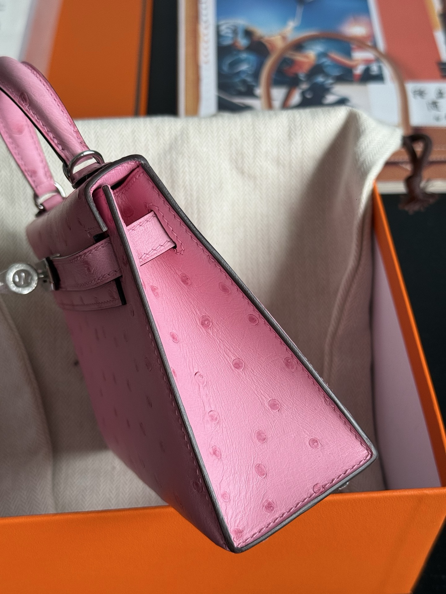 Mini Kelly Ostrich L4 Rose Bubblegum PHW Stamp K