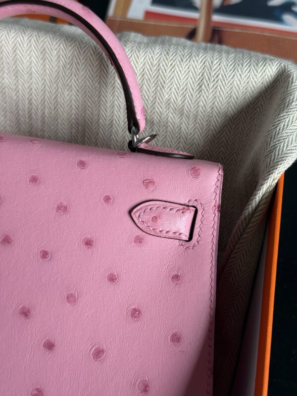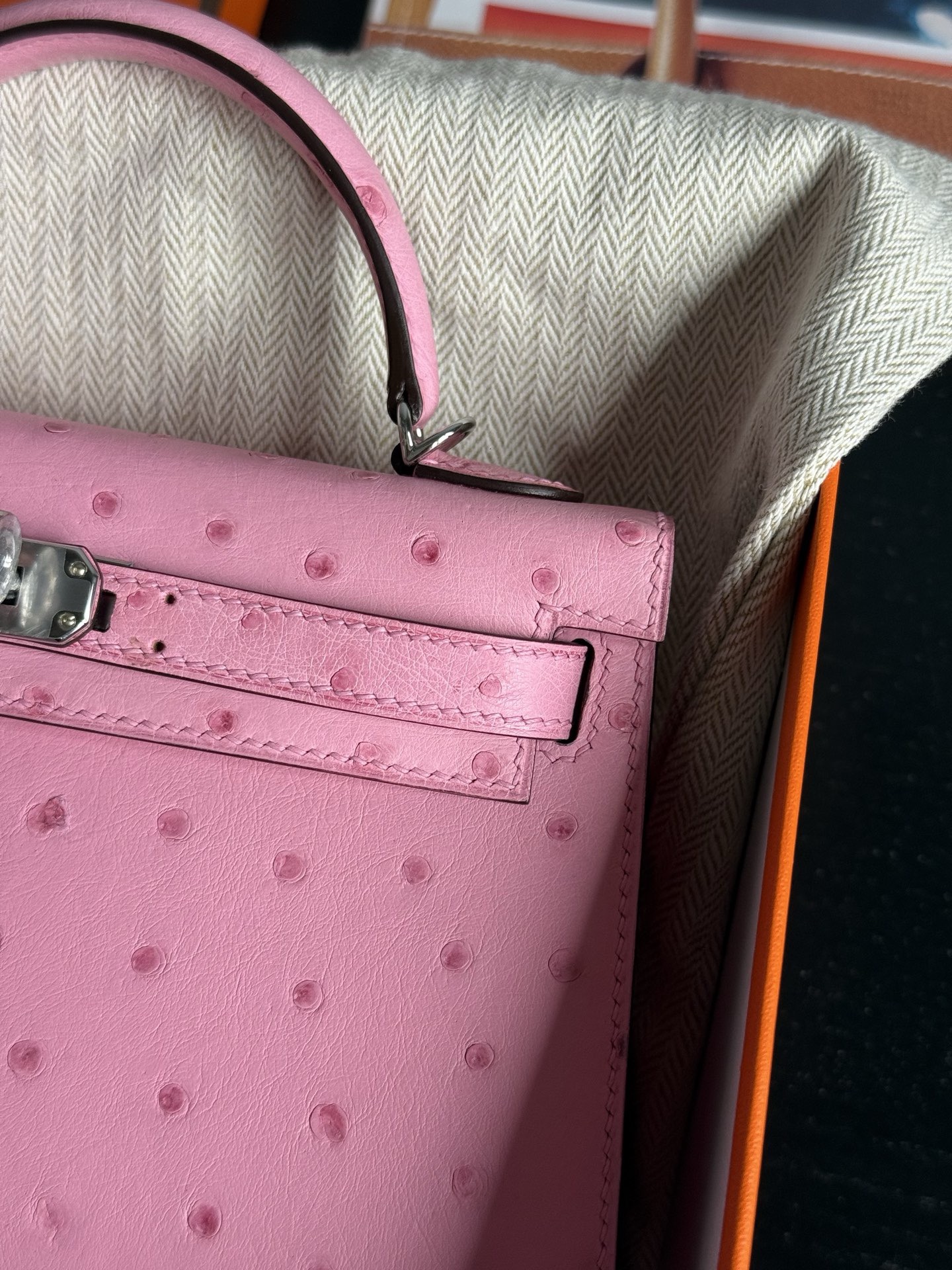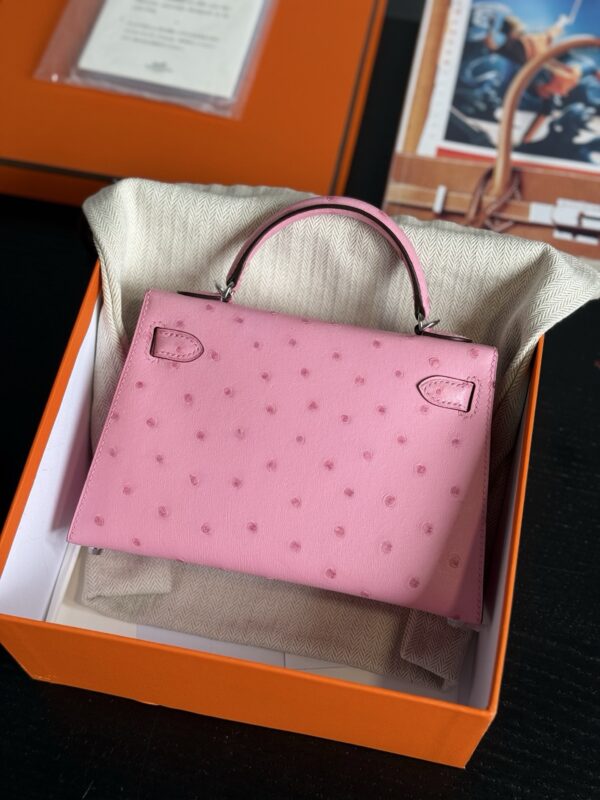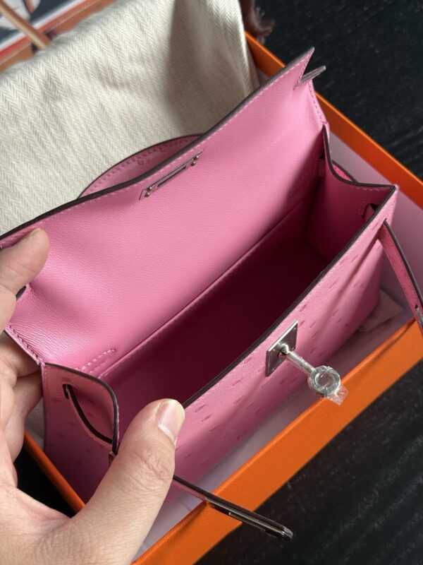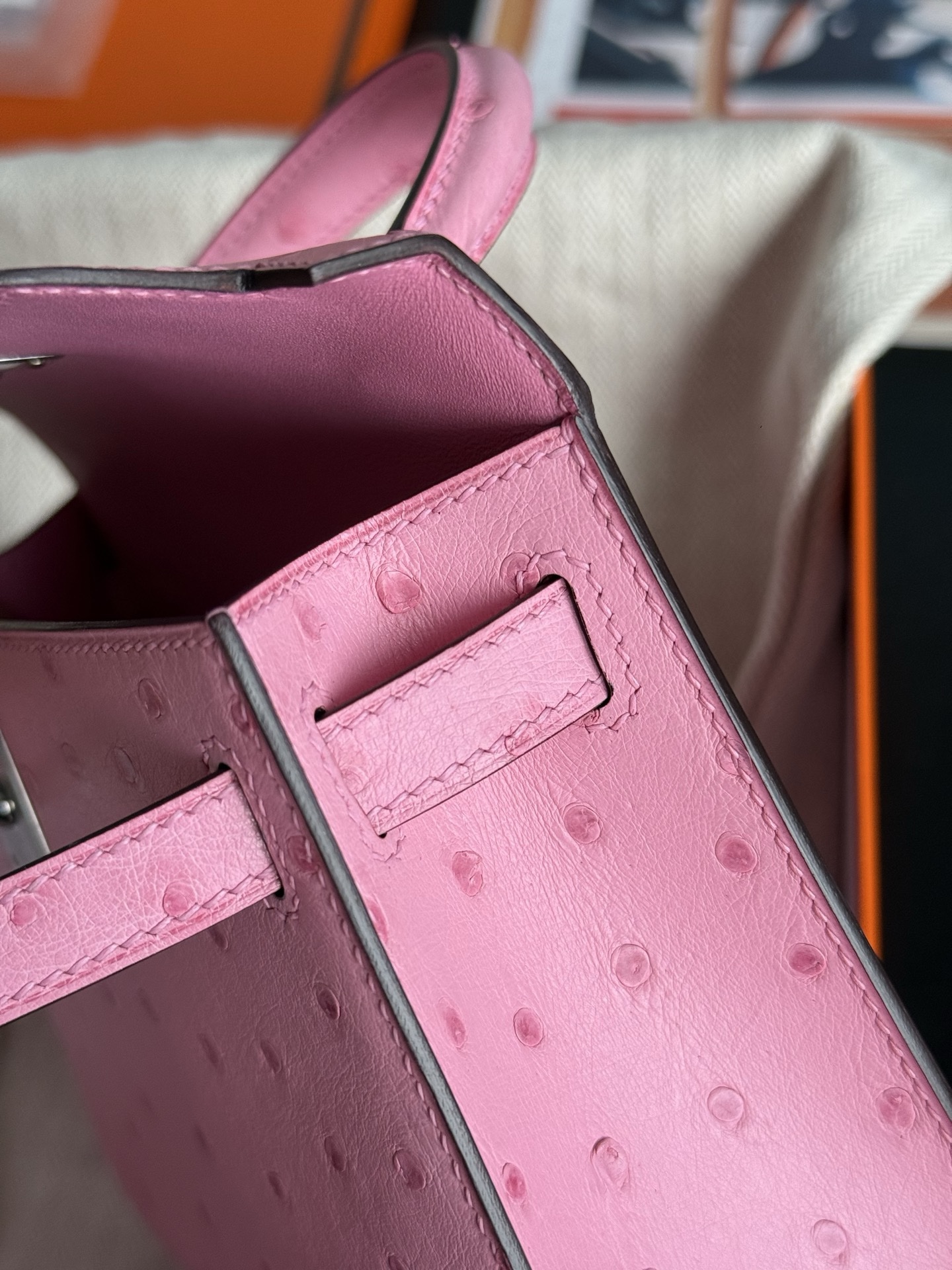 Mini Kelly Ostrich L4 Rose Bubblegum PHW Stamp K