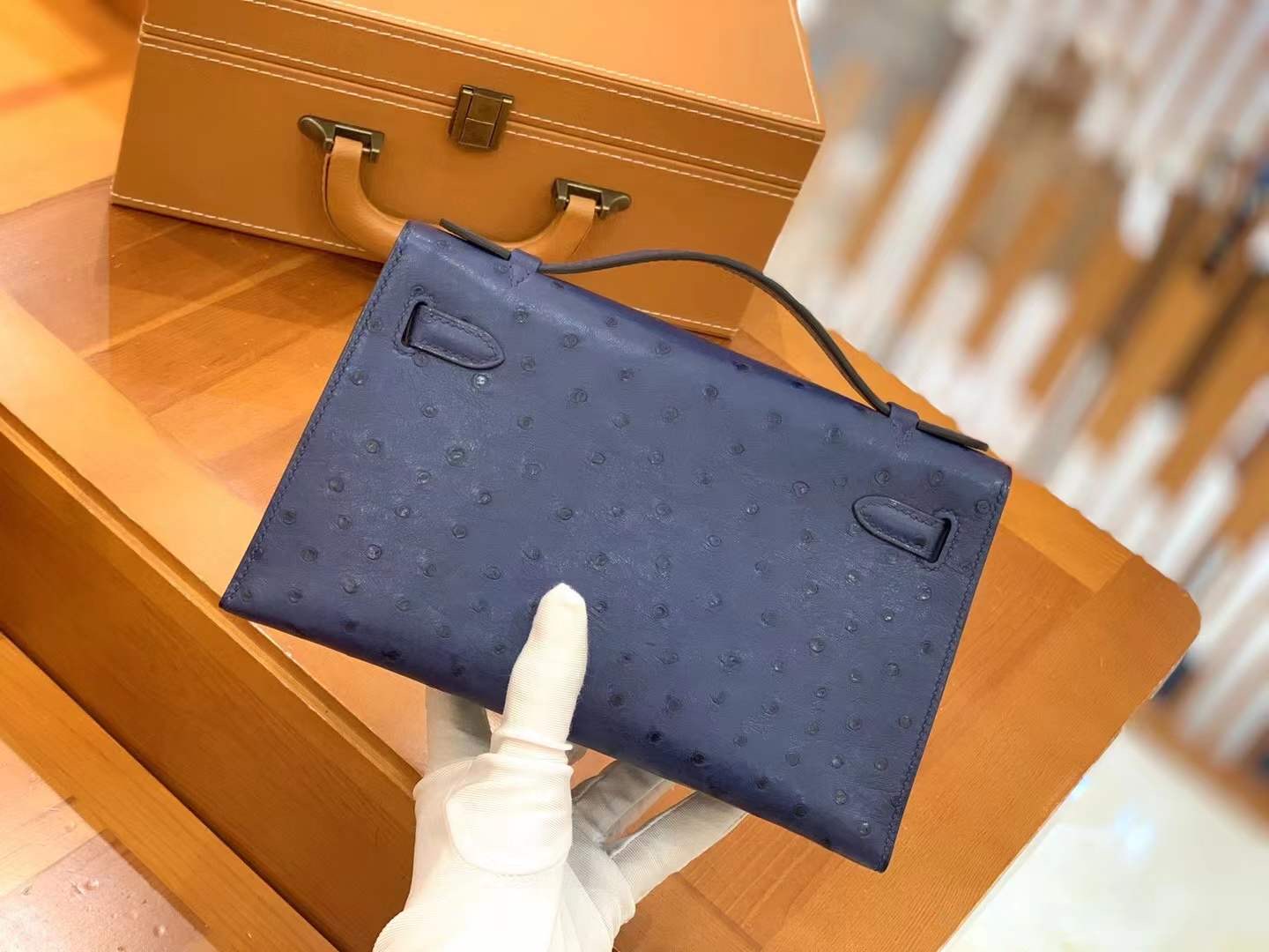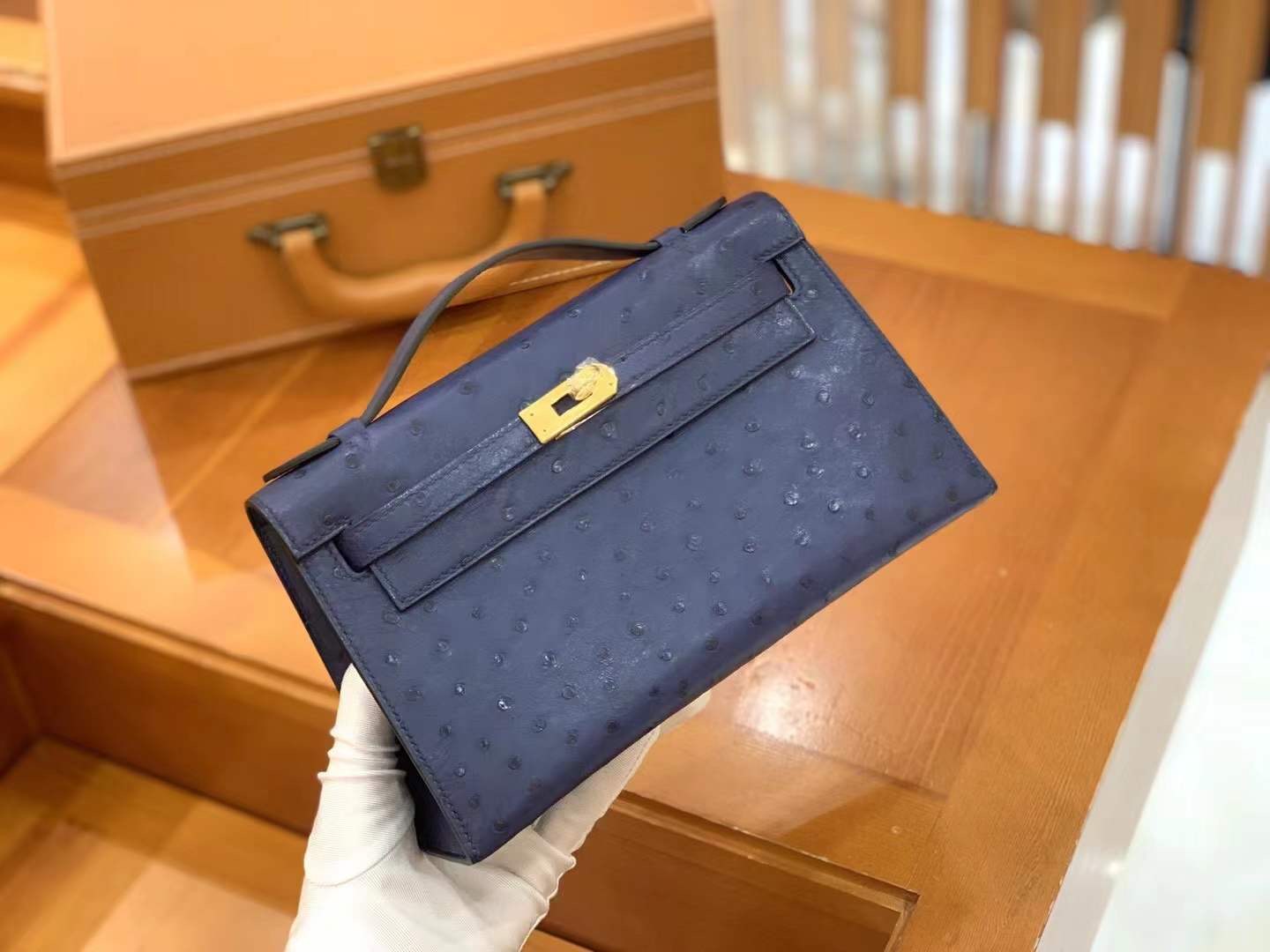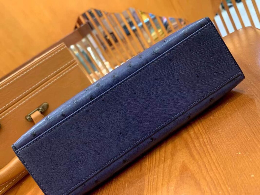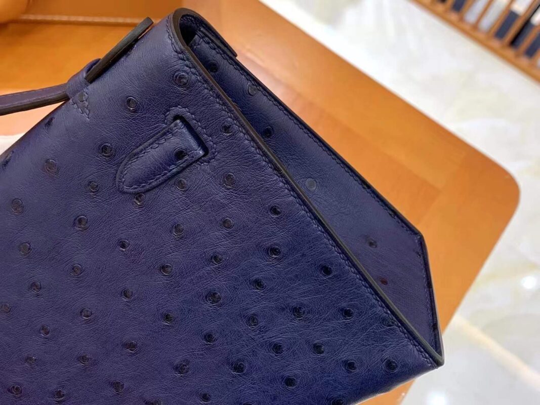 Mini Kelly 1st 22cm Maltese BlueImported South African KK grade ostrich leather. All hand-sewn