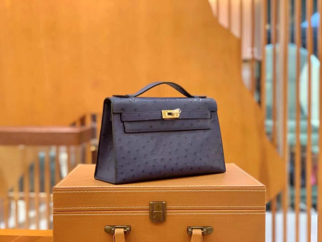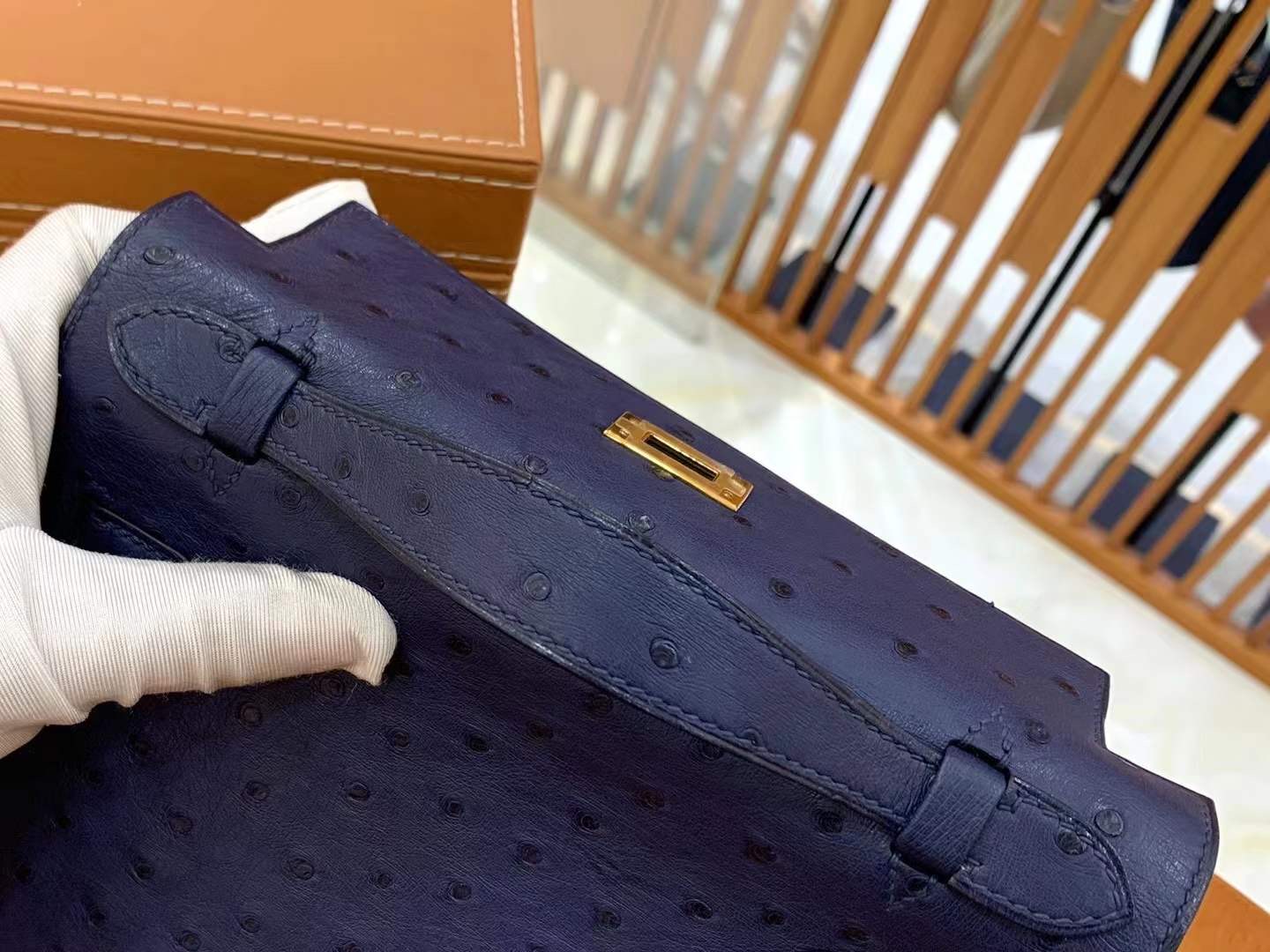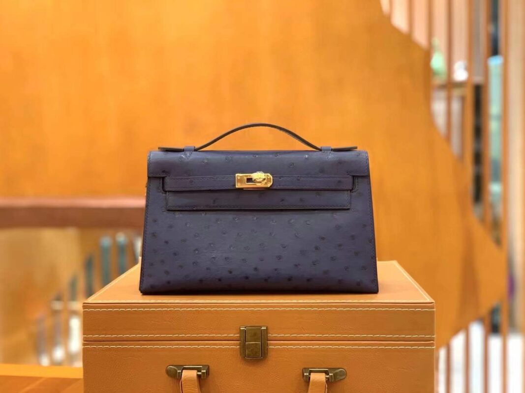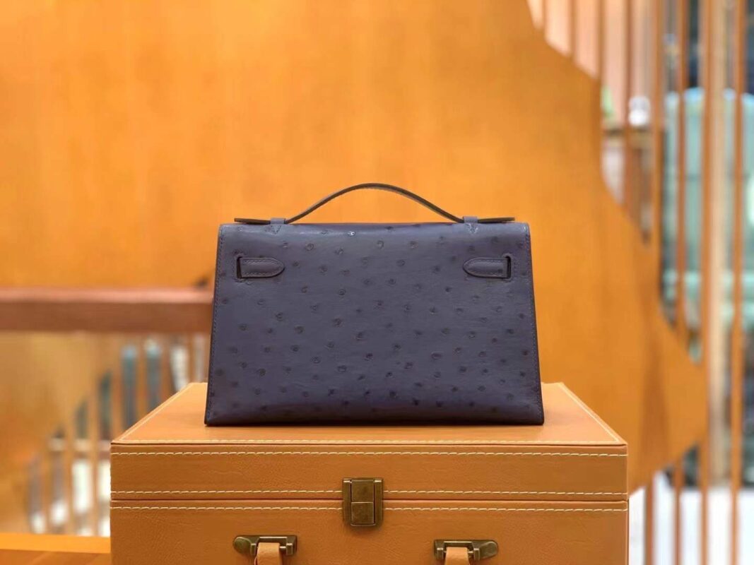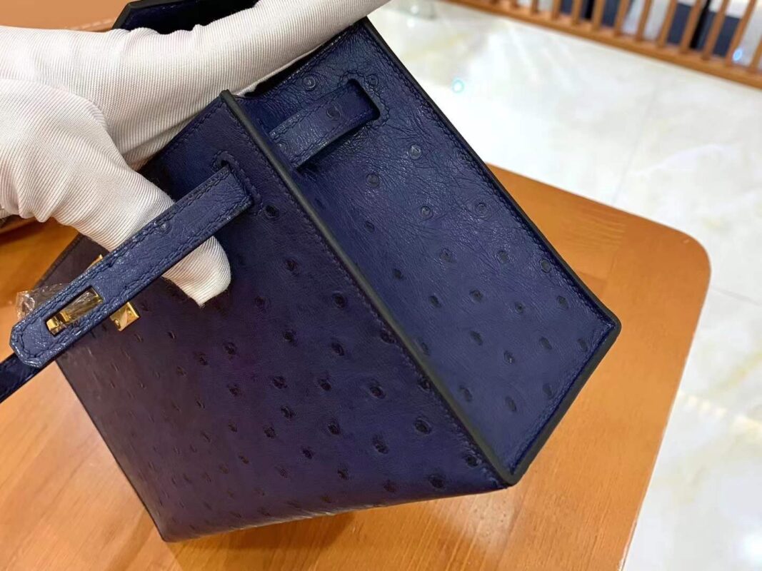 Mini Kelly 1st 22cm Maltese BlueImported South African KK grade ostrich leather. All hand-sewn