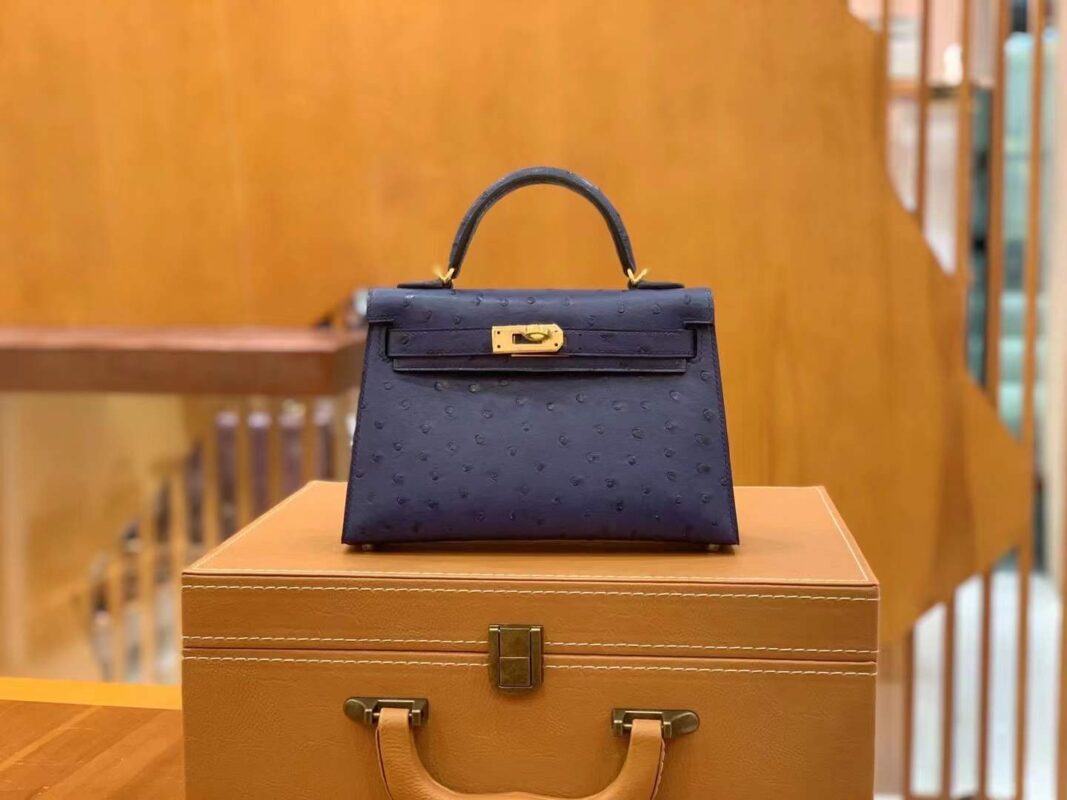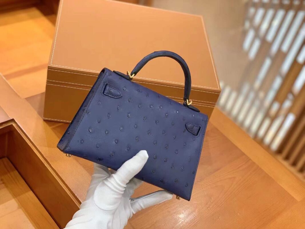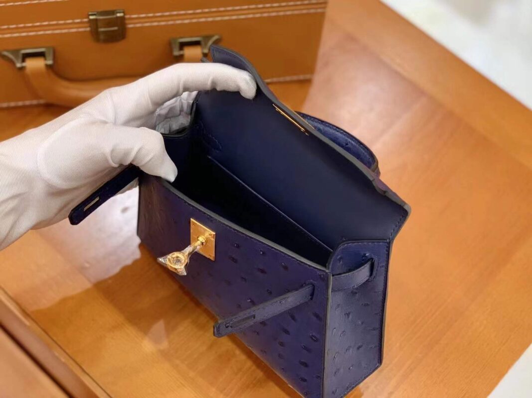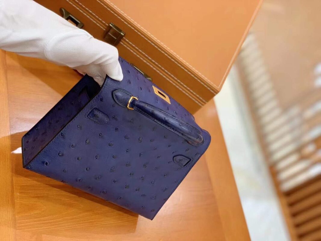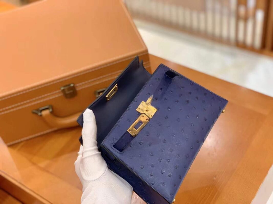 Mini Kelly II 19cm Maltese BlueImported South African KK grade ostrich leather. All hand-sewn