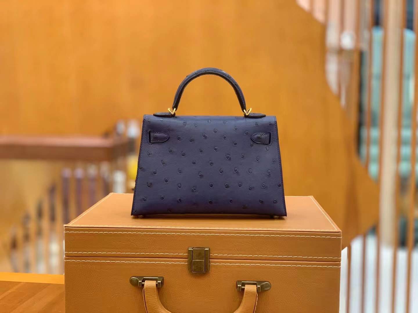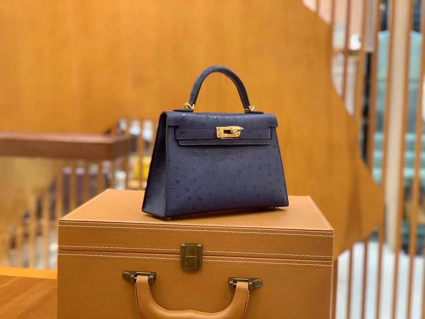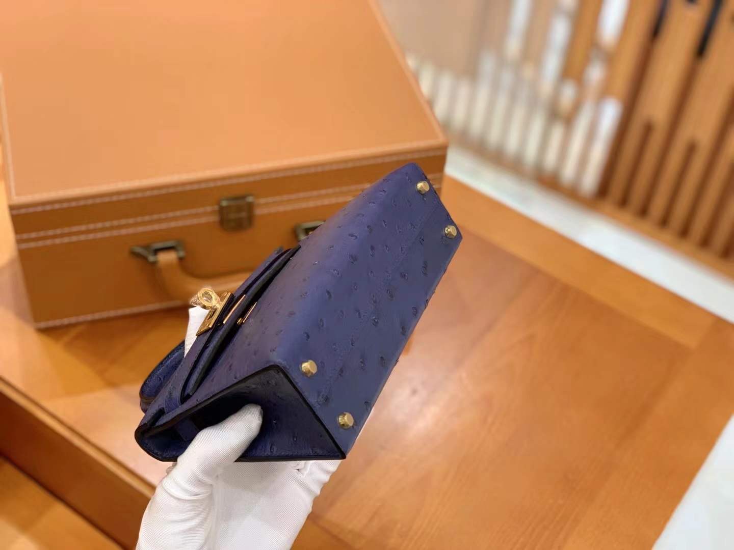 Mini Kelly II 19cm Maltese BlueImported South African KK grade ostrich leather. All hand-sewn