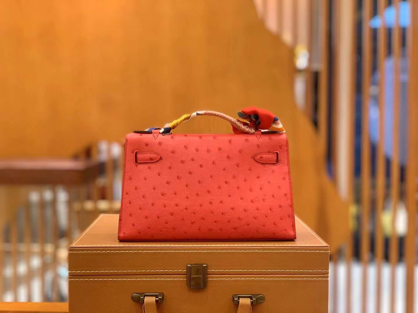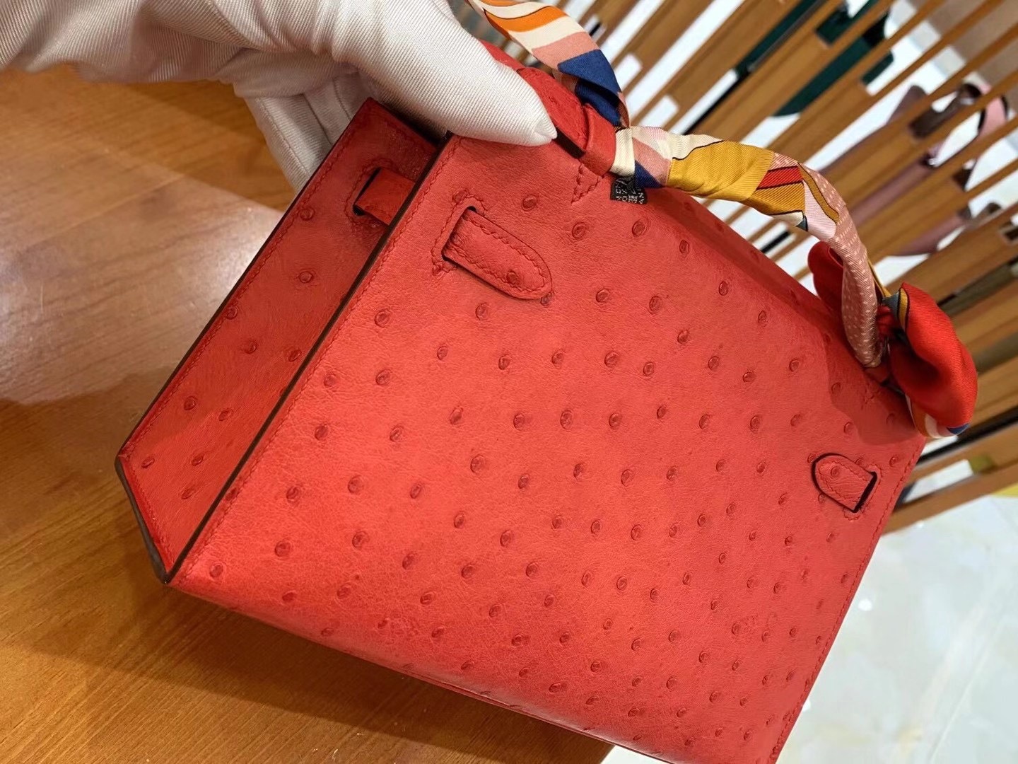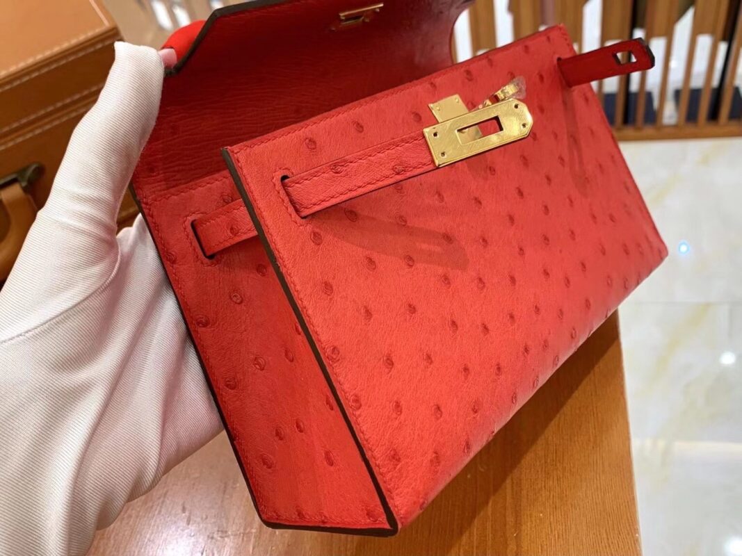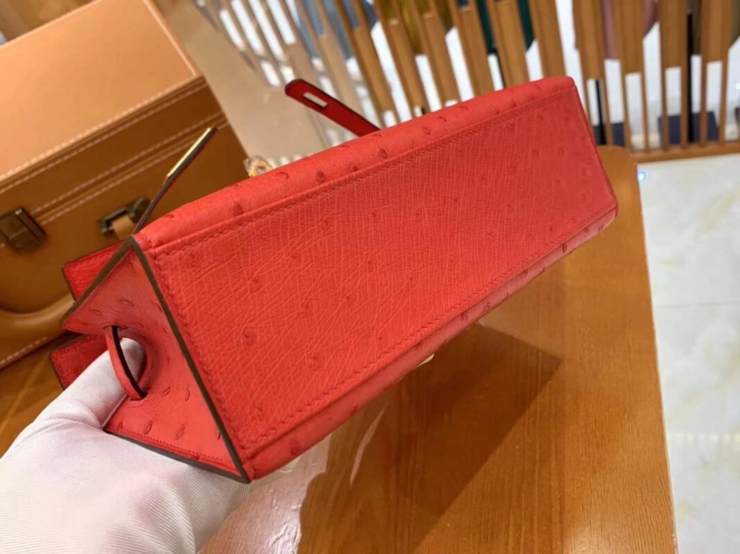 Mini Kelly Generation 22cm RedImported South African KK grade ostrich leather. All hand-sewn
