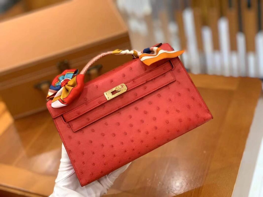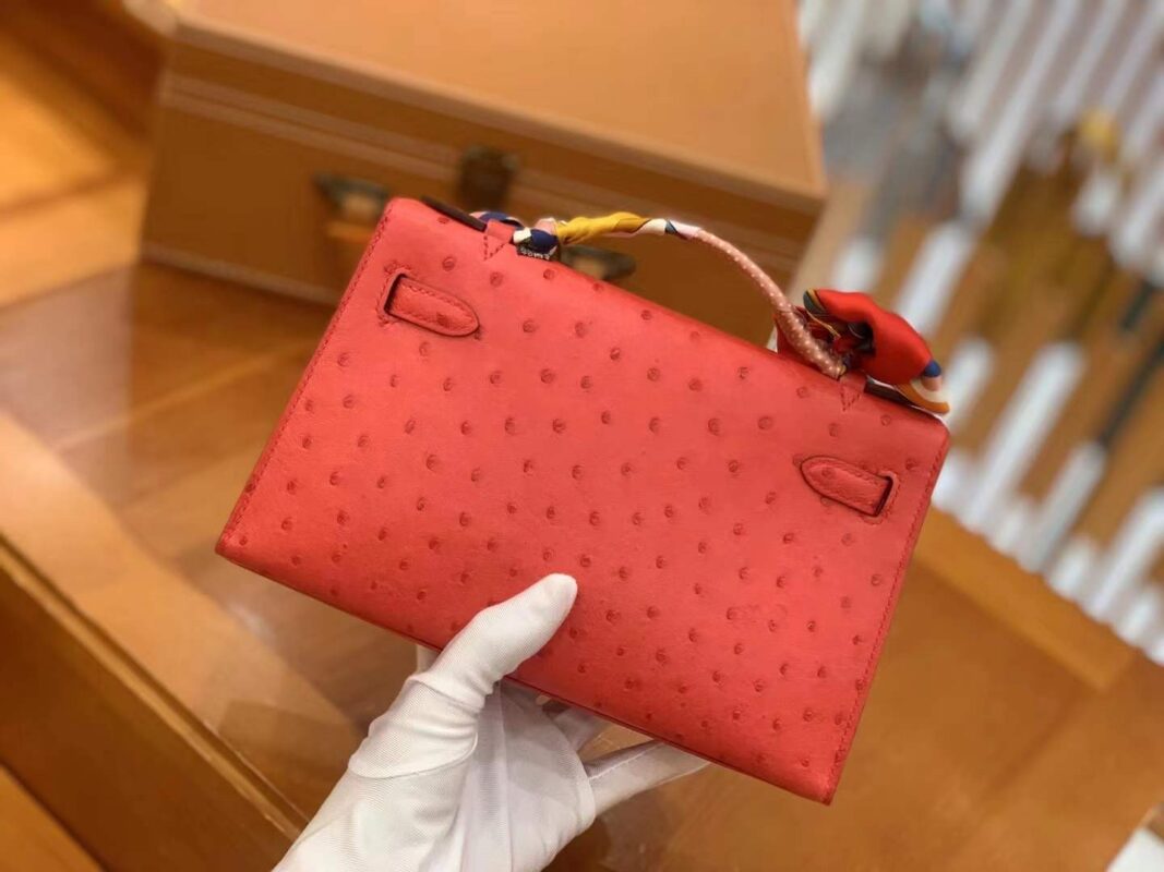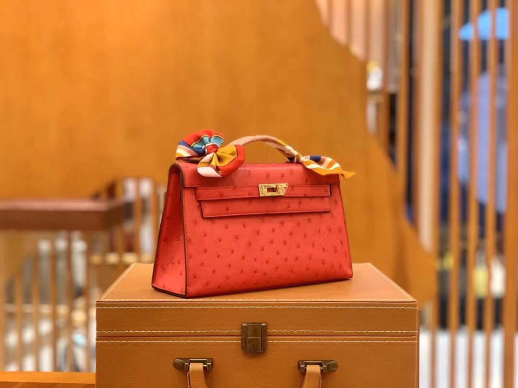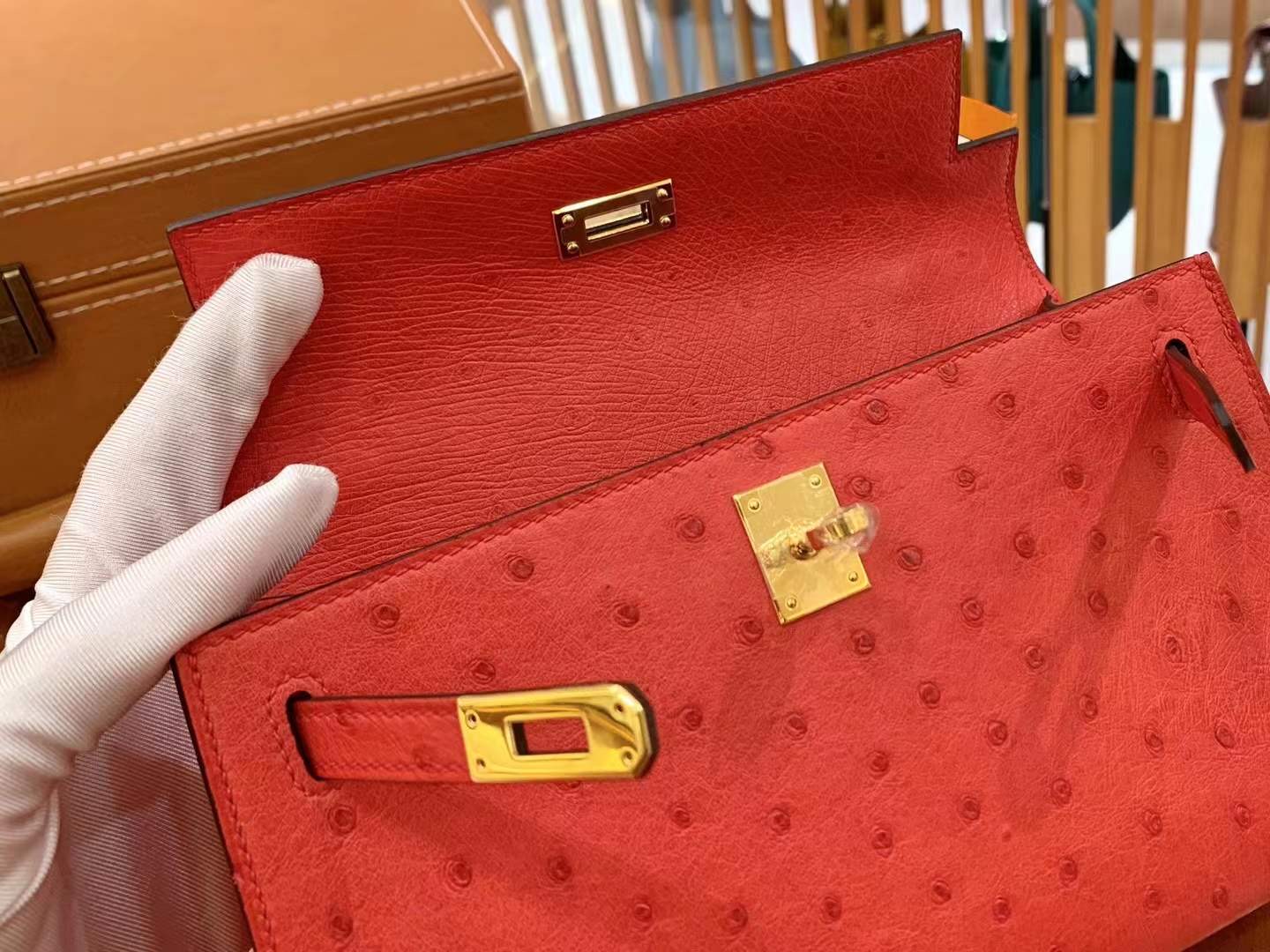 Mini Kelly Generation 22cm RedImported South African KK grade ostrich leather. All hand-sewn