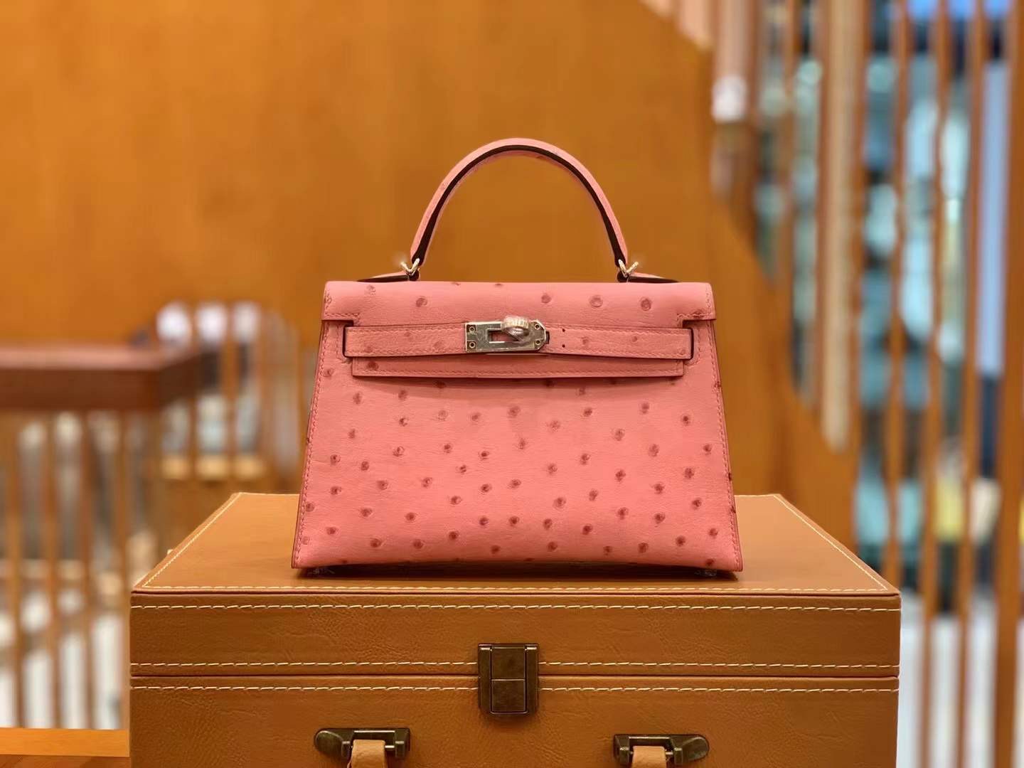 Mini Kelly Ostrich Rose Sakura