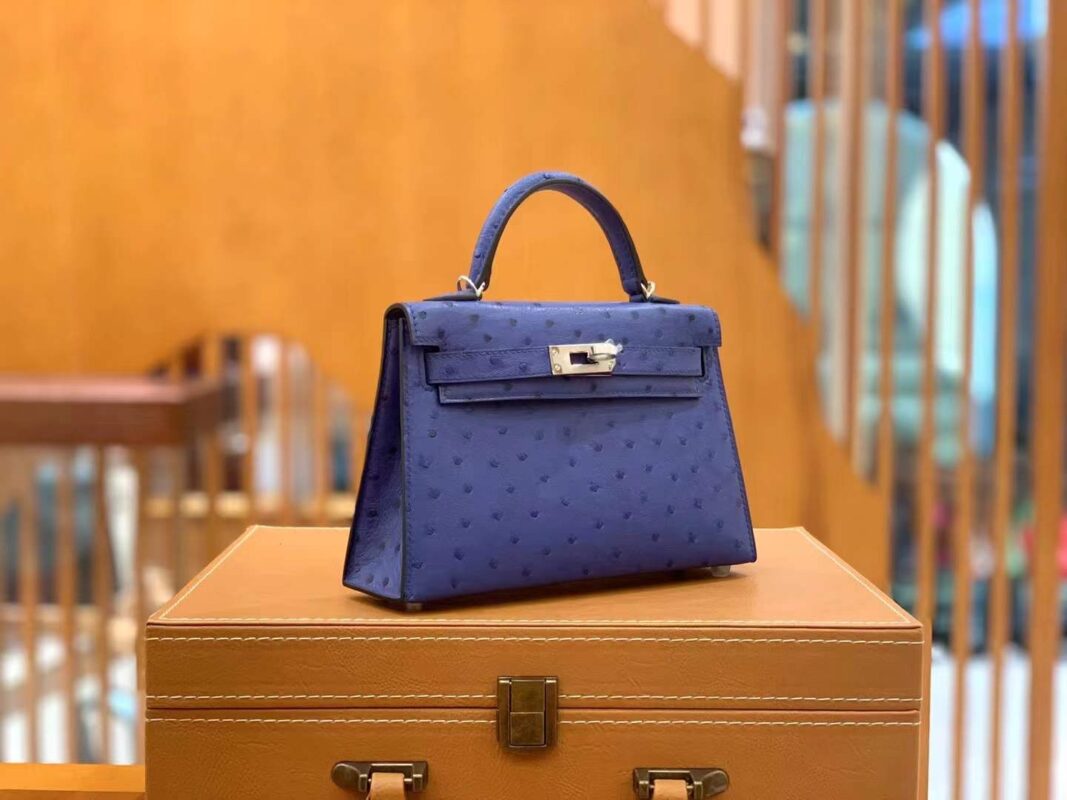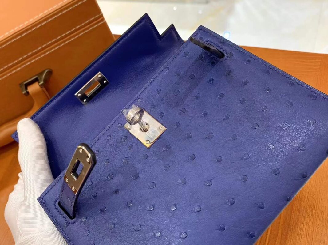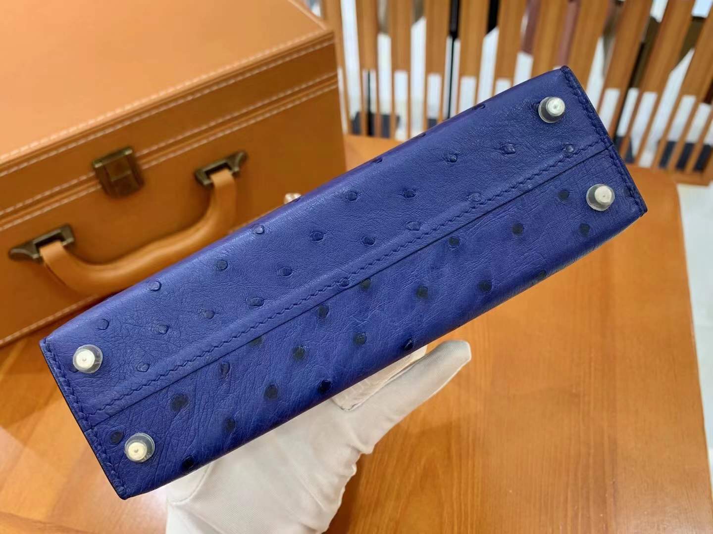 Mini Kelly II 19cm Sapphire BlueImported South African KK grade ostrich leather. All hand-sewn