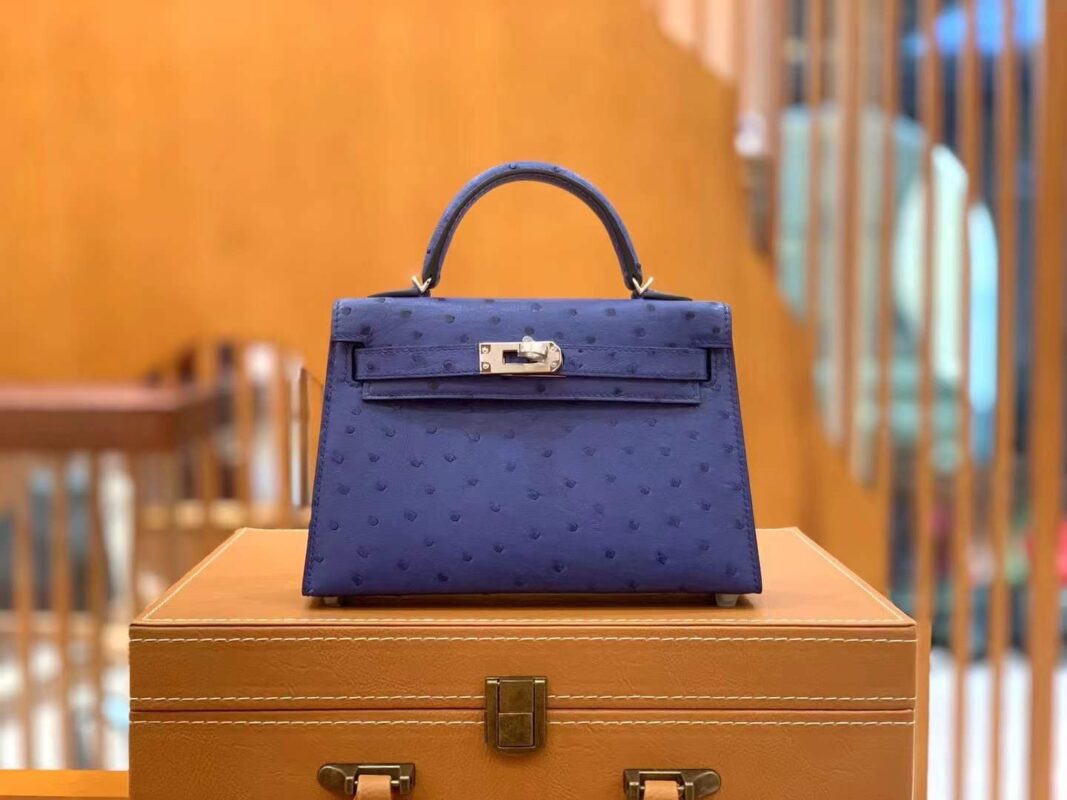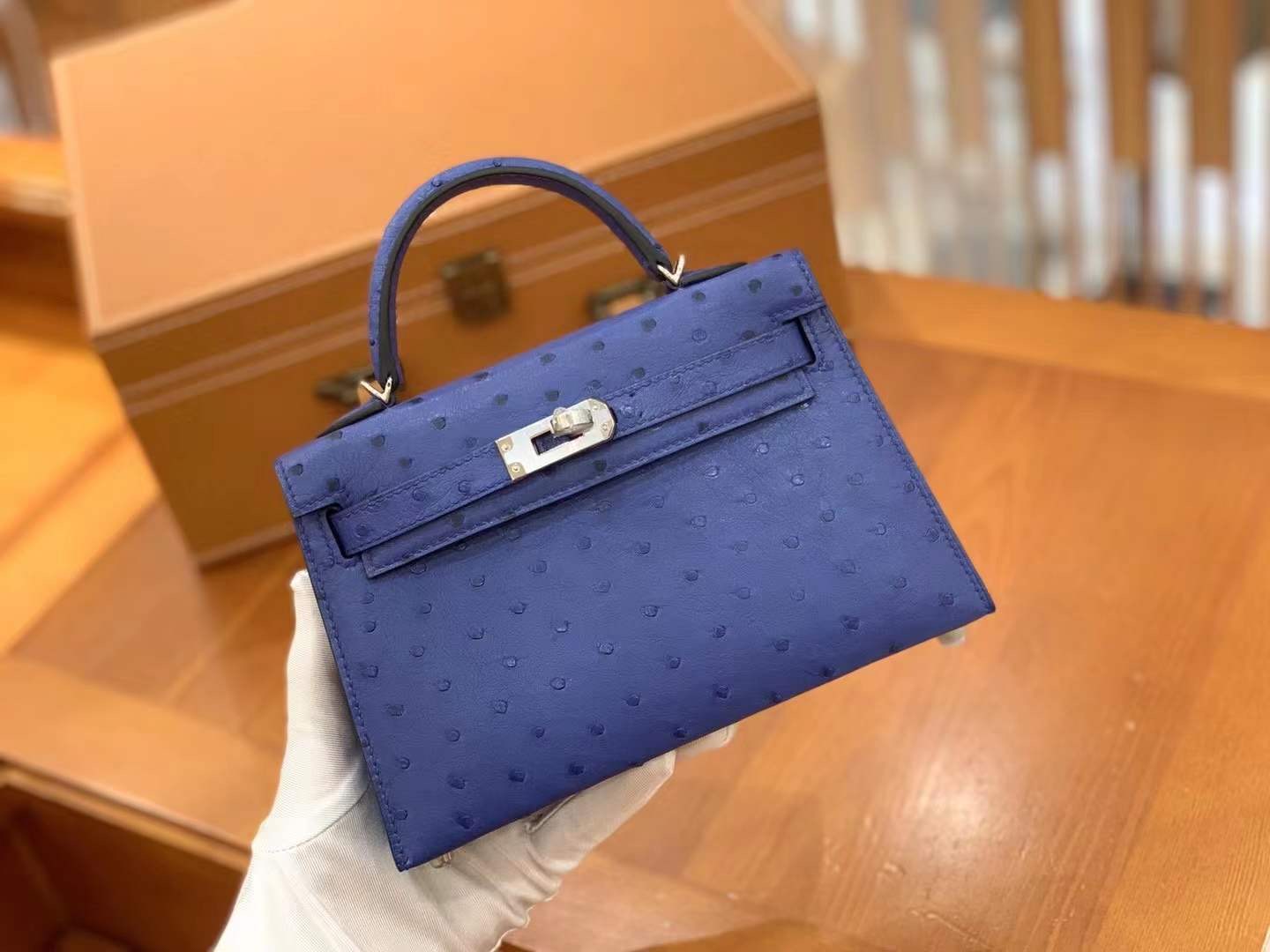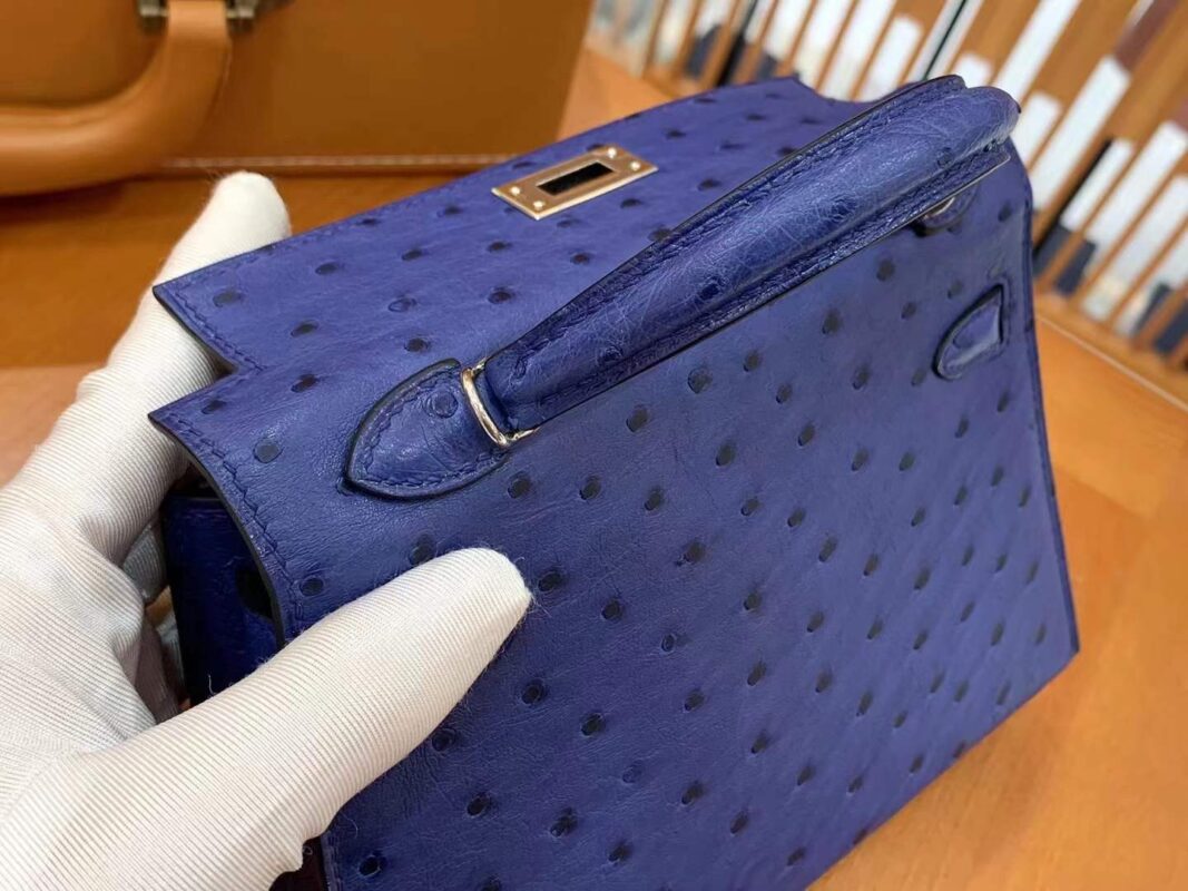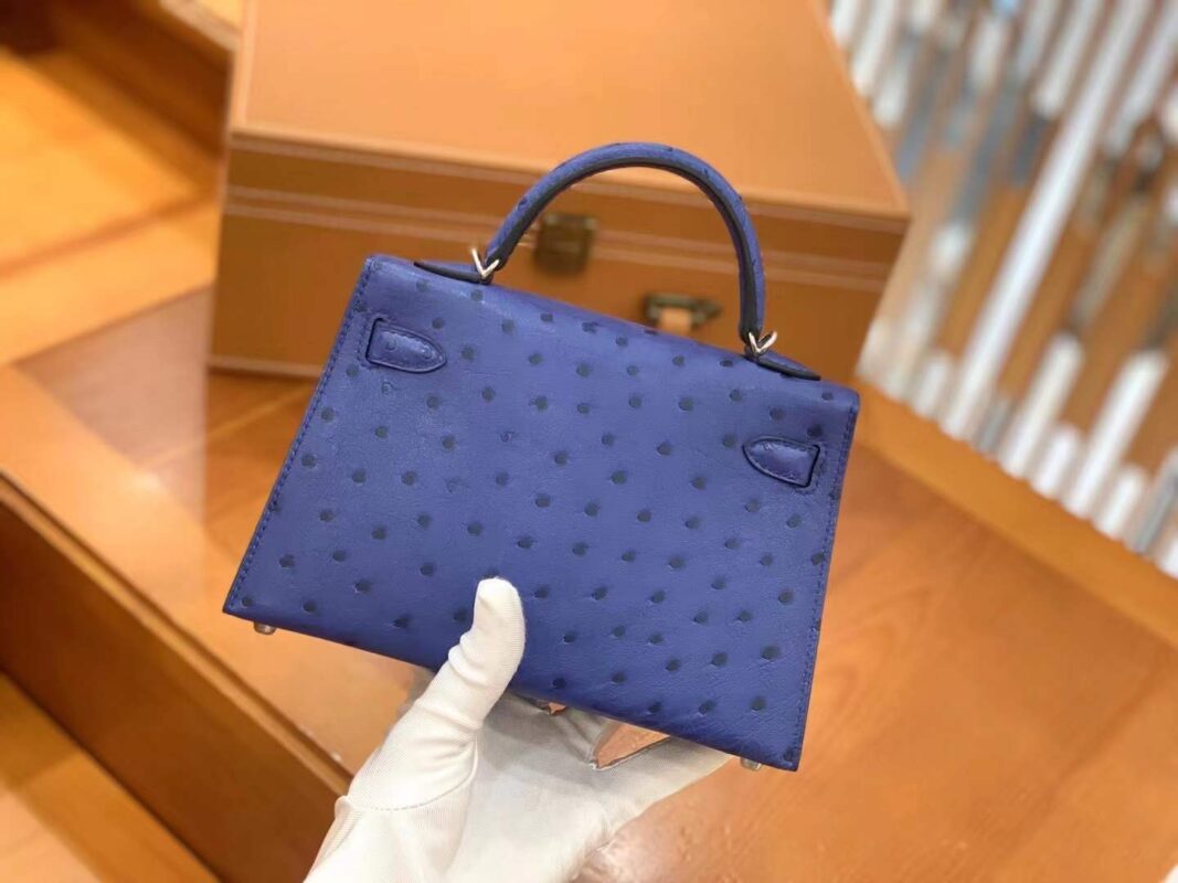 Mini Kelly II 19cm Sapphire BlueImported South African KK grade ostrich leather. All hand-sewn