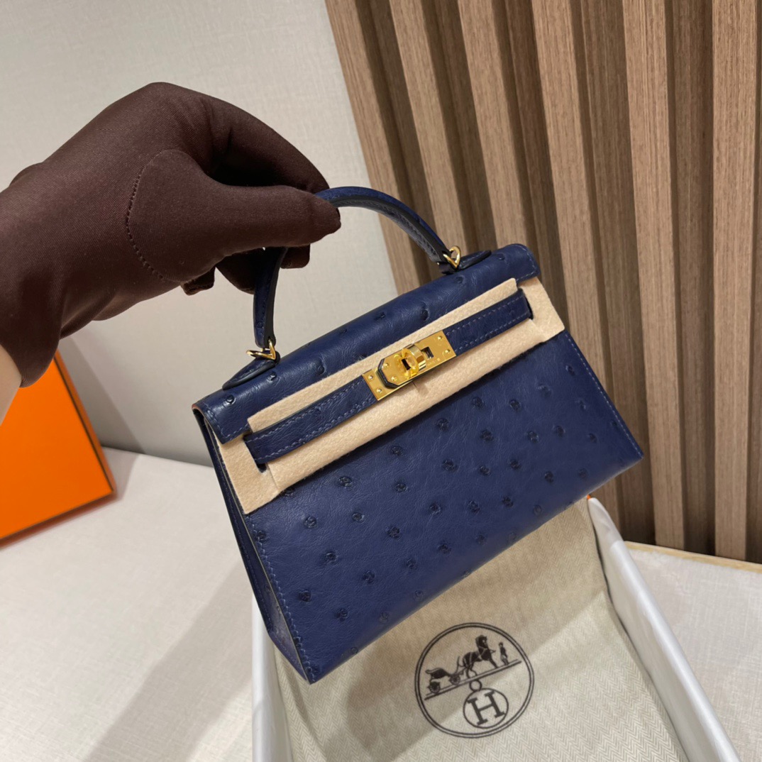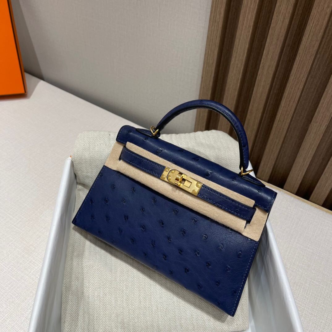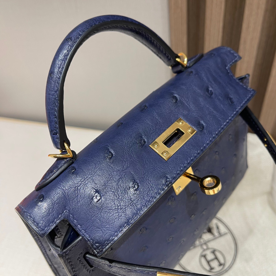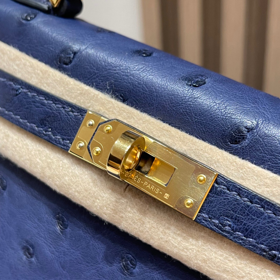 New Mini Kelly second generation ostrich leather Sapphire Blue – (Bleu Saphir) – 73 Gold Buckle