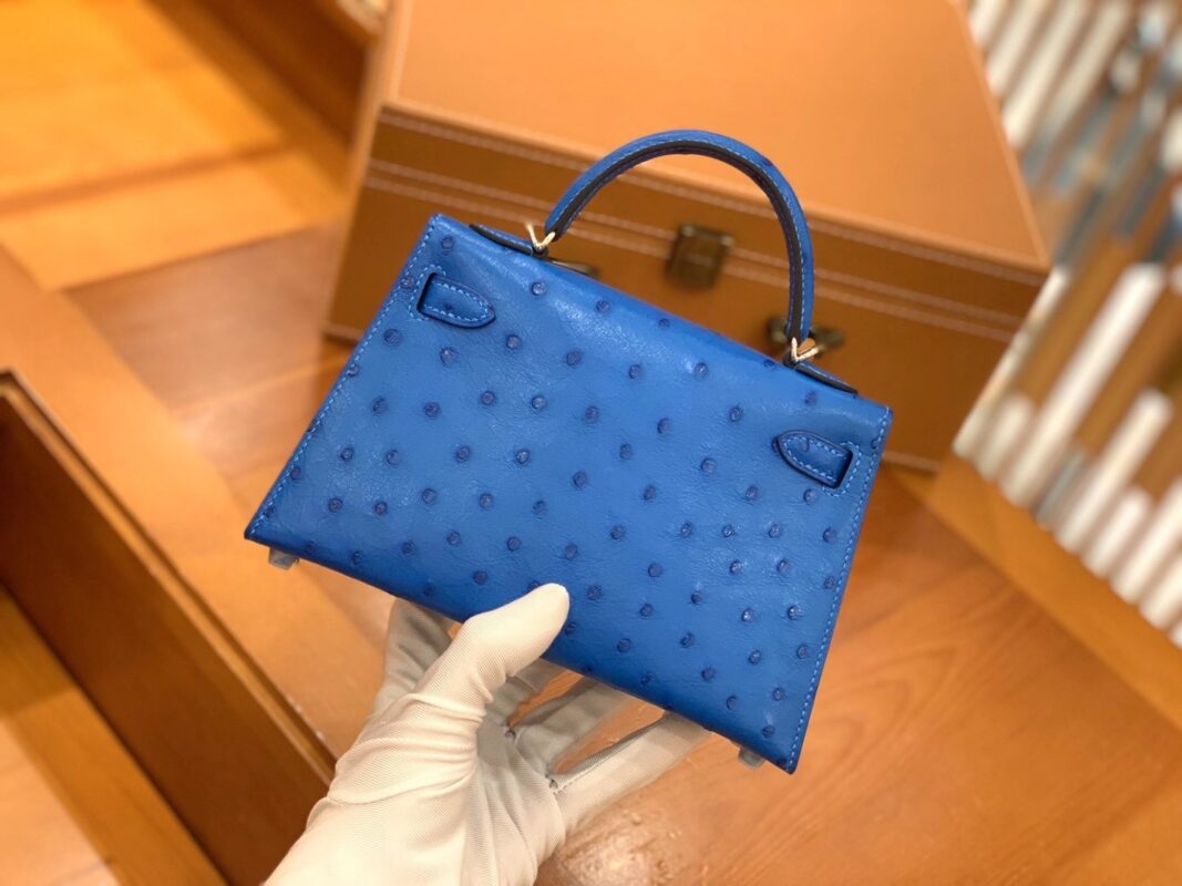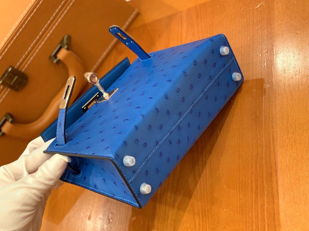 Mini Kelly second generation 19cm Water blueImported South African KK grade ostrich leather. All hand-sewn