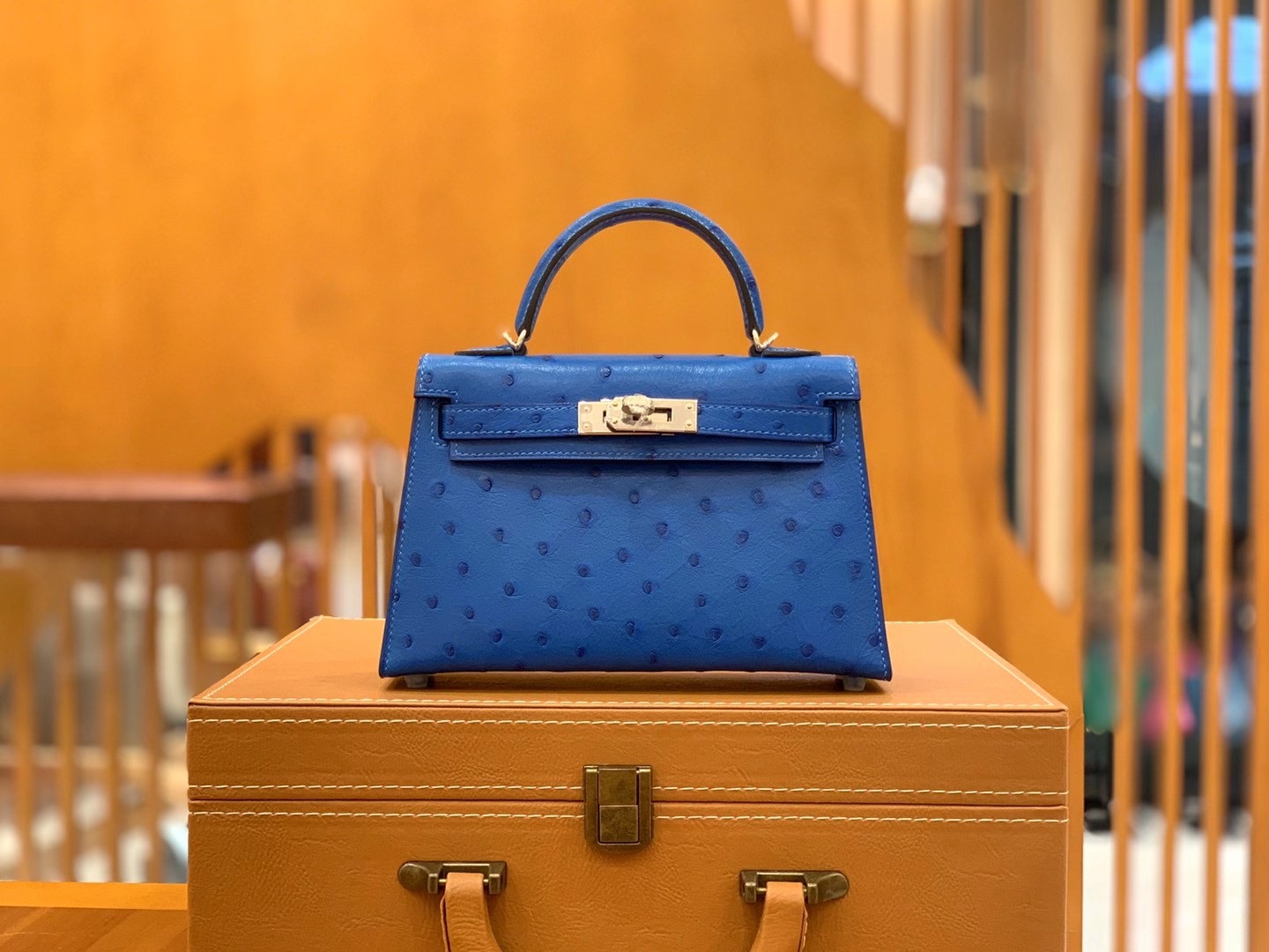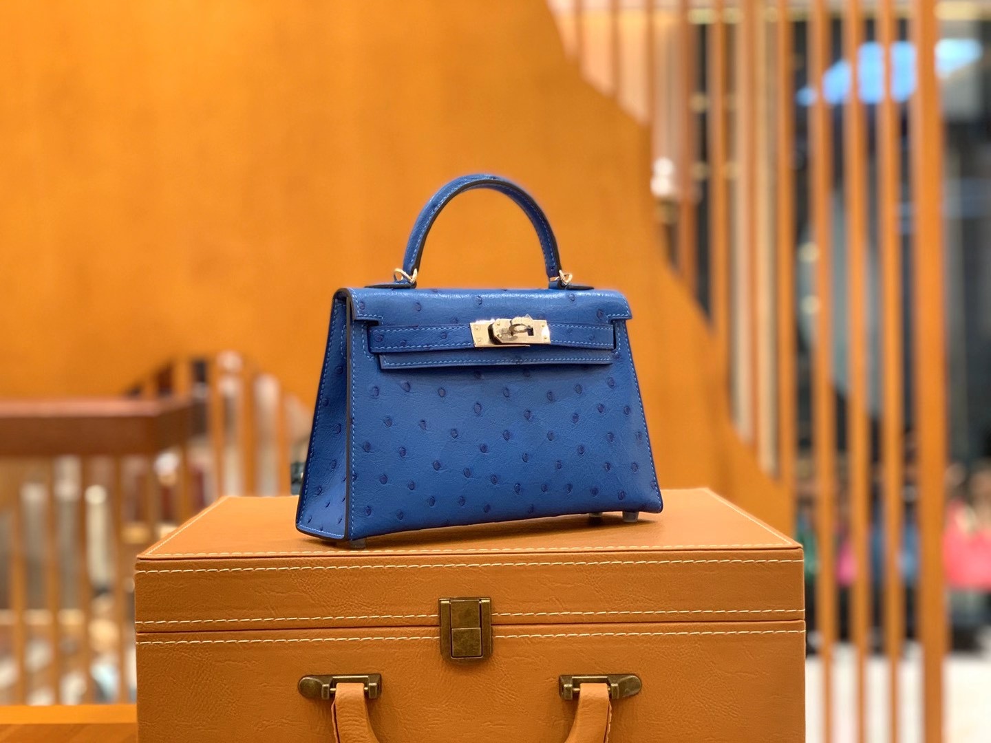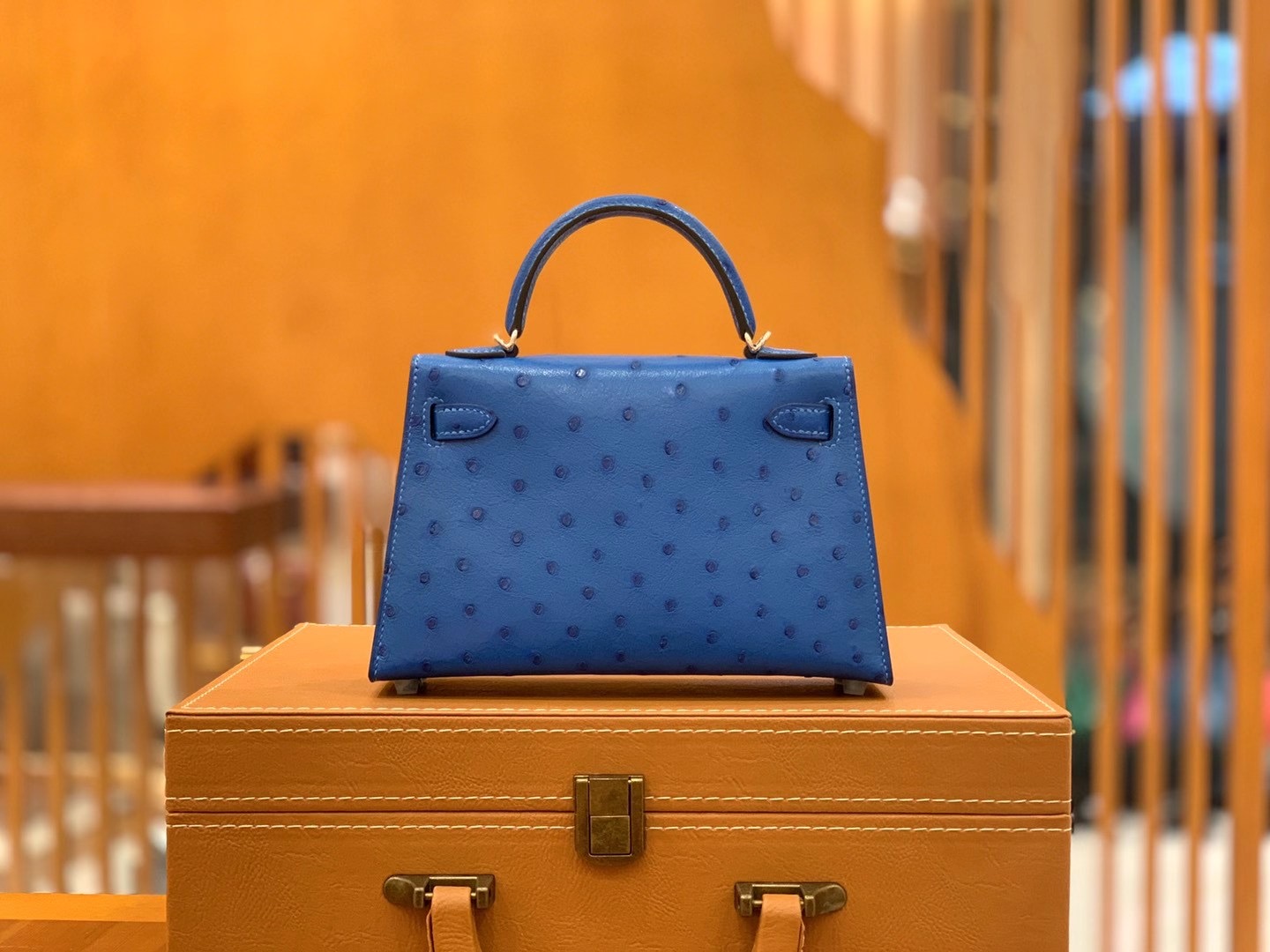 Mini Kelly second generation 19cm Water blueImported South African KK grade ostrich leather. All hand-sewn