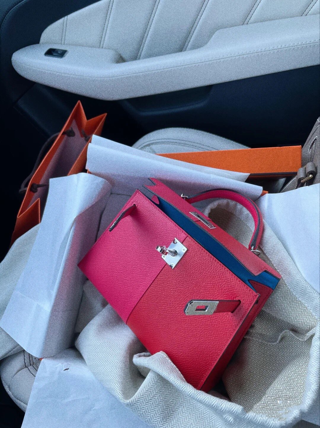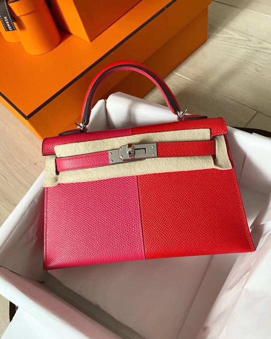 Mini Kelly Casaque Epson in Rose Extreme&Rouge de Coeur&Bleu Zanzibar
