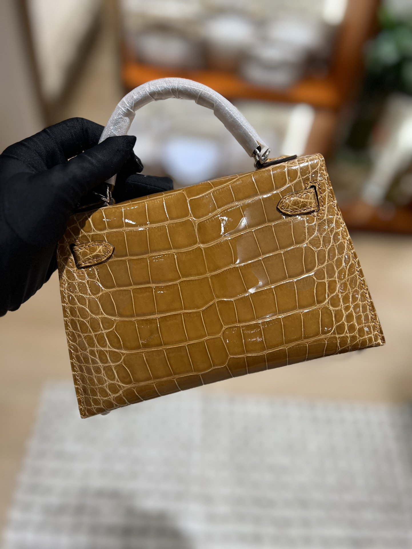 Mini Kelly in Ficelle Shiny Alligator PHW