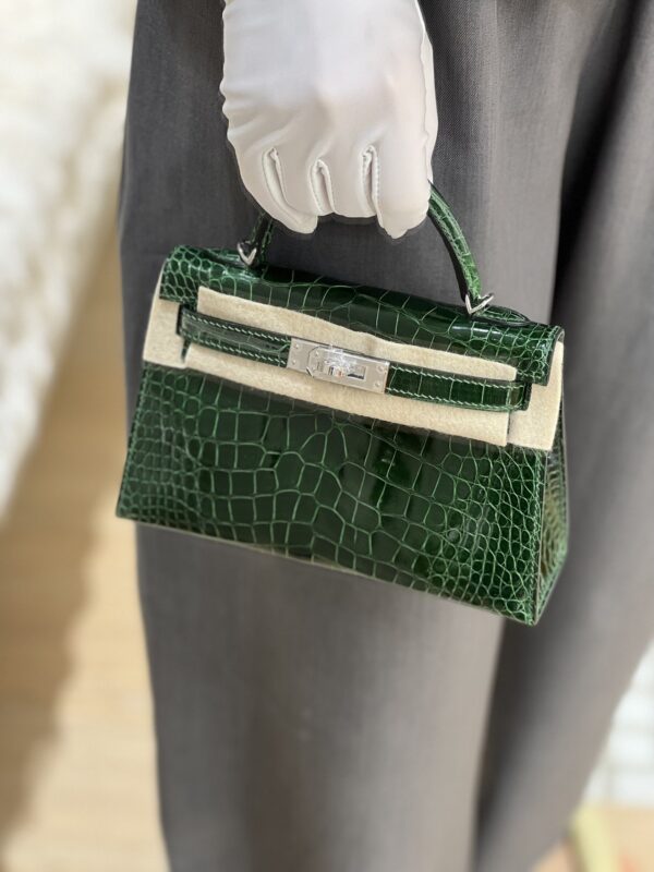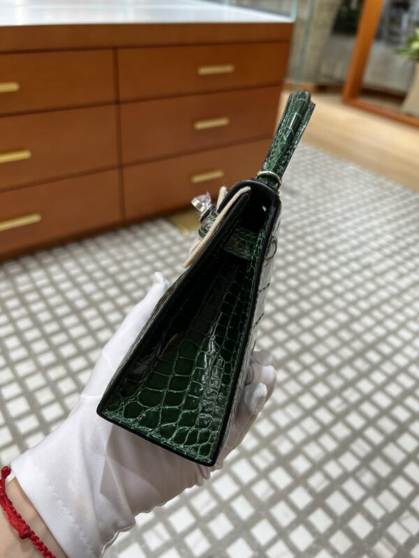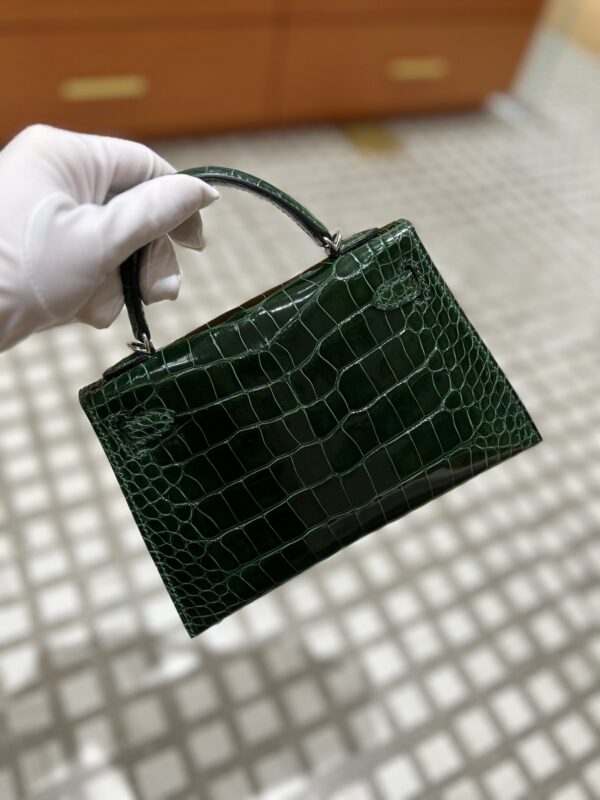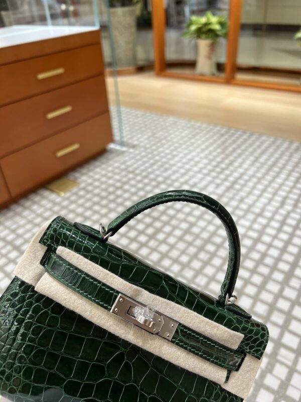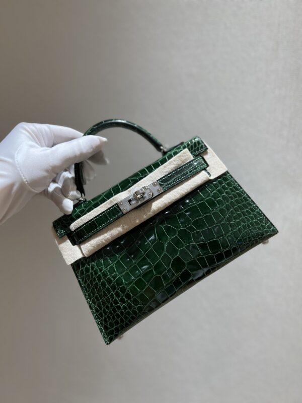 Mini Kelly Shiny Alligator Vert Fonce