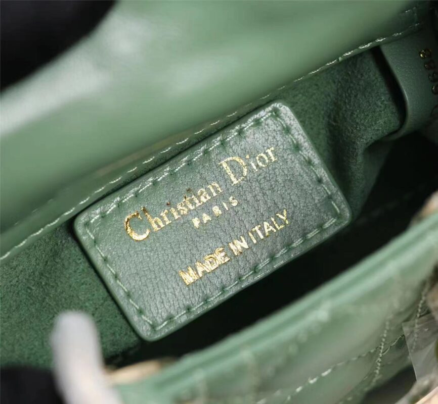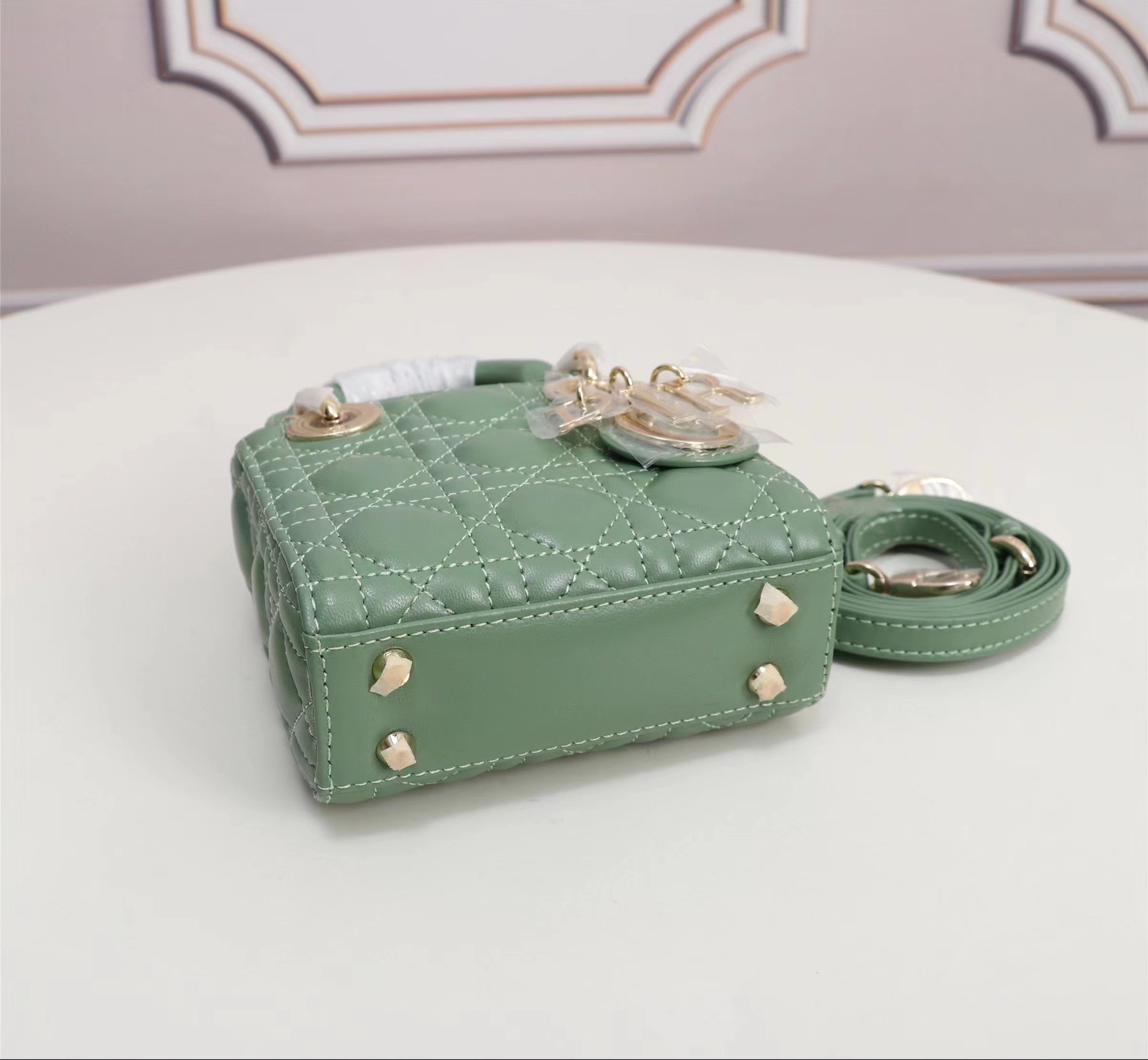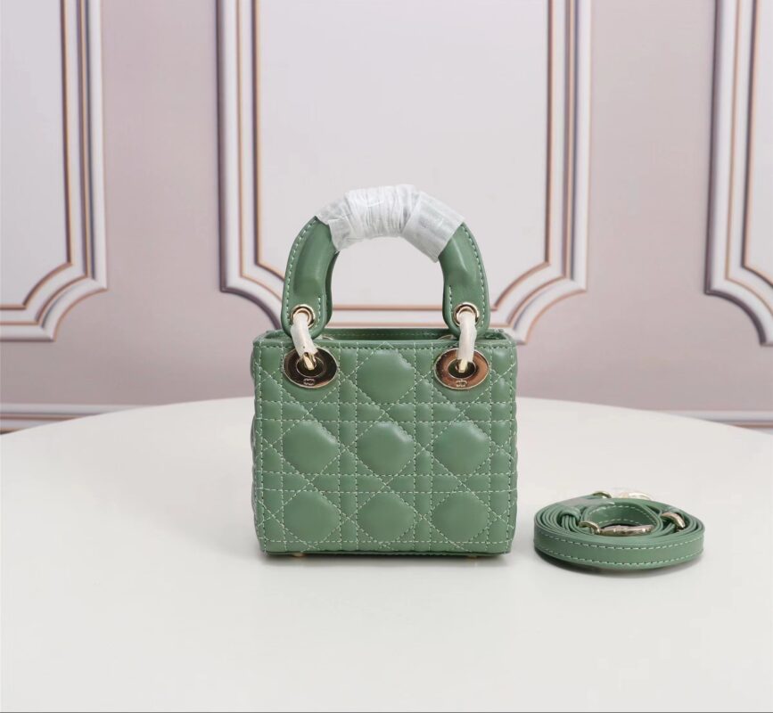 Dior top imported original sheepskin mini Diana bag lipstick bag. Mini LadyDior handbag sheepskin details color: Fruit Green 12 x10 x5 cm Flip top closure Adjustable leather shoulder strapModel: M49P