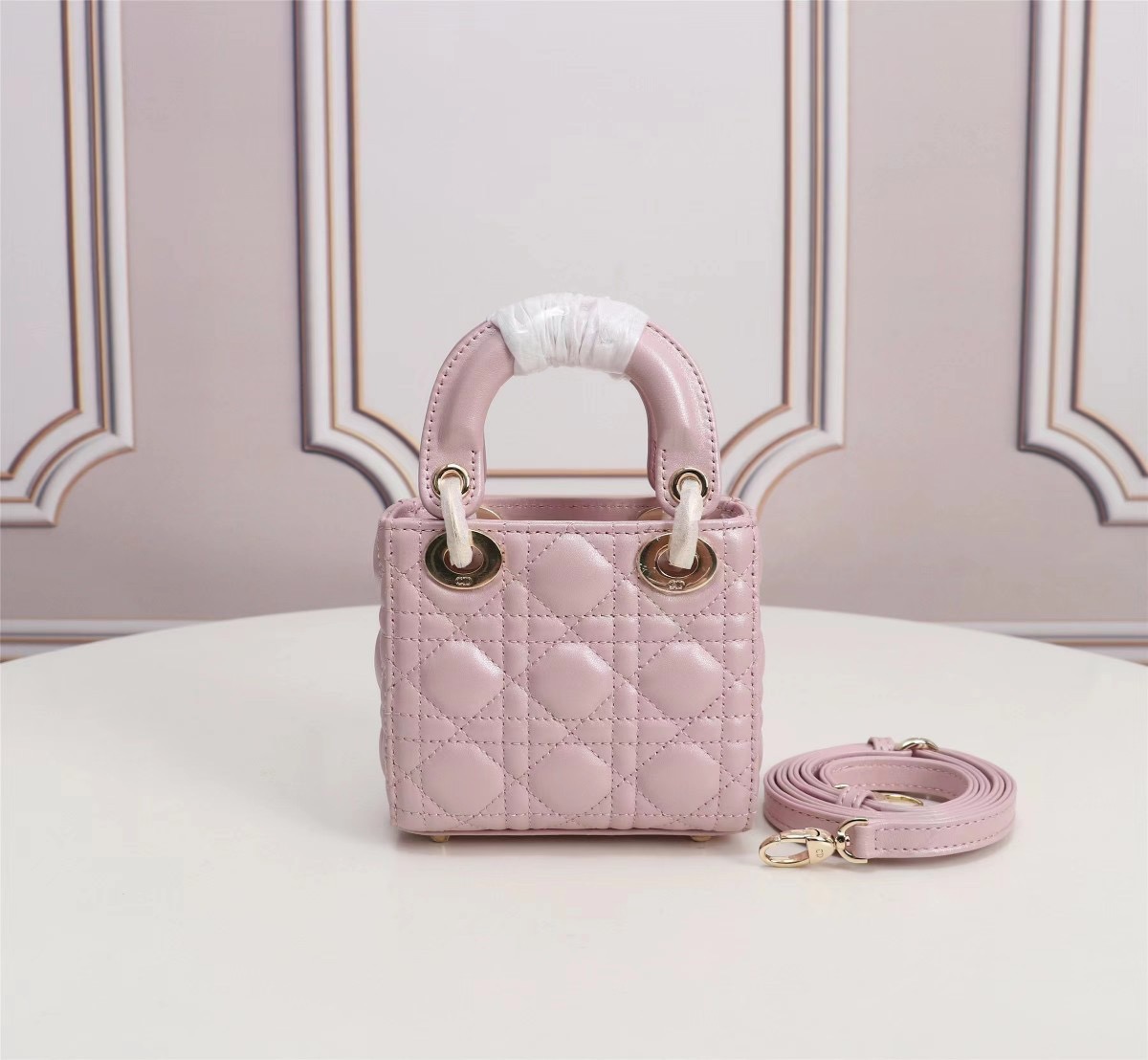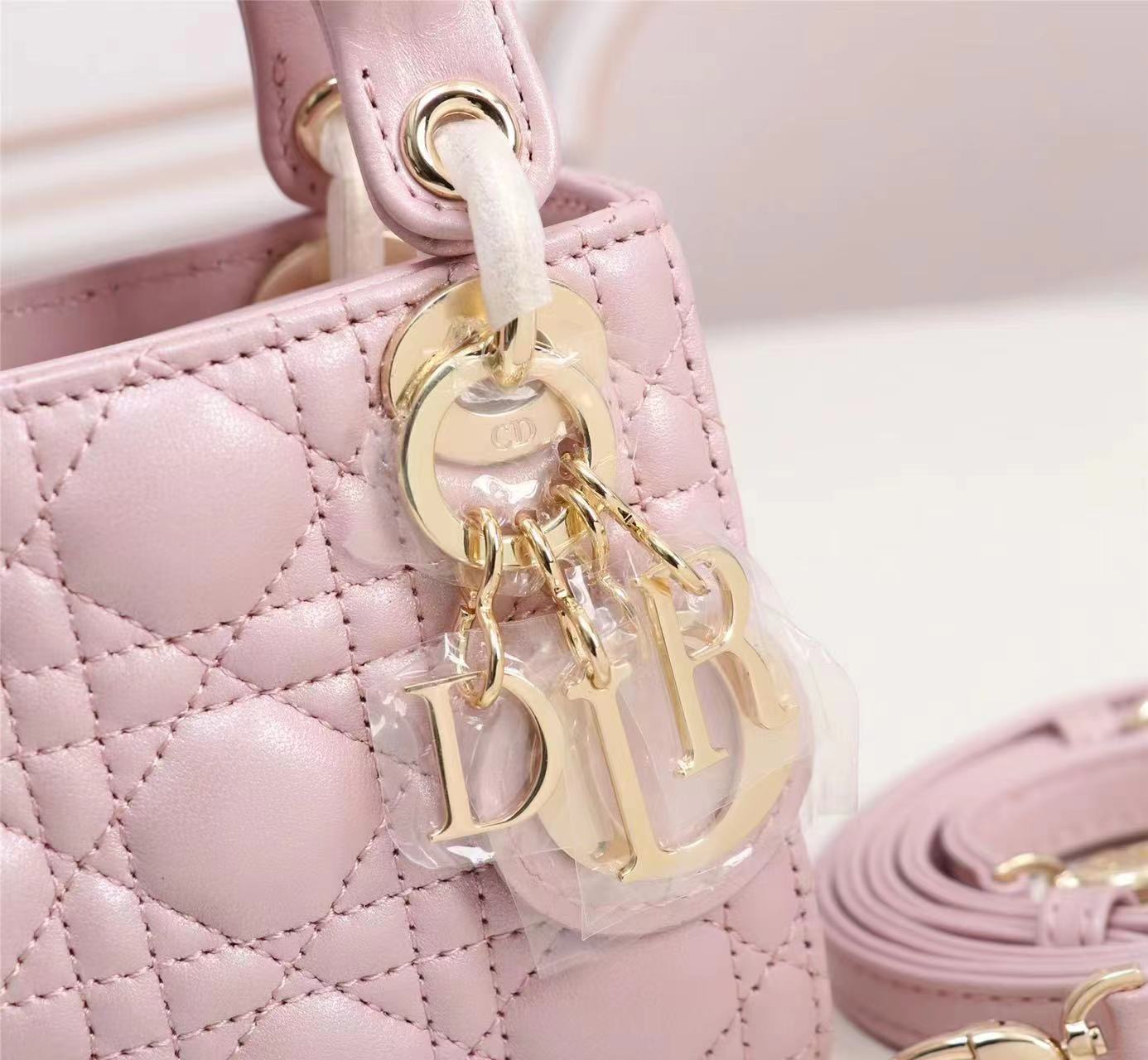 Dior top imported original sheepskin mini Diana bag lipstick bag. Mini LadyDior handbag sheepskin details color: Light Pink 12 x10 x5 cm Flip top closure Adjustable leather shoulder strapModel: M49P