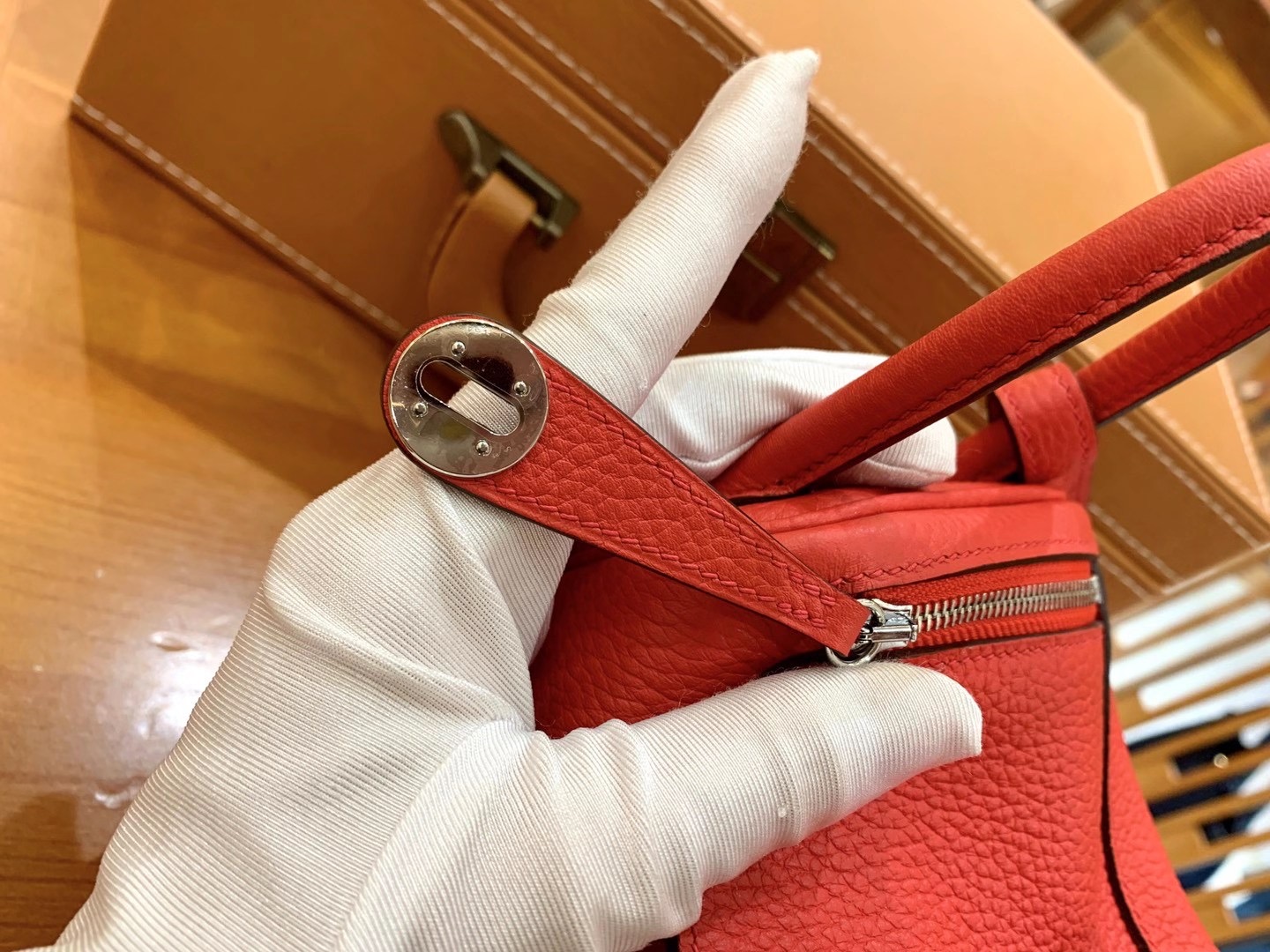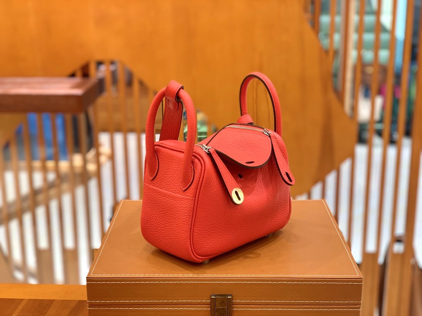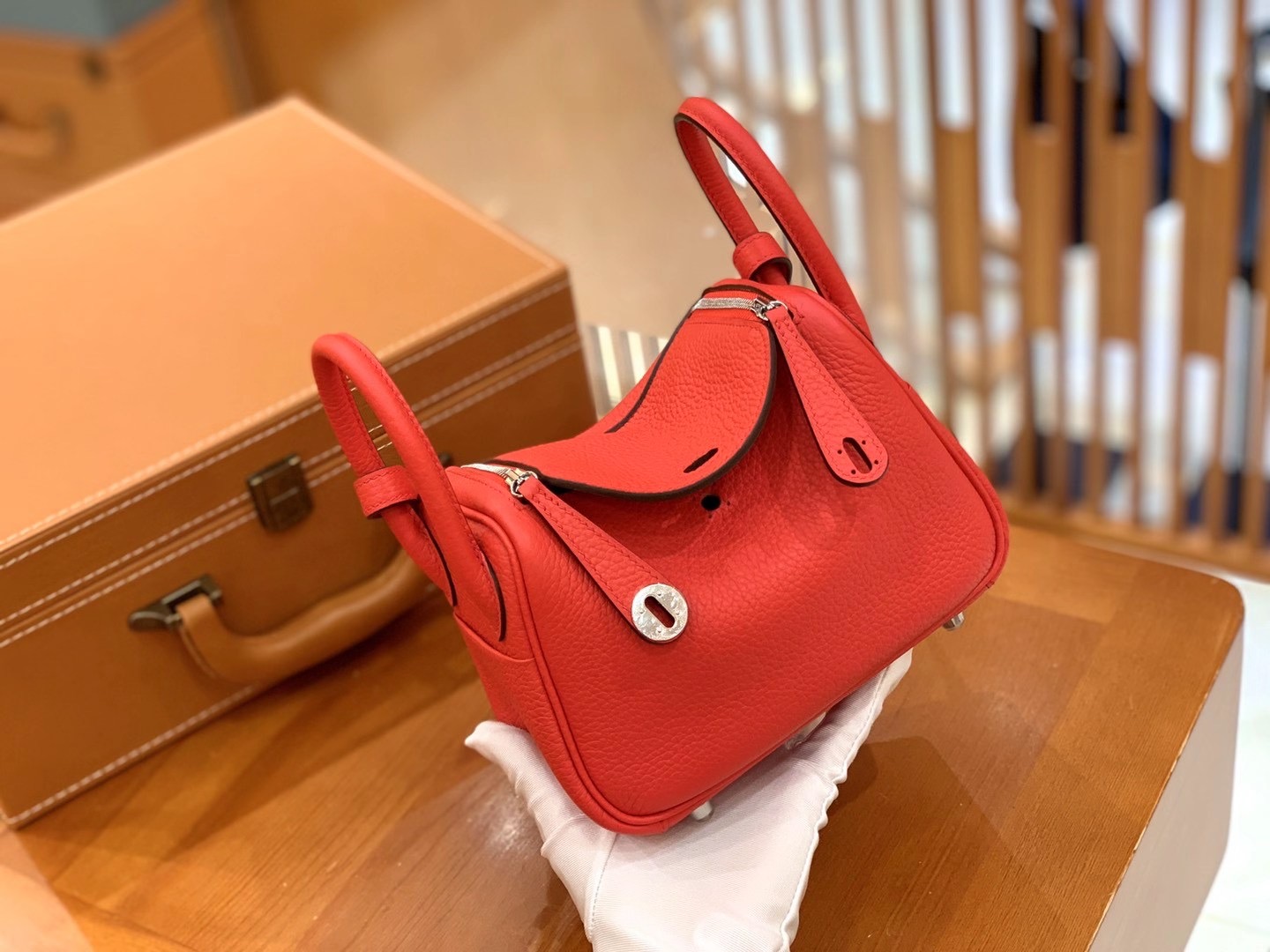 Mini Lindy 18cm Flag Red Imported TC cowhide. Fully hand-sewn