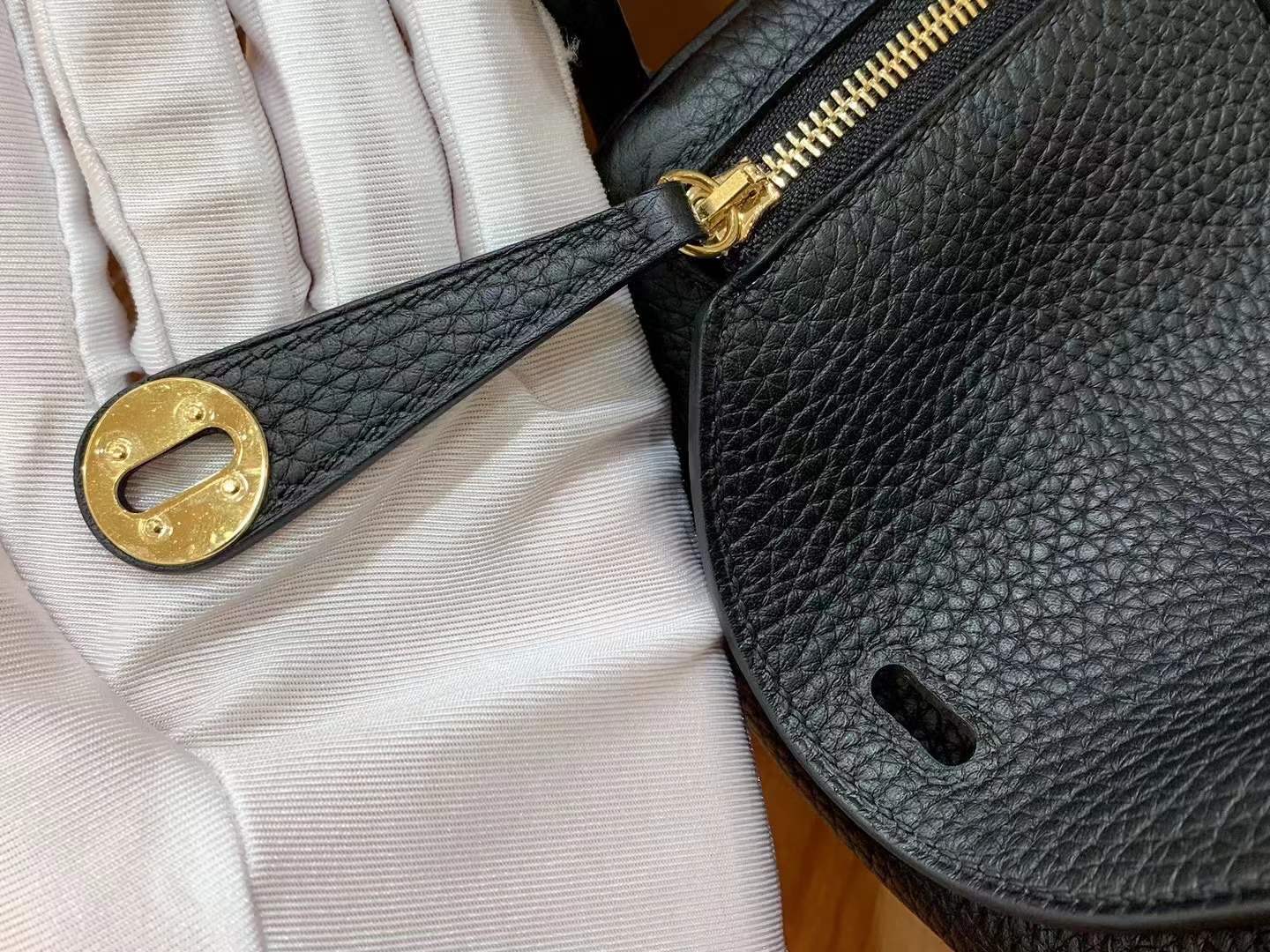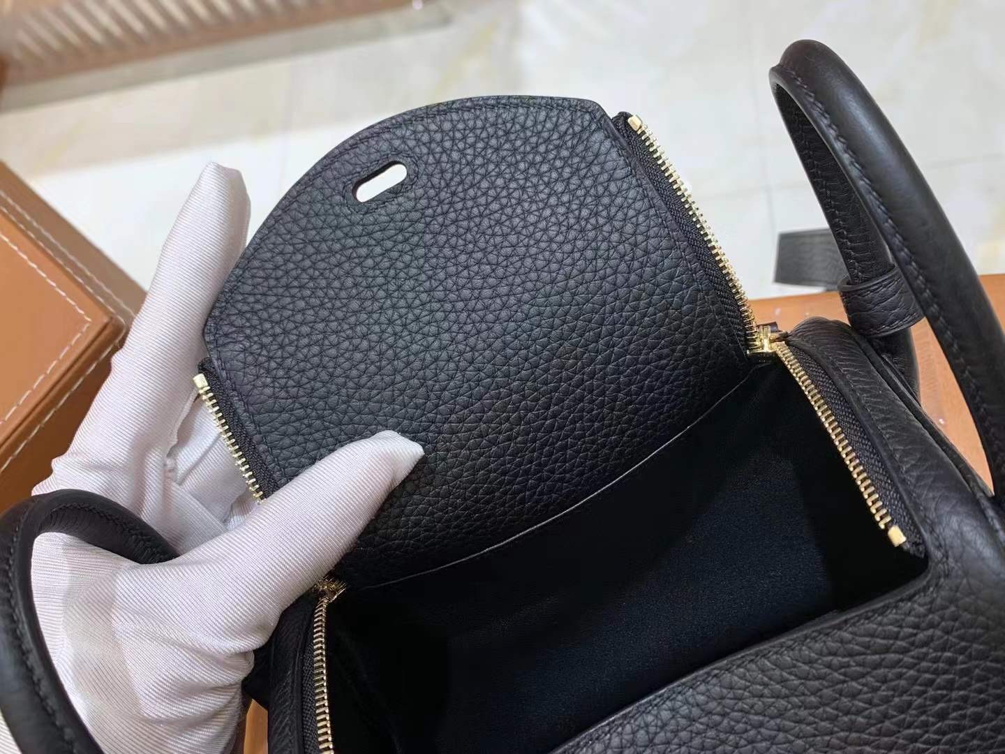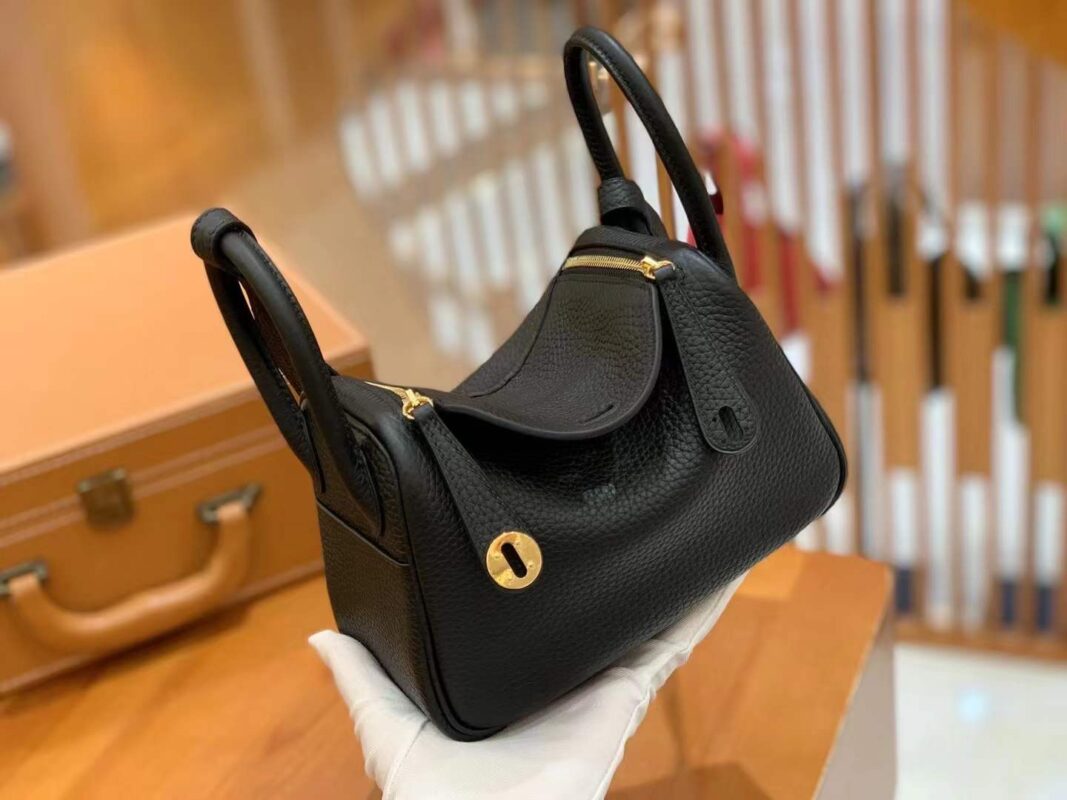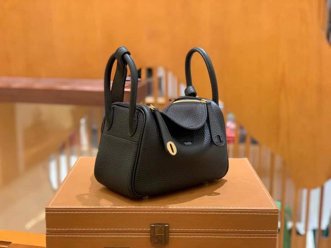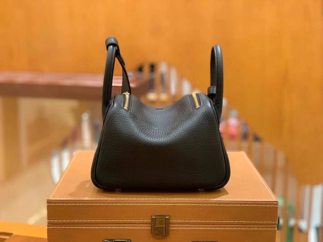Mini Lindy 18cm Black Gold Imported TC cowhide. Fully hand-sewn