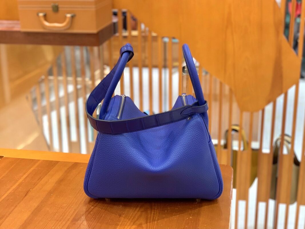 Lindy 26cm Imported swift and crocodile leather. Hand-stitched