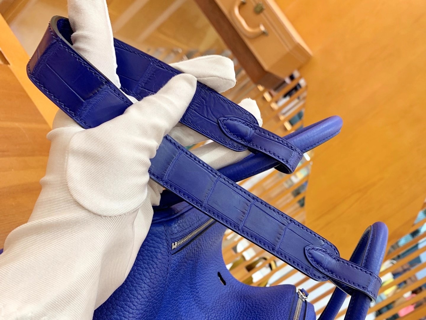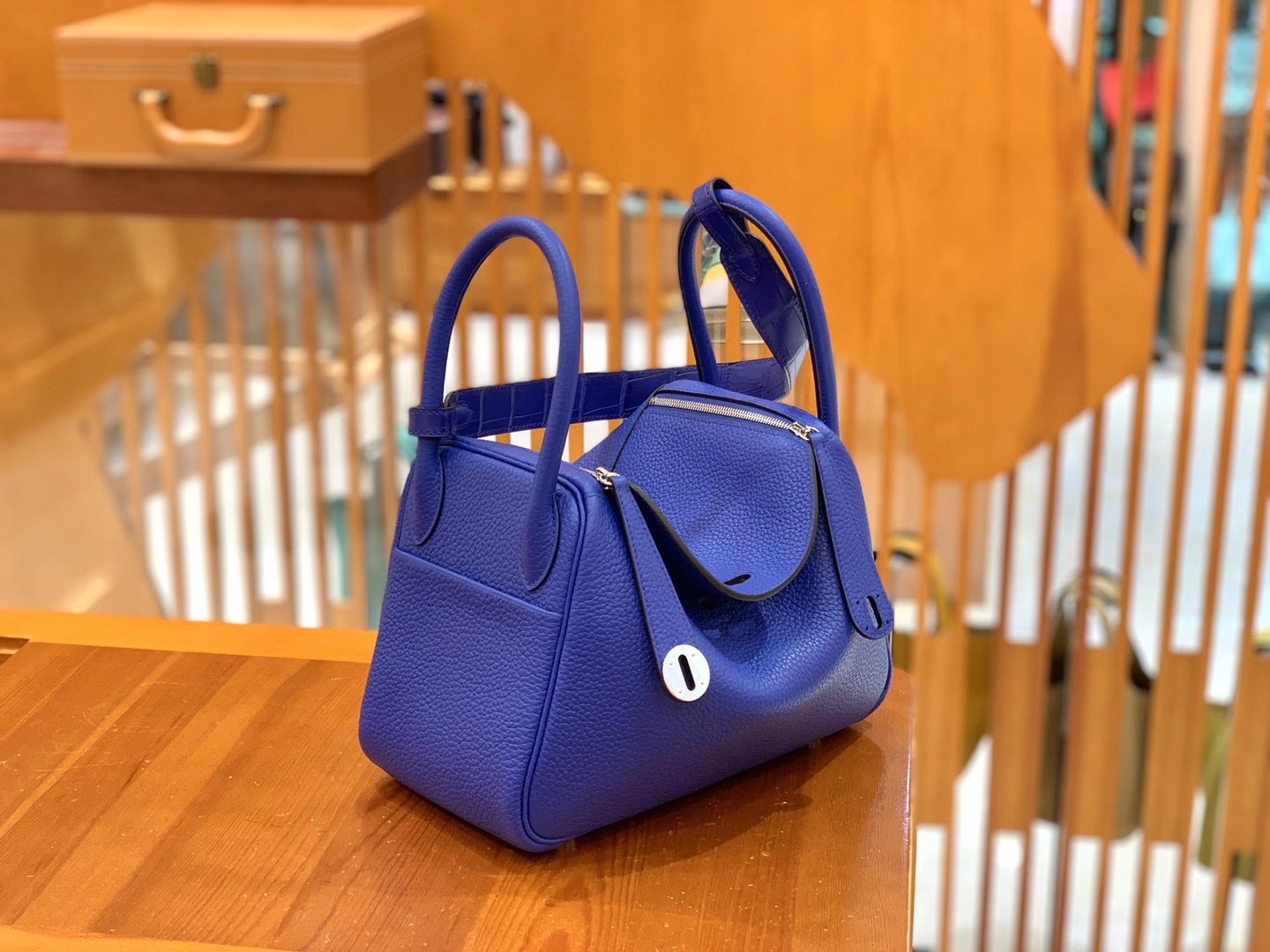 Lindy 26cm Imported swift and crocodile leather. Hand-stitched