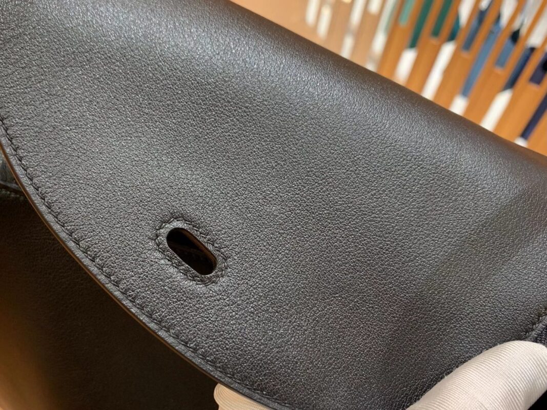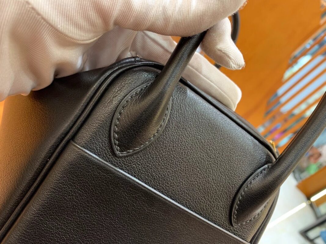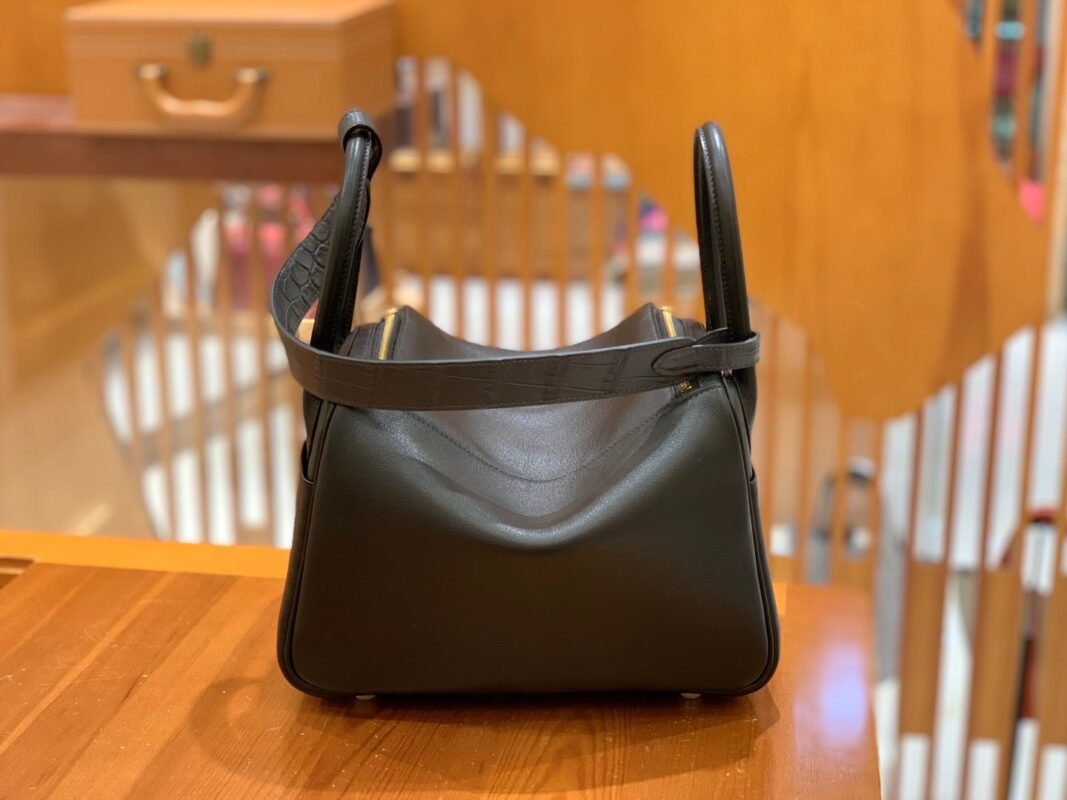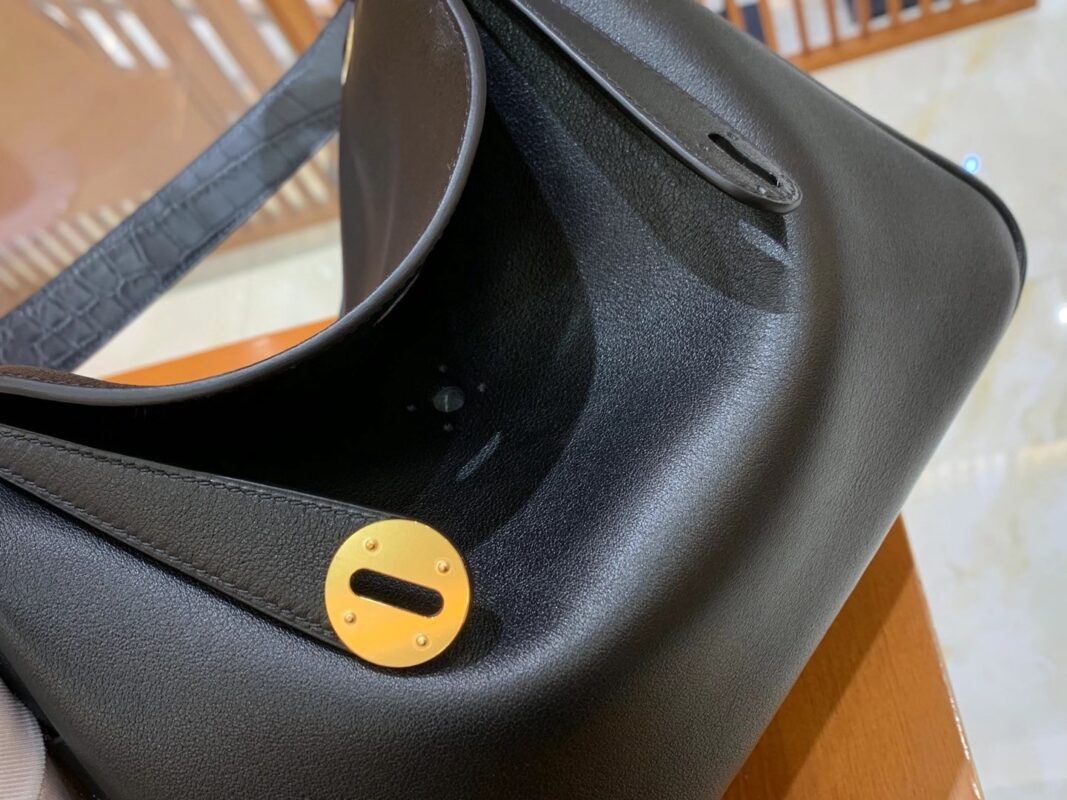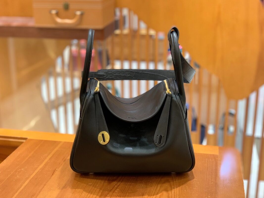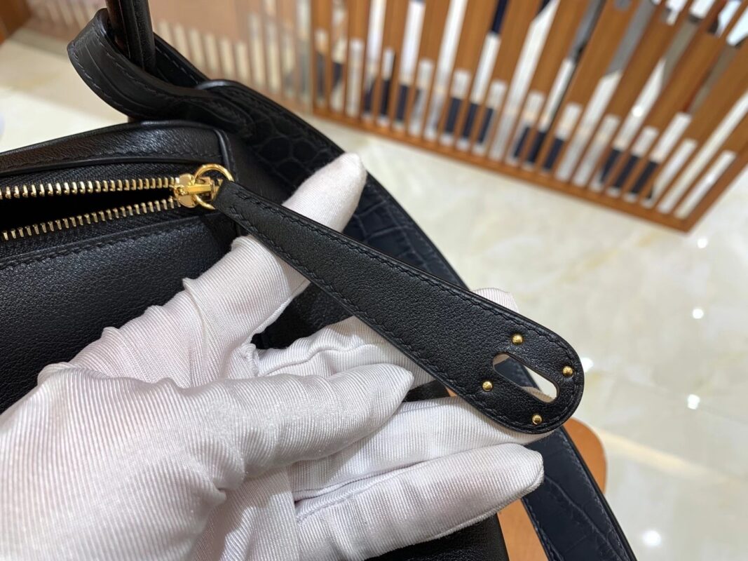 Lindy 26cm Black Imported swift and crocodile leather. Hand-stitched