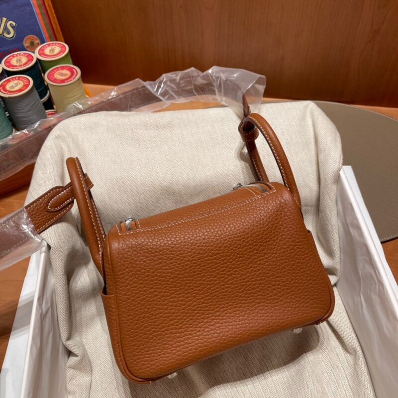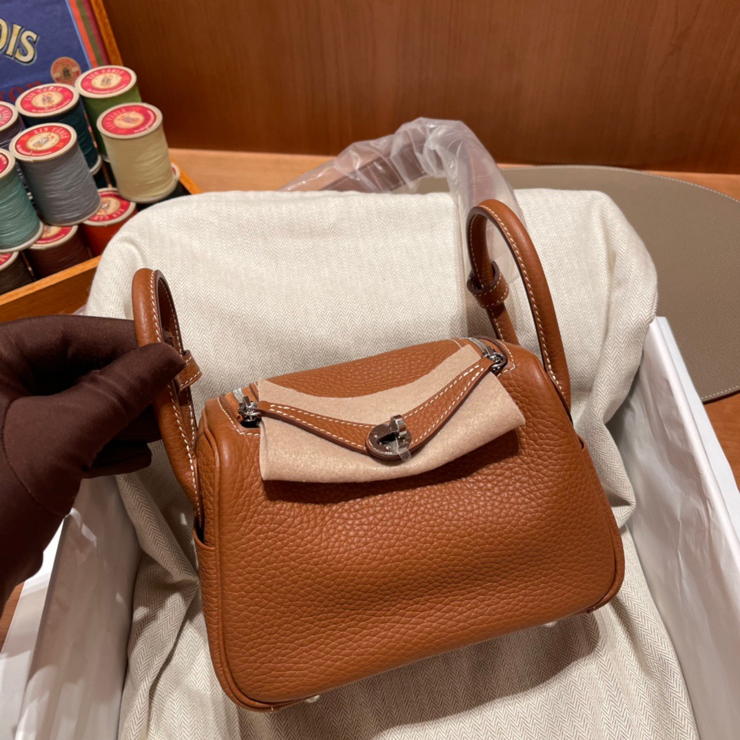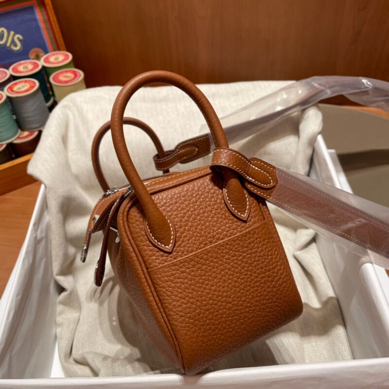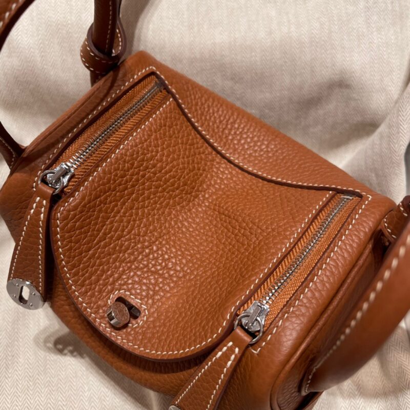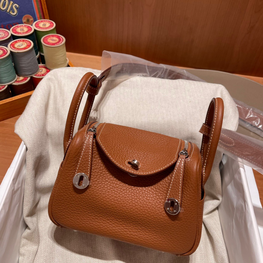 Mini Lindy Clemence leather. Heartthrob Cutie.37 Golden Brown. Silver Buckle