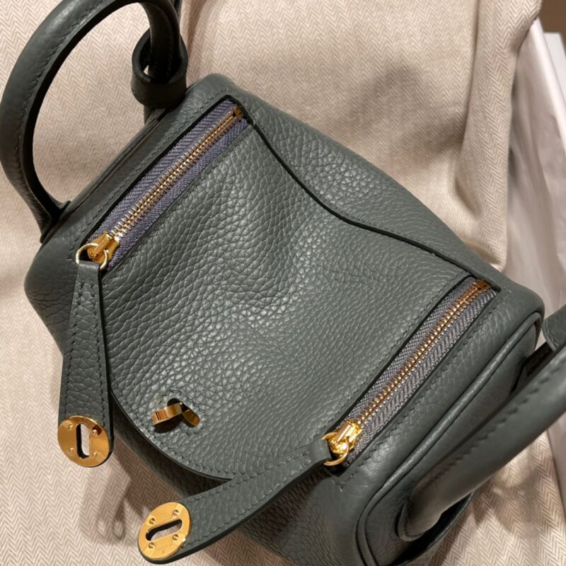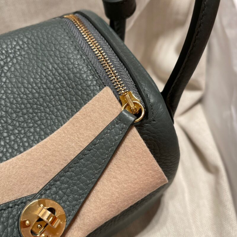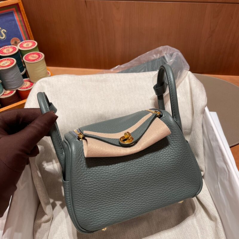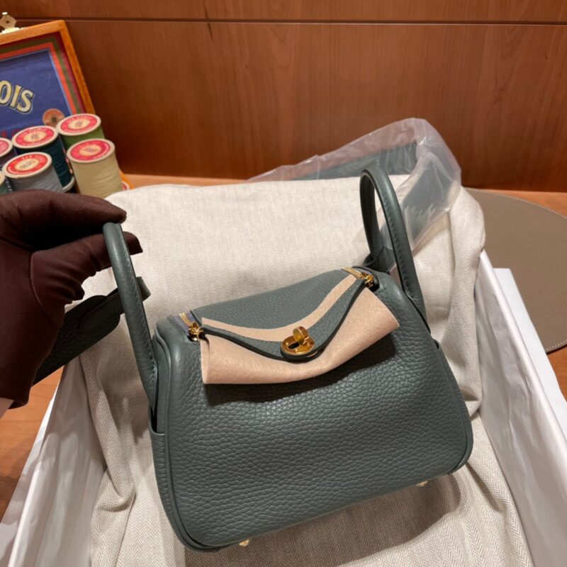 Mini Lindy Clemence leather. Heartthrob Cutie. 63 Apricot Green (Vert Amande).