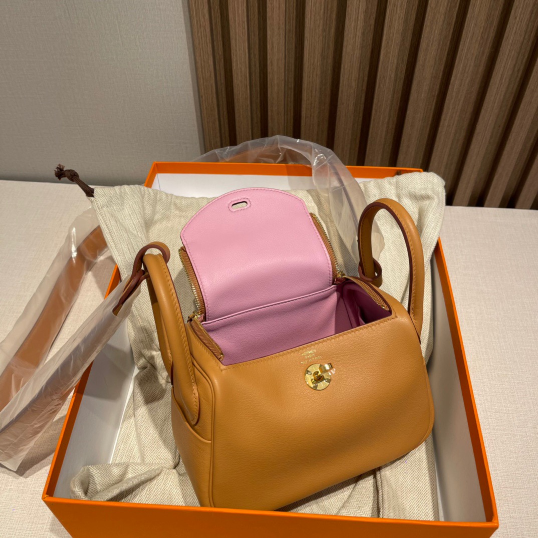 Mini Lindy Swift leather. 4B Biscuit color (Biscuit) with X9 Mallow Purple.