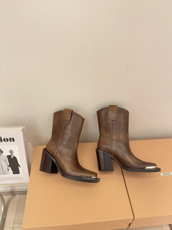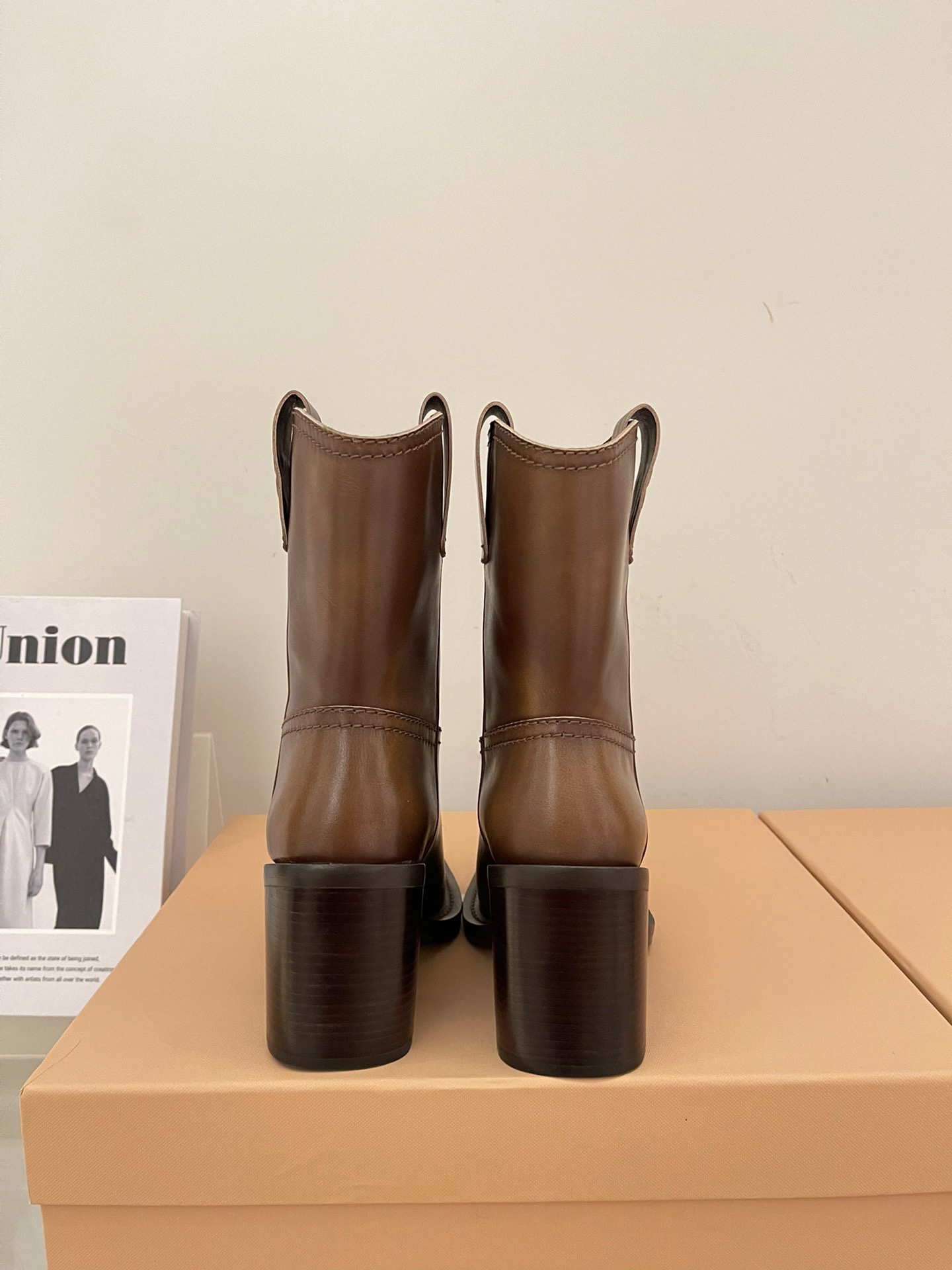 Miu Miu Square Toe Retro High-heeled Knight Boots