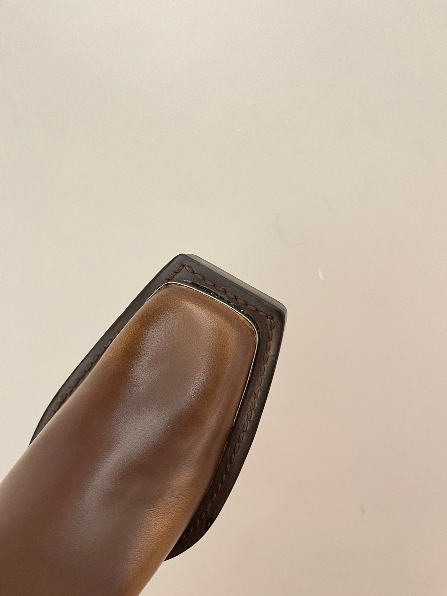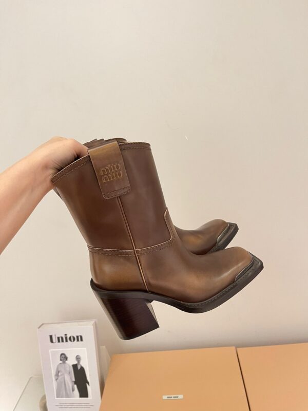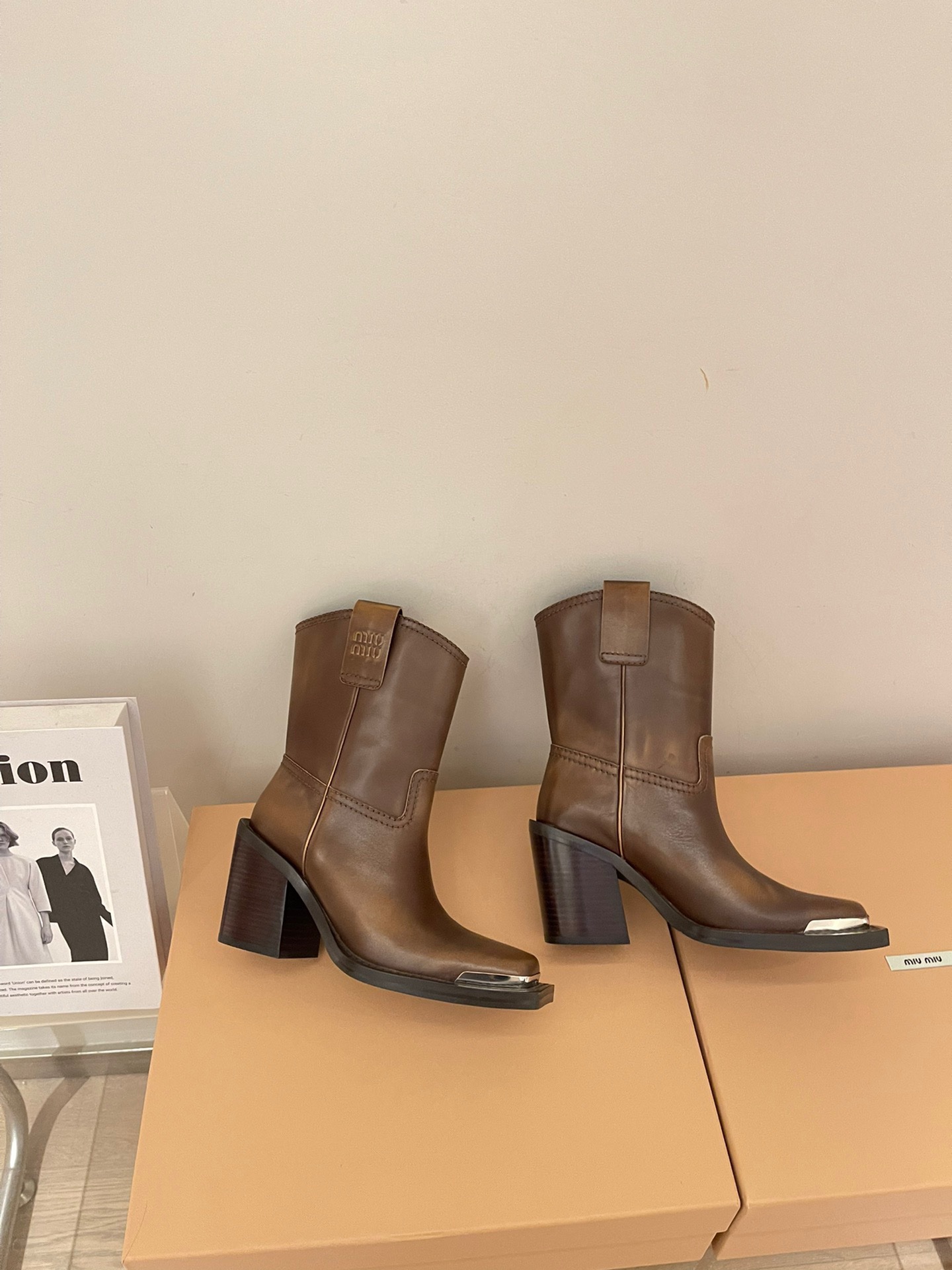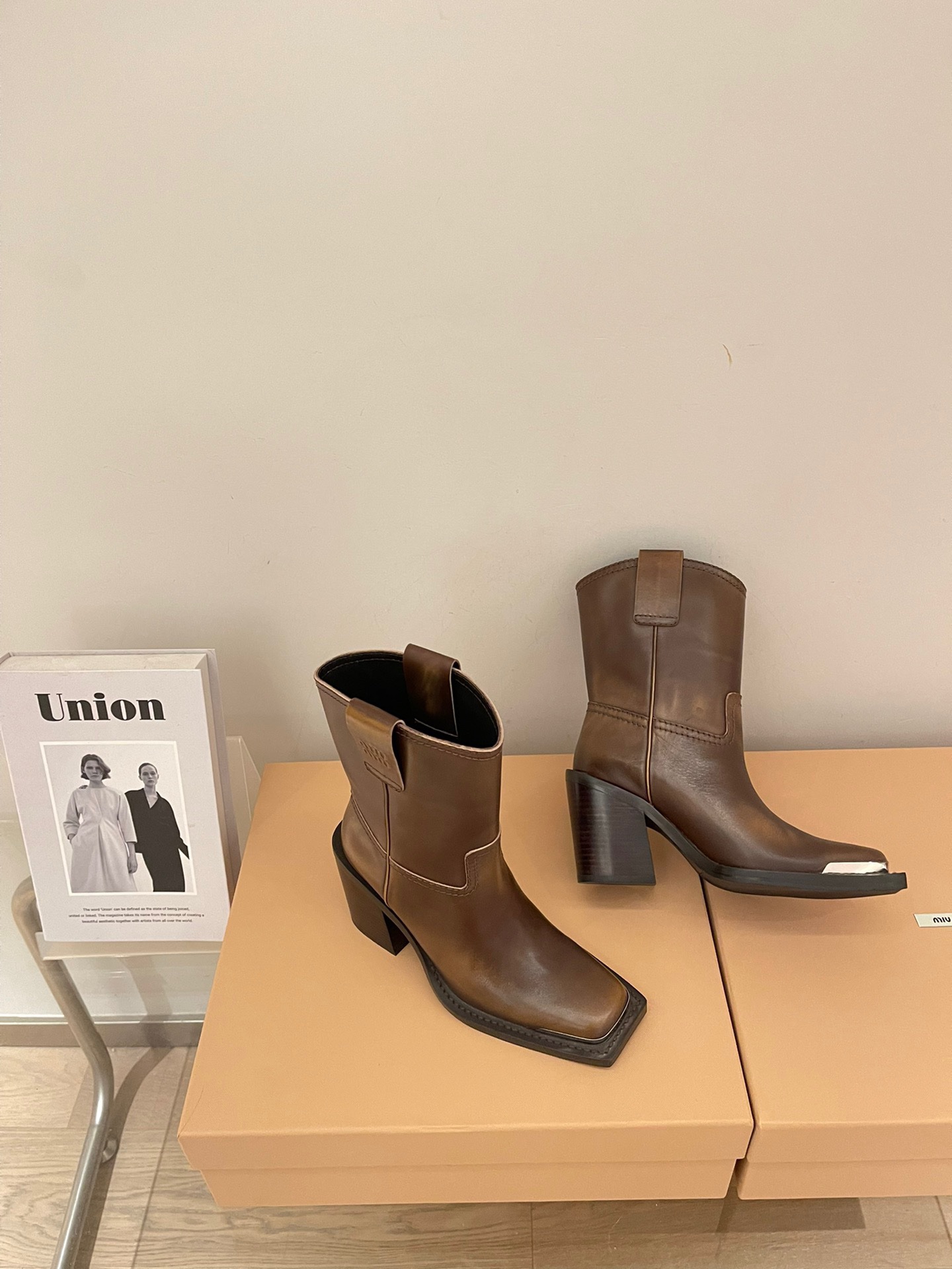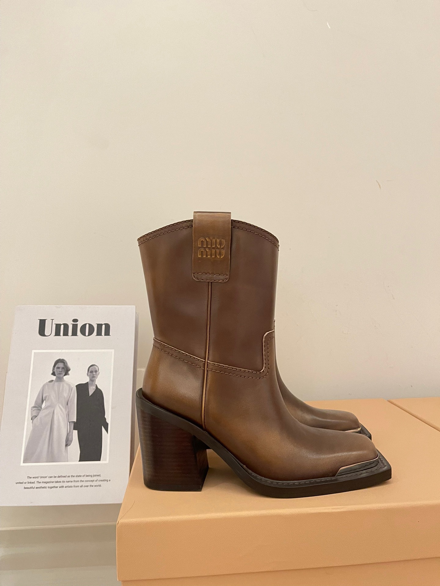 Miu Miu 2023 Square Toe Retro High-heeled Knight Boots