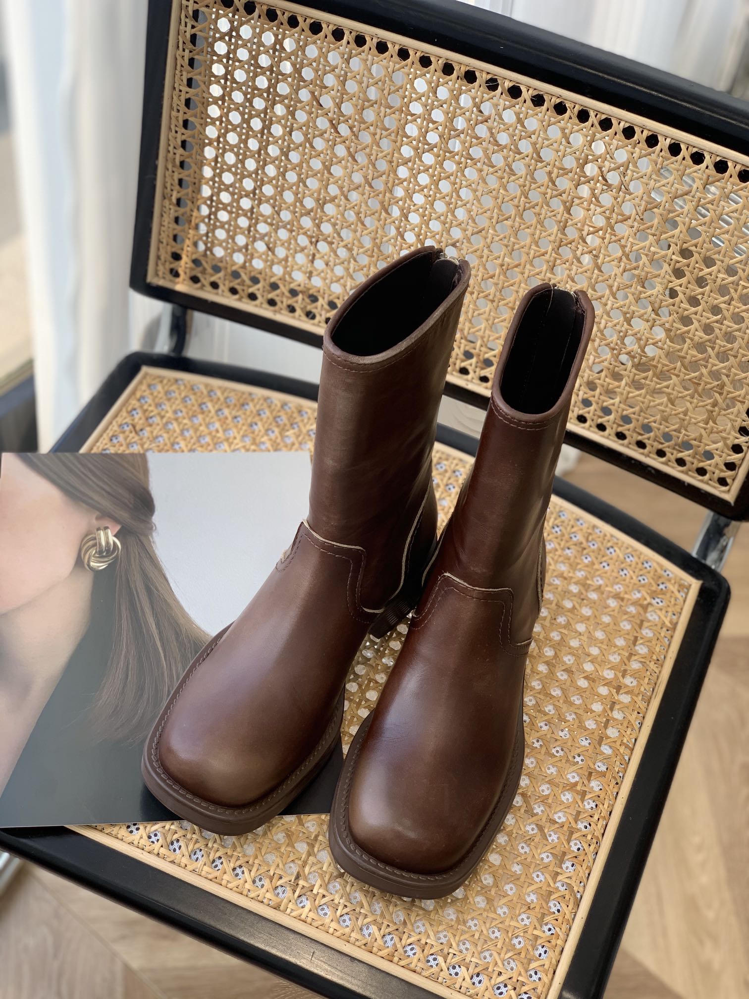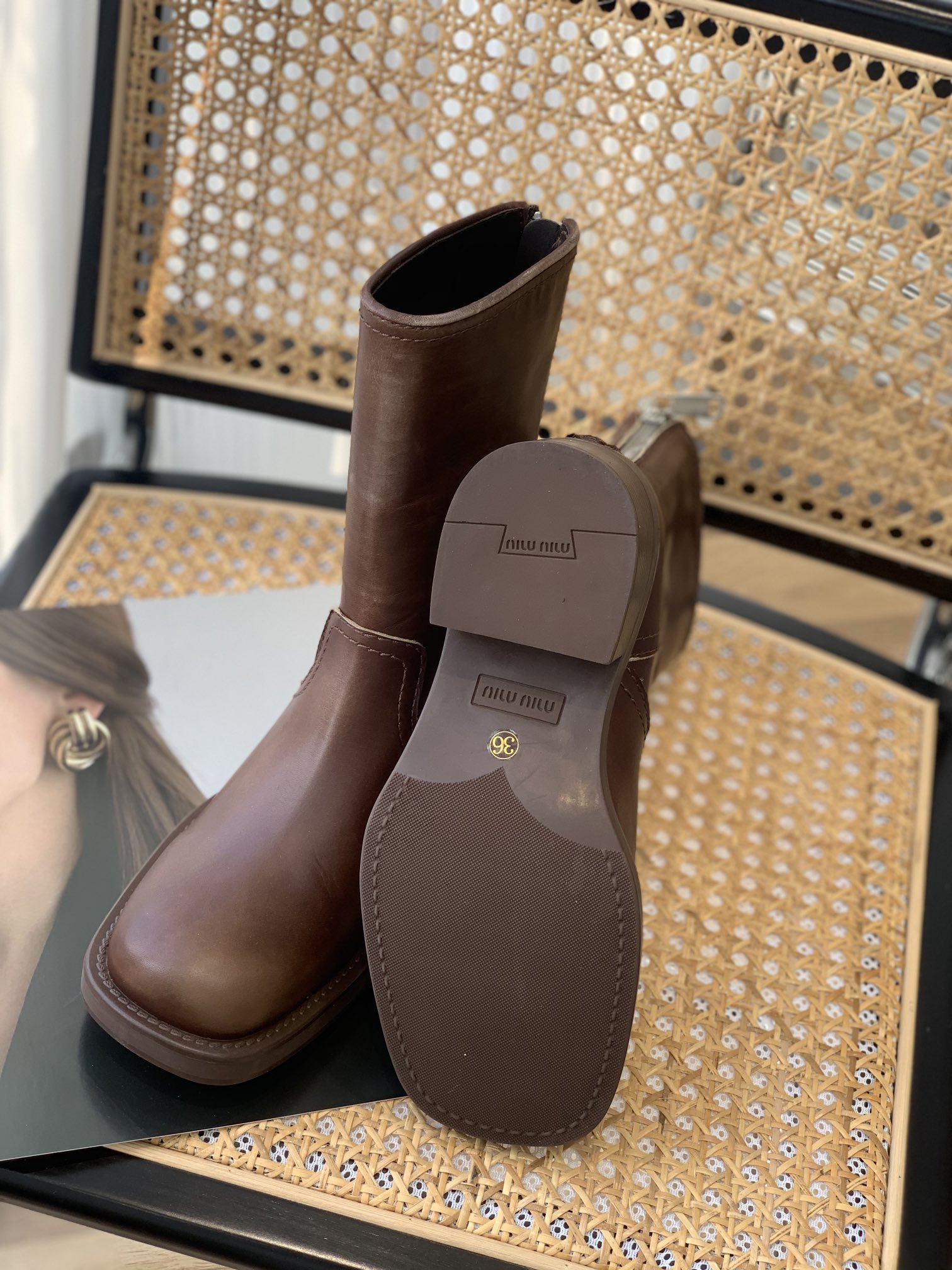 MiuMiu autumn and winter new flat boots 👏 High-definition style, the upper is a whole piece of waxed calfskin~ The texture is full, and the legs are long Size: 35-39 40 set