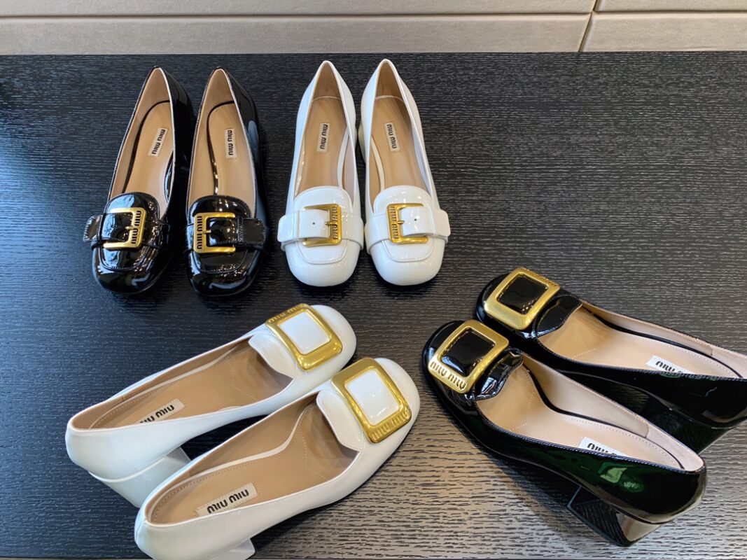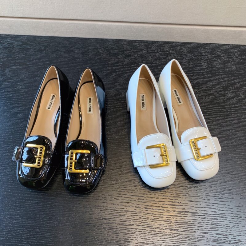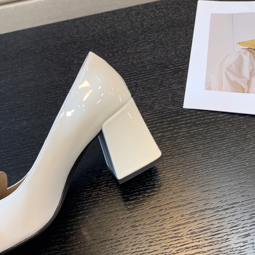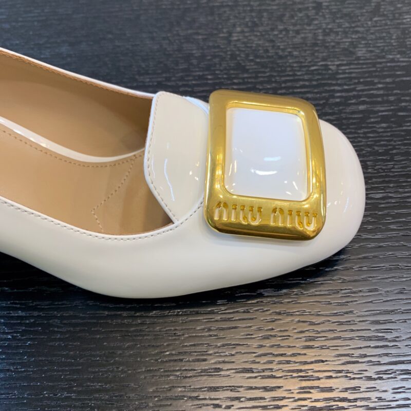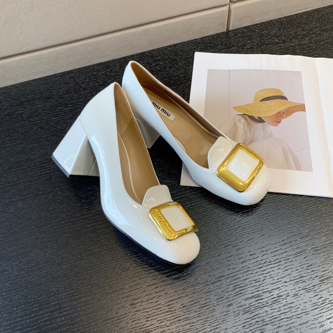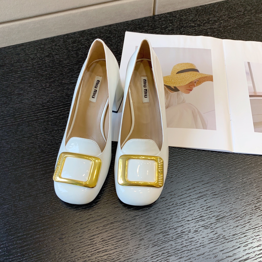 MiuMiu early autumn new high heels Gold buckle looks good Miu Miu girls camp Heel height 4.5cm 7cm Upper Patent leather Stepping Sheepskin Italian leather outsoleSizes: 34-40 (34 40 customized non-refundable)