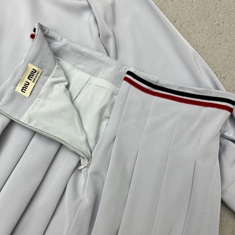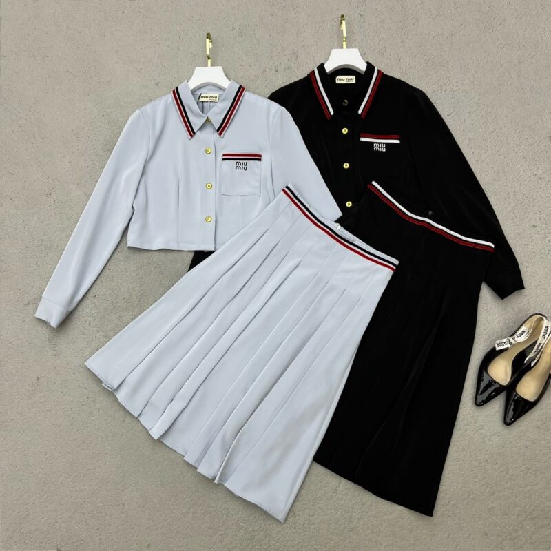 MiuMi*/23SS early autumn new shirt with pleated skirt suit/color ribbon splicing decoration/fashionable atmosphere/two colors and three sizes SML P540