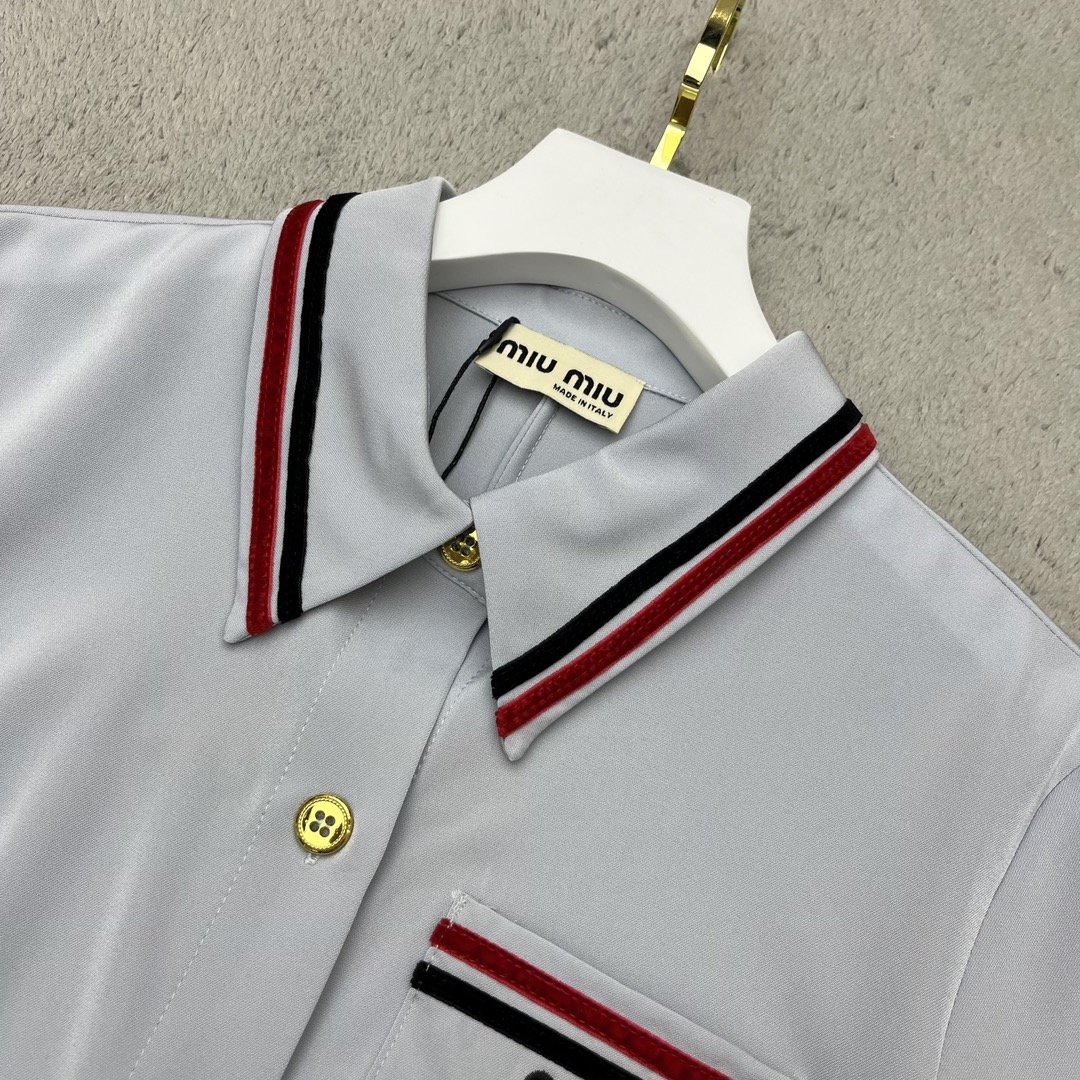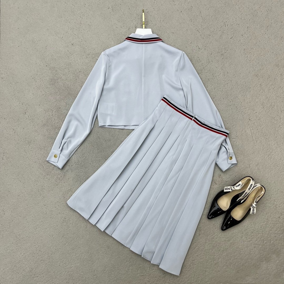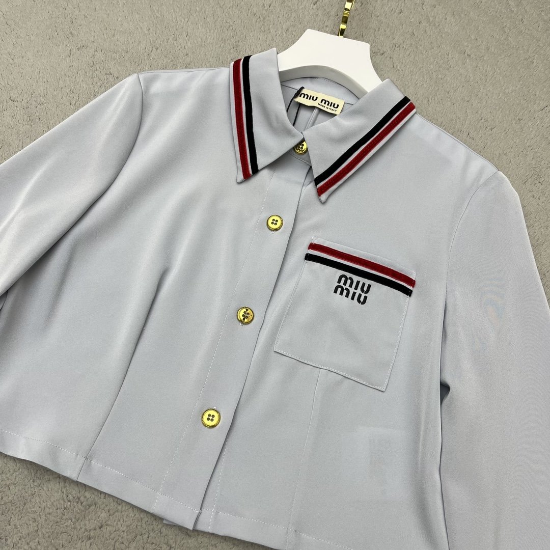 MiuMi*/23SS early autumn new shirt with pleated skirt suit/color ribbon splicing decoration/fashionable atmosphere/two colors and three sizes SML P540