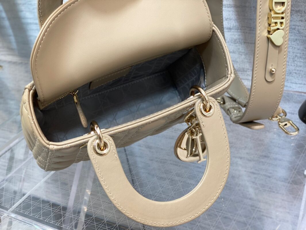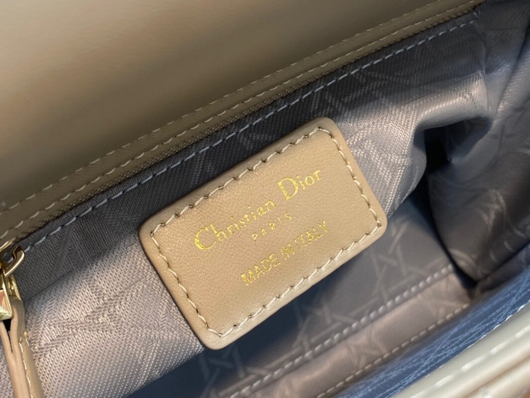 My ABCDior Four-grid Bag in Apricot Lambskin cannage with personalizable wide shoulder strap, 6 badges included, light gold metal hardware, wide personalizable shoulder strap, embellished with Dior emblem, can be carried by hand, shoulder or crossbody, dimensions 20 x 16.5 x 8cm