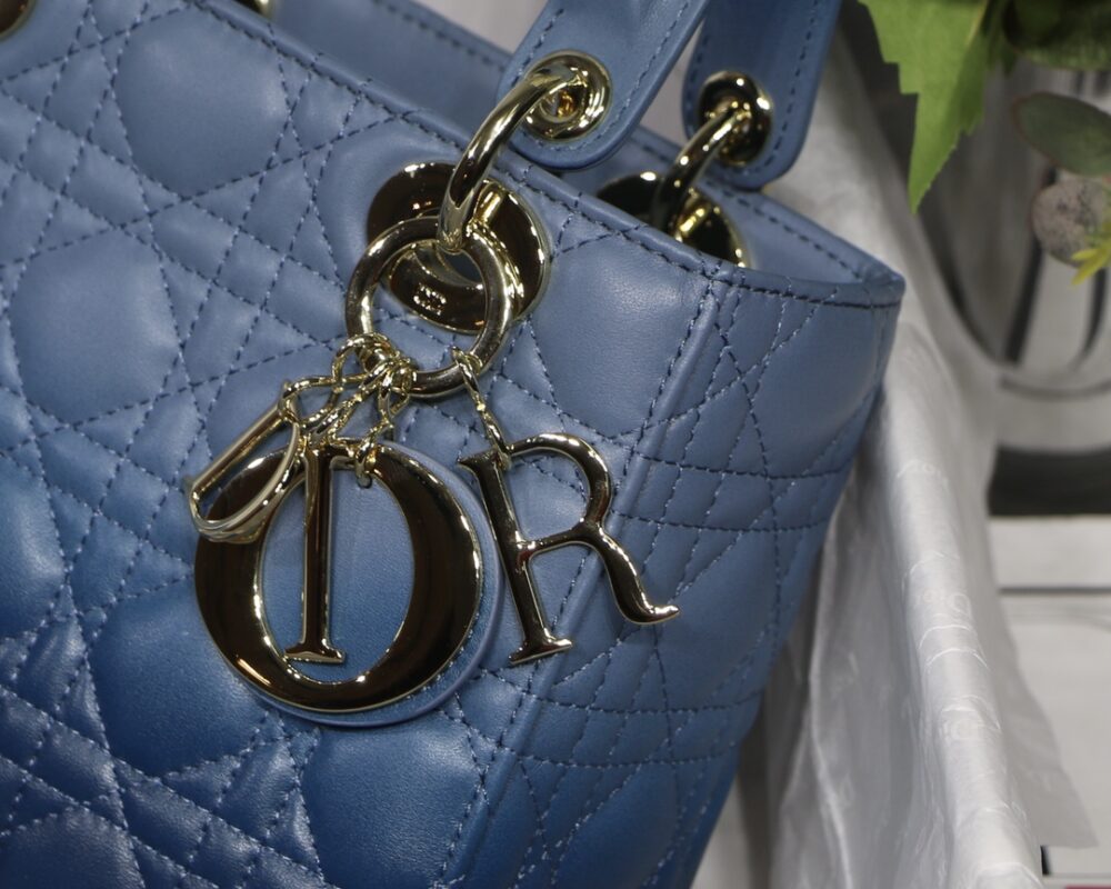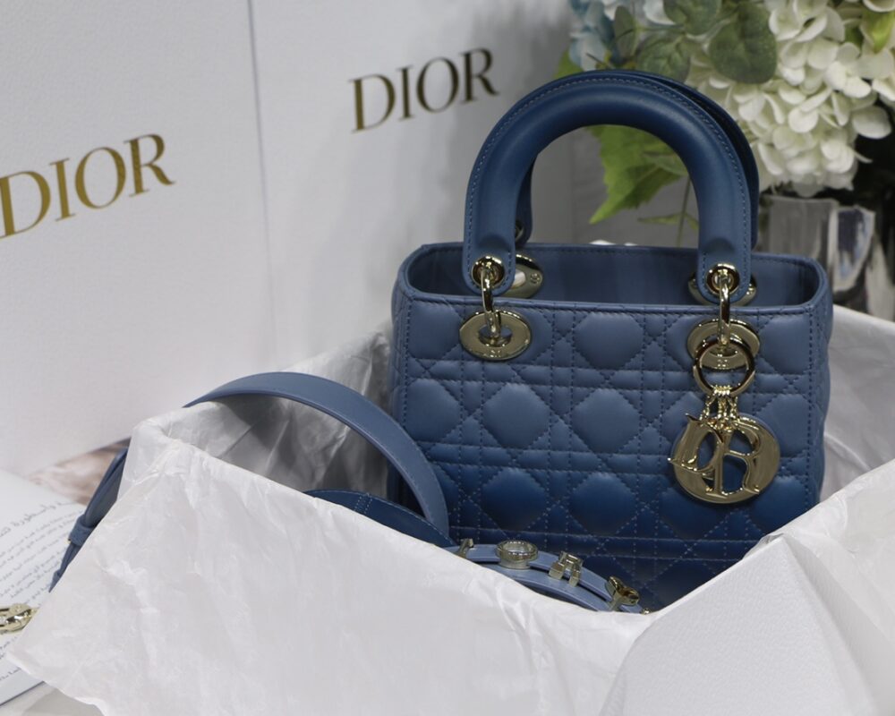 My ABCDior Gradient SeriesGradient Blue This bag epitomizes a profound insight into elegance and beauty. Crafted in this season’s new gradient-style sheepskin leather, decorated with cannage topstitching, with a gradient effect to enhance the style, embellished with light gold-finish metal charms, adding a touch of vitality to the exquisite silhouette. Unique in design, the shoulder strap can be embellished with a badge for personalization, and can be carried by hand, on the shoulder or cross-body. The perfect combination of practicality and beauty. Size: 20cm