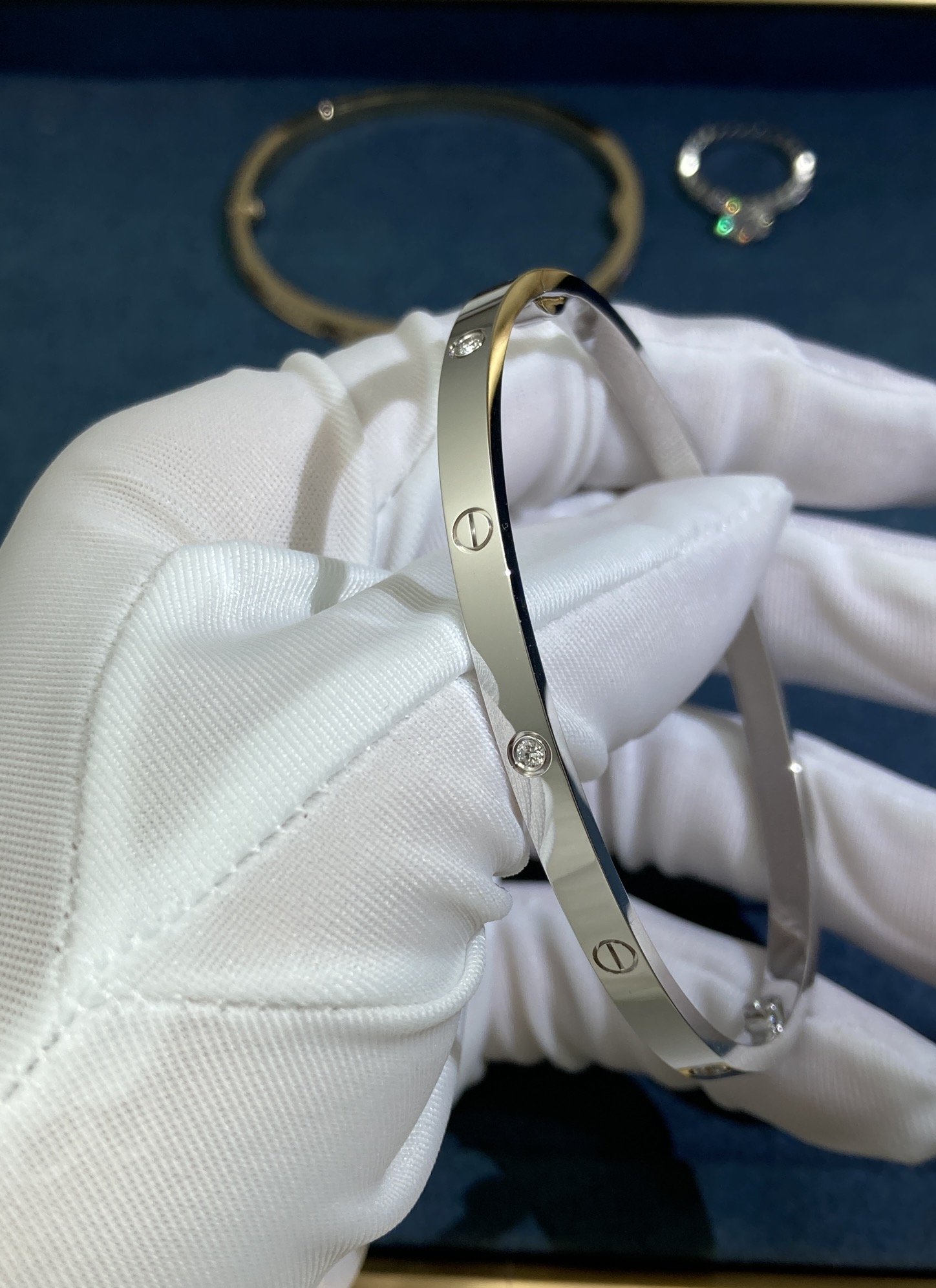 Cartier's Narrow Bracelet with Six Diamonds, White Gold