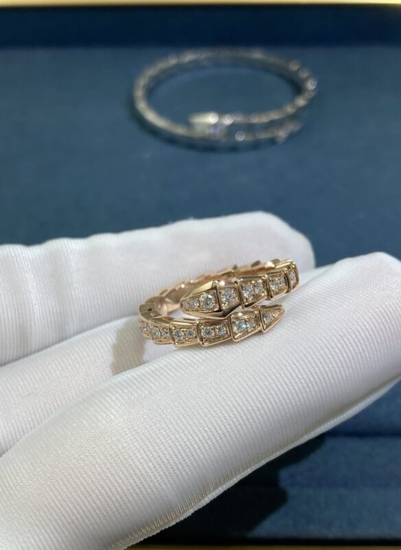 Bvlgary's Narrow Snake Ring All Over Diamonds, Rose Gold