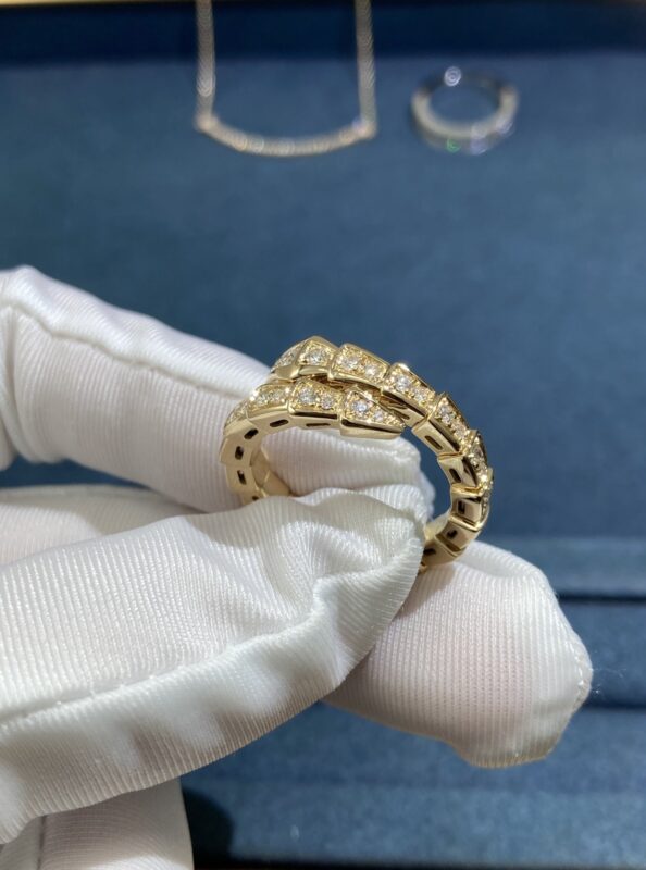 Narrow Snake Ring All Over Diamonds, Yellow Gold