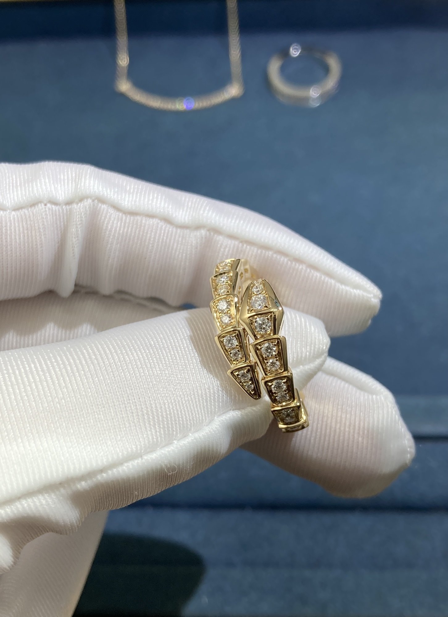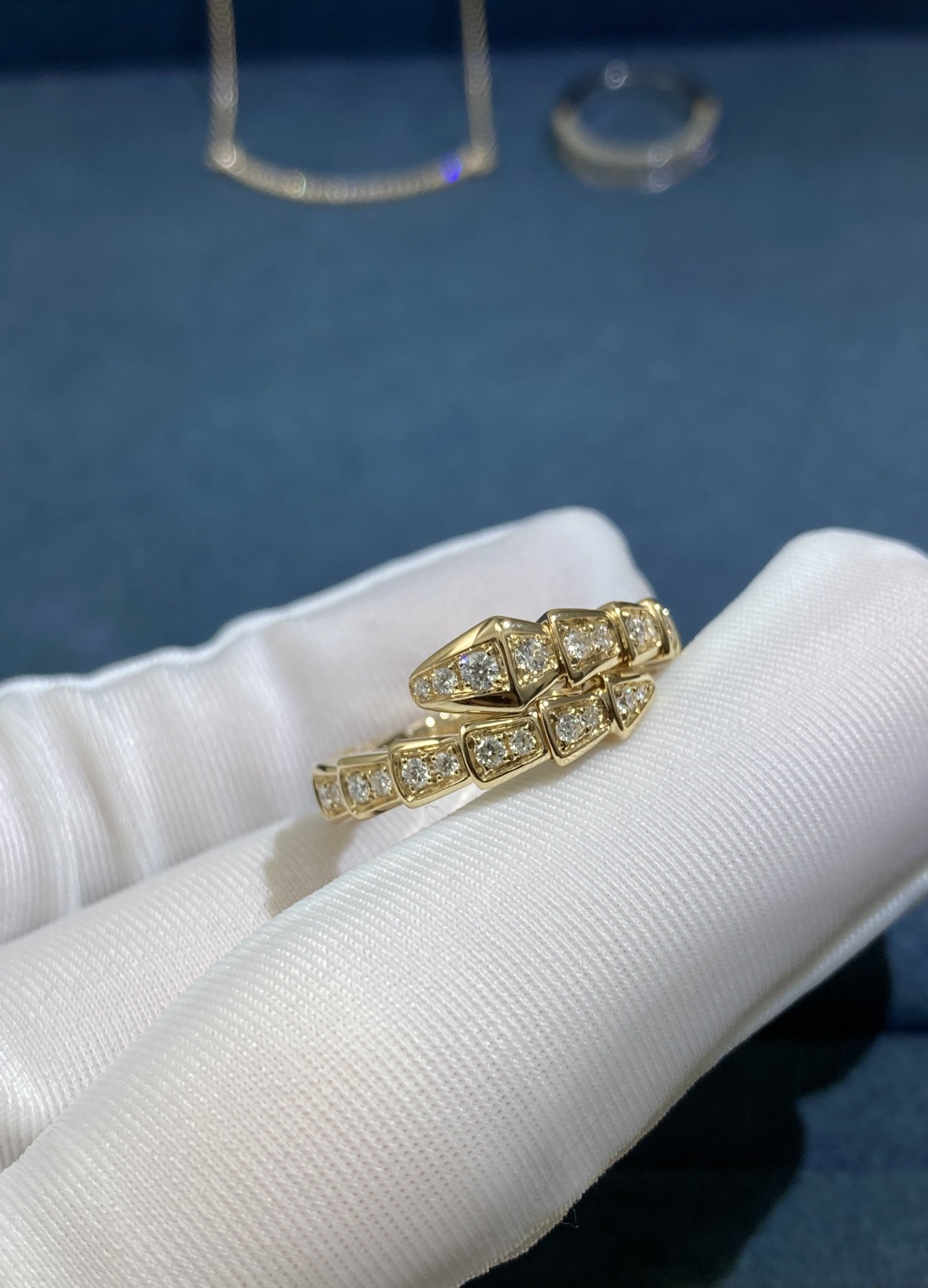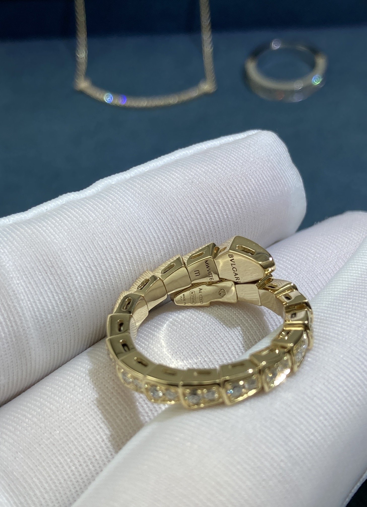 Narrow Snake Ring All Over Diamonds, Yellow Gold