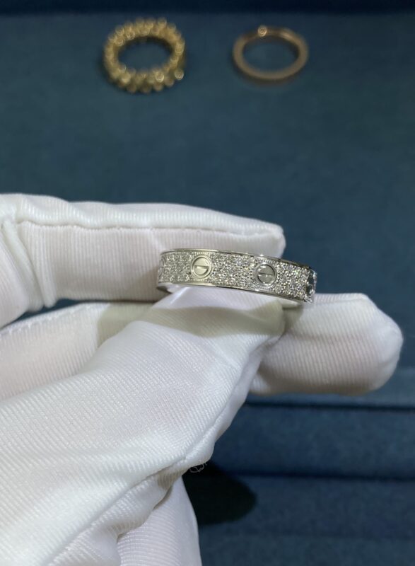 Cartier Narrow Three Row Diamonds Gypsophila Ring, White Gold |