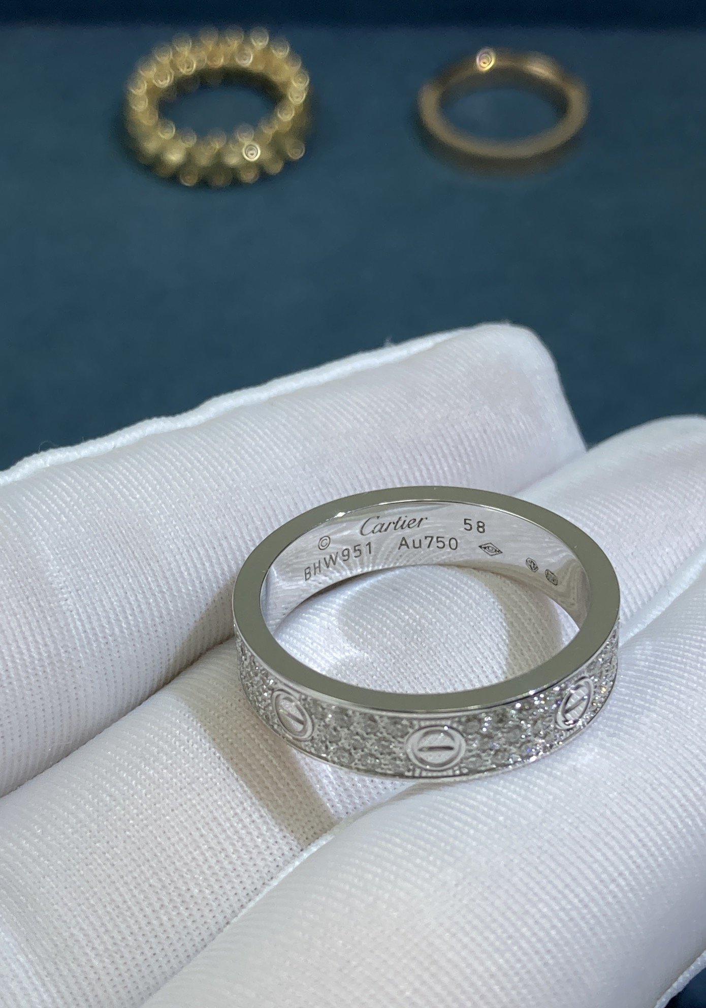 Cartier Narrow Three Row Diamonds Gypsophila Ring, White Gold |