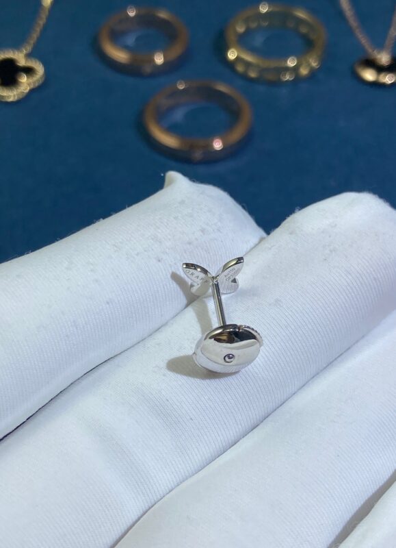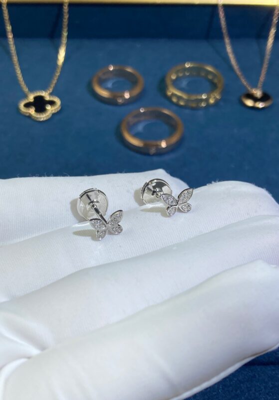 Pale Diamond Butterfly Stud Earrings, White Gold