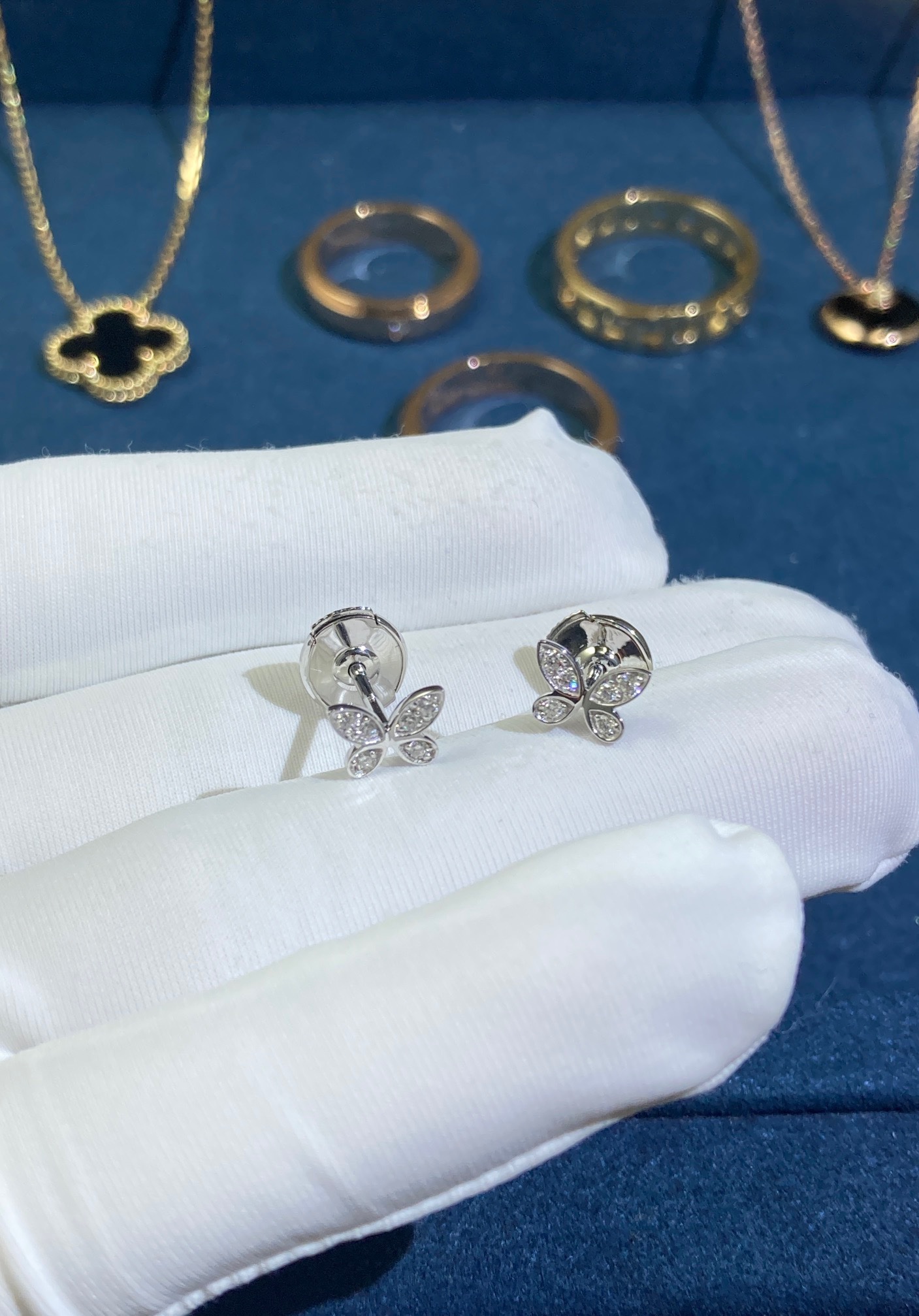 Pale Diamond Butterfly Stud Earrings, White Gold