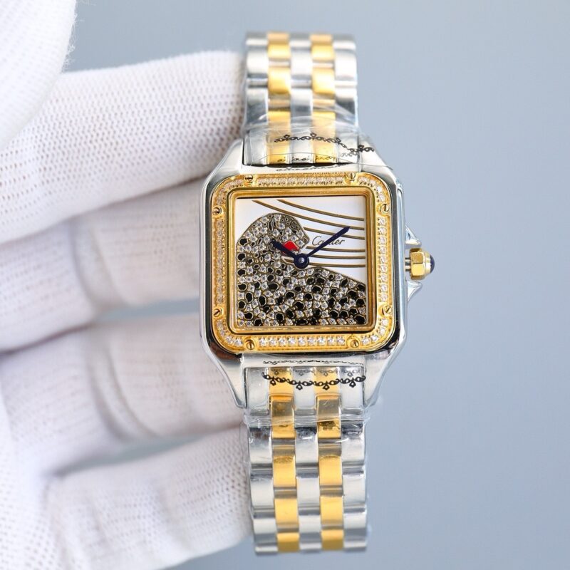 The flowing lines of Panthère de Cartier lie softly and obediently on the wrist, revealing natural elegance in every gesture. The round and neat design is sophisticated. The square case is decorated with handmade inlay. three-dimensional 3D natural diamonds on the bottom of the case, vividly conveying the spirit of the leopard. A beautiful interpretation of the essence of aesthetics, fully demonstrating the free and independent charm of the modern woman.