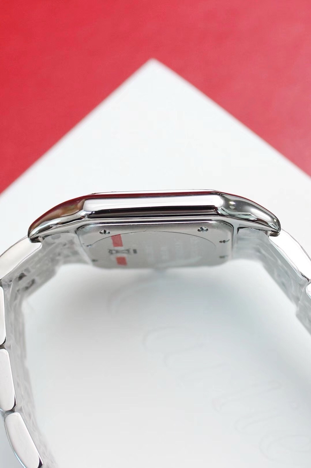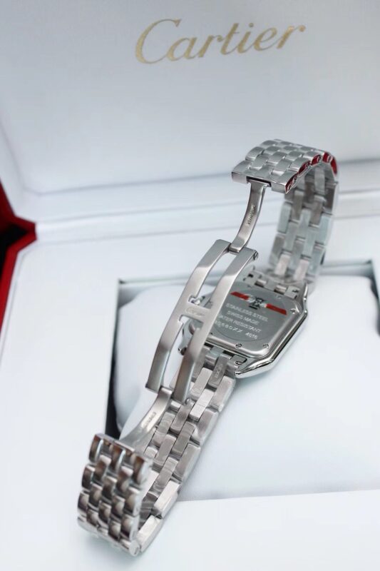 Изысканное мастерство и оригинальные формы для создания изысканных обтекаемых ушек, которые ничем не отличаются от оригинальных и интегрированы в корпус. Оснащены швейцарским кварцевым механизмом Ronda, корпус из нержавеющей стали 316L, размер: 27 x 37 мм, толщина: 6 мм, посеребренный циферблат, стрелки из синей стали в форме мечей, 100% водонепроницаемость третьей степени. Поставляется с упаковочными материалами для встречных поездок.