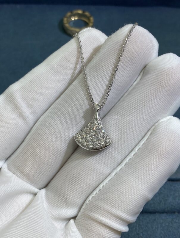 Petite Dress Necklace with Diamonds, White Gold